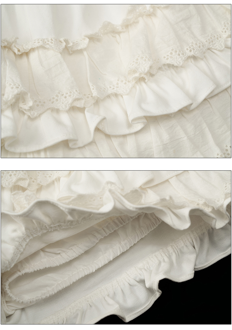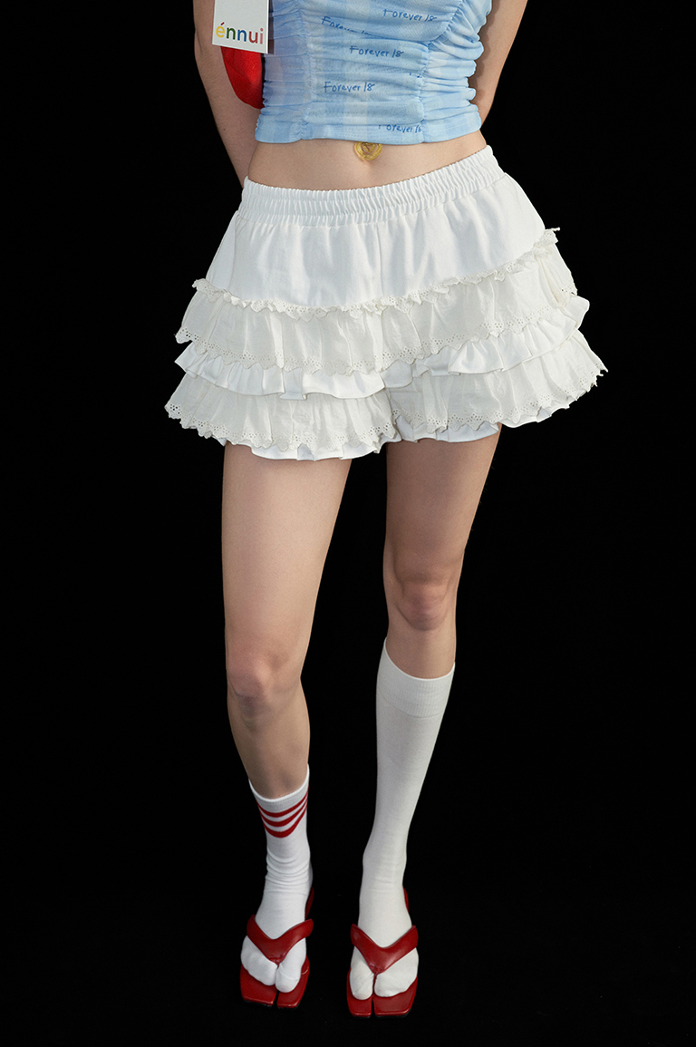 풍성한 레이어드 프릴 디테일과 미니멀한 아이보리 컬러로 사랑스러움을 가득 담은 키치&러블리 스커트로 허리 밴딩으로 편안함까지 챙겨 데일리룩부터 페스티벌룩까지 활용 가능합니다.