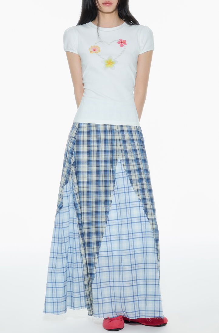 Patchwork Checked Long Skirt