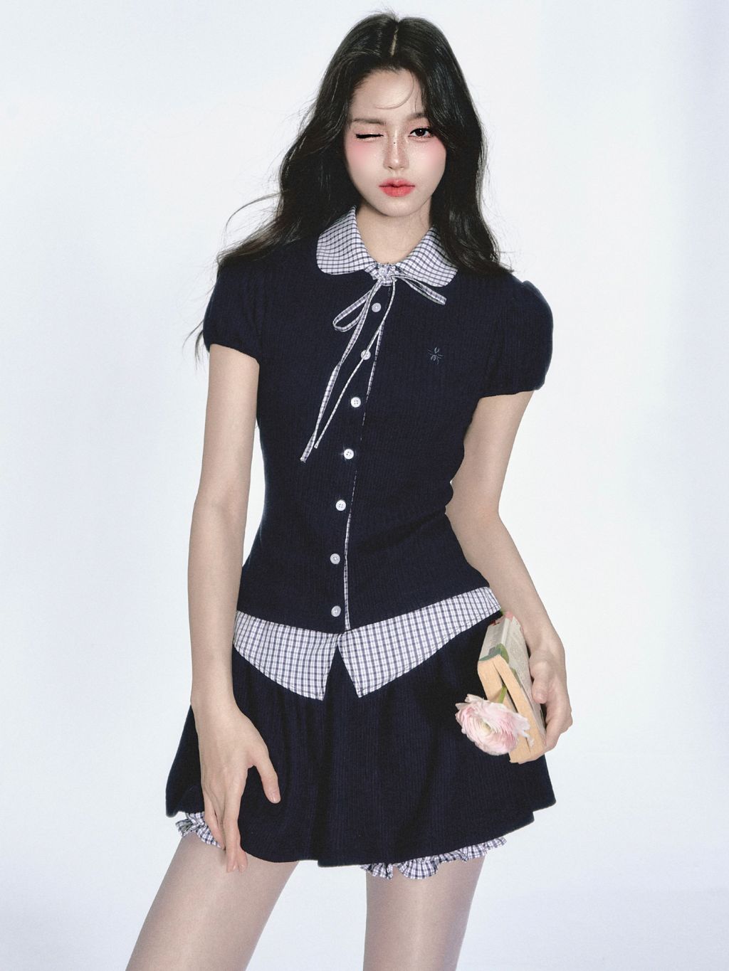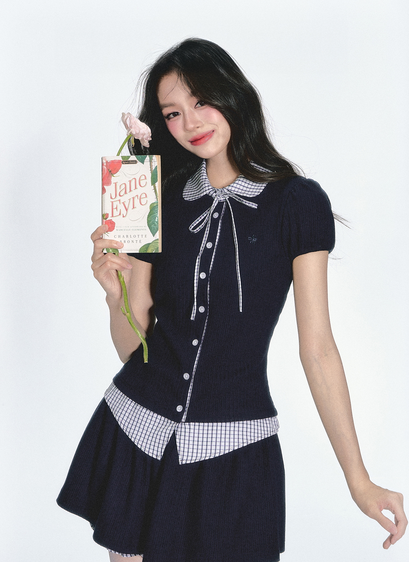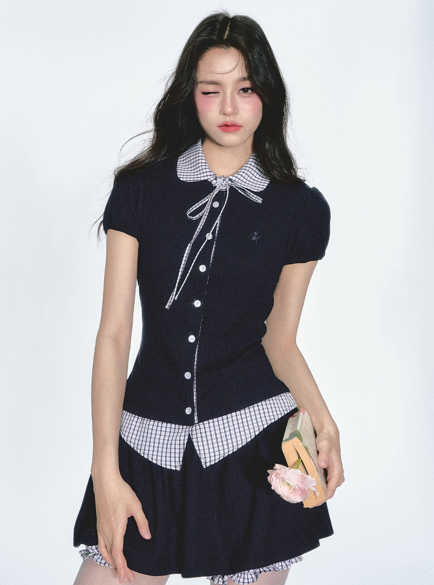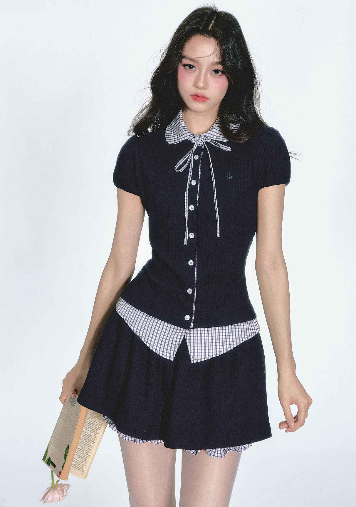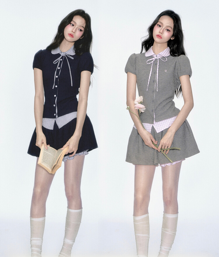 러블리한 체크 배색이 돋보이는 투피스 셋업dmfh 하나만 입어도 레이어드한 듯 연출되는 페이크 투피스 디자인은 입는 순간 단정하면서도 사랑스러운 분위기를 완성합니다. 가디건과 스커트 팬츠 모두 신축성이 좋고 부드러운 소재로 편안한 착용감과 실루엣을 동시에 갖췄습니다.
