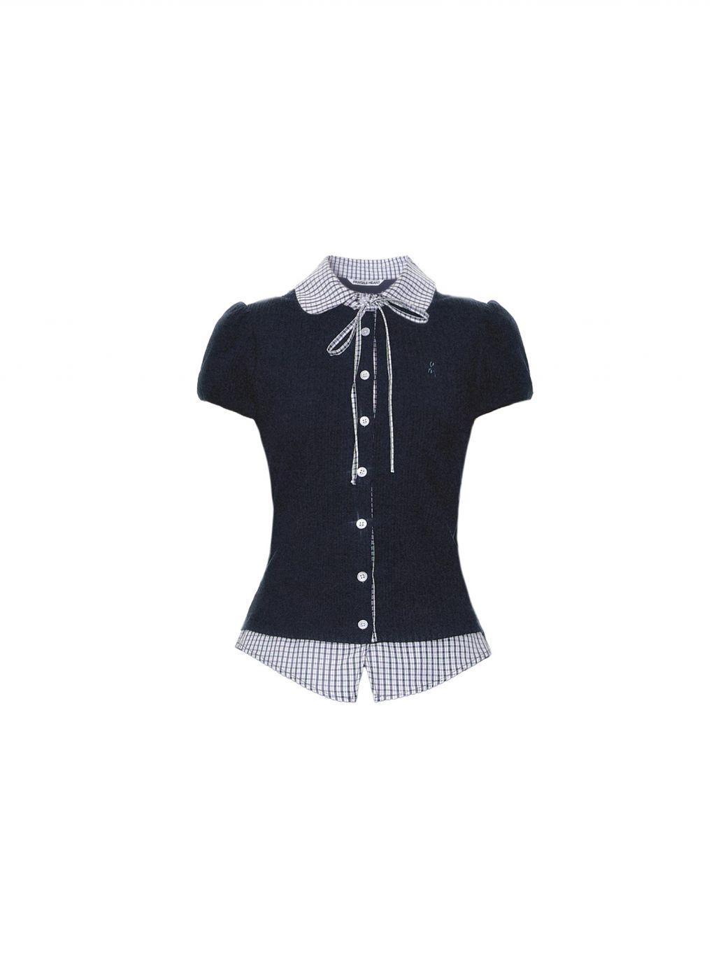 - 레이어드 효과를 주는 체크 배색 카라 & 밑단 디테일