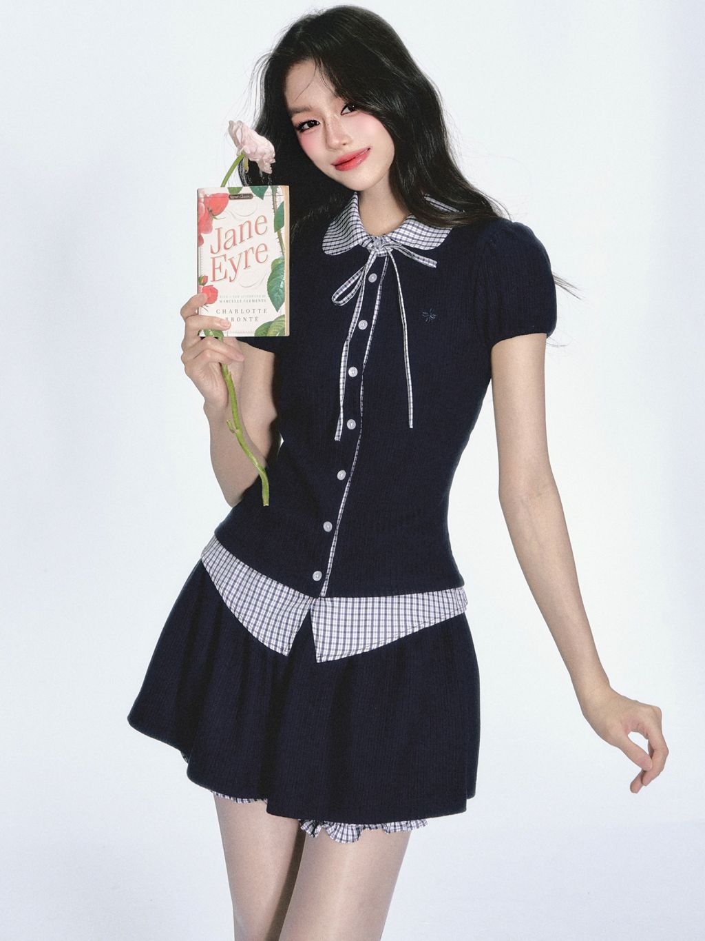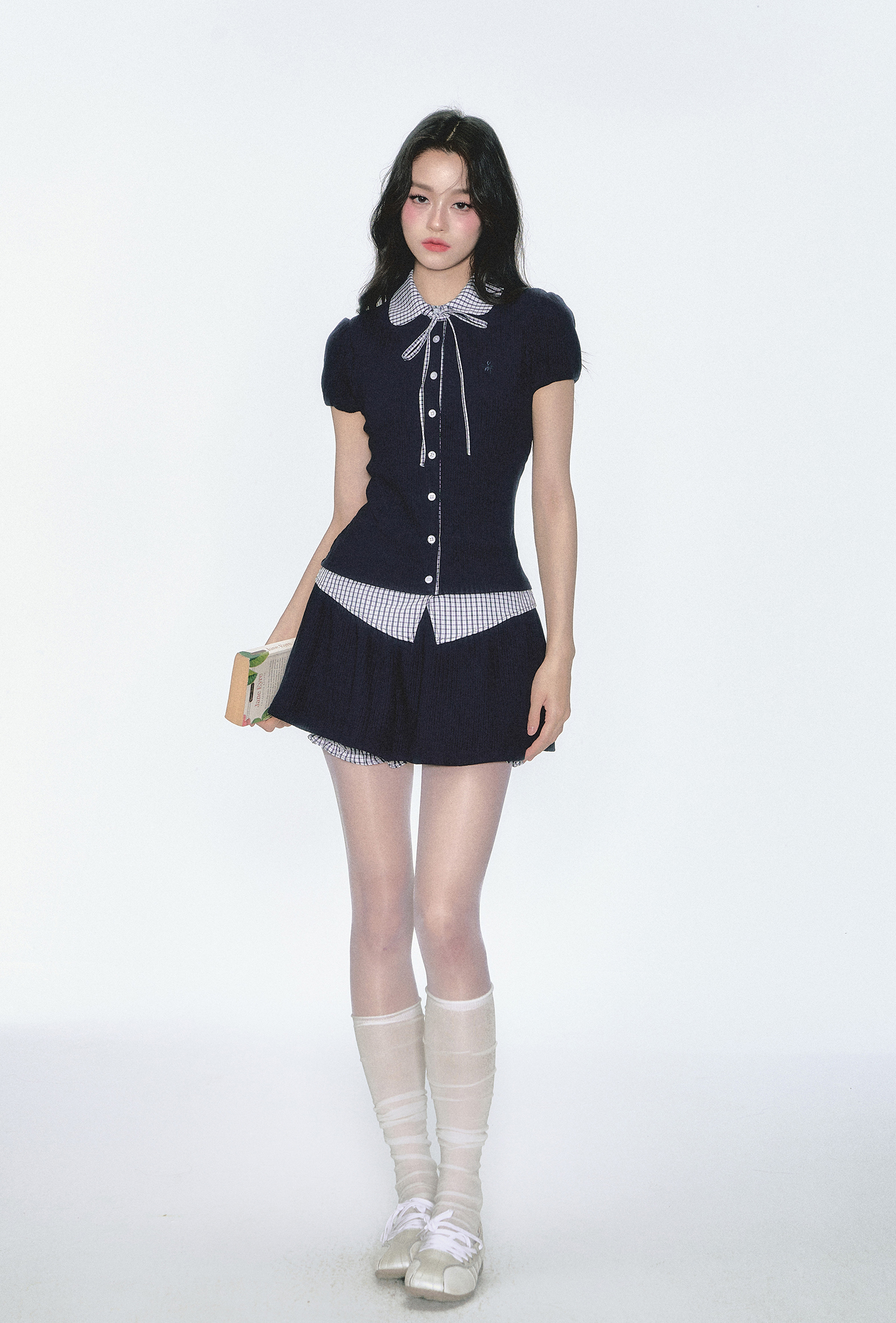 Fake 2-Piece SS Cardigan Set ( Cardigan & Skirt Pants : Sold Separately )