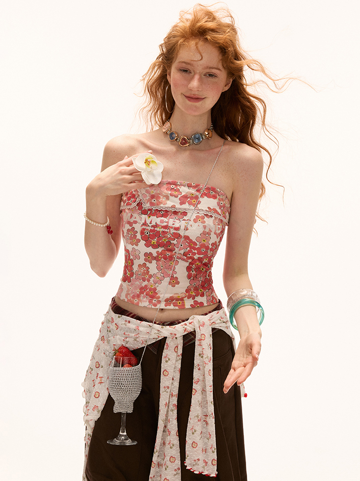 수채화처럼 은은한 플라워 프린팅이 돋보이는 튜브톱으로 가슴선을 부드럽게 감싸는 실키한 원단과 레이스 디테일이 어우러져 로맨틱하면서도 빈티지한 무드를 연출해주는 썸머 키 아이템입니다.