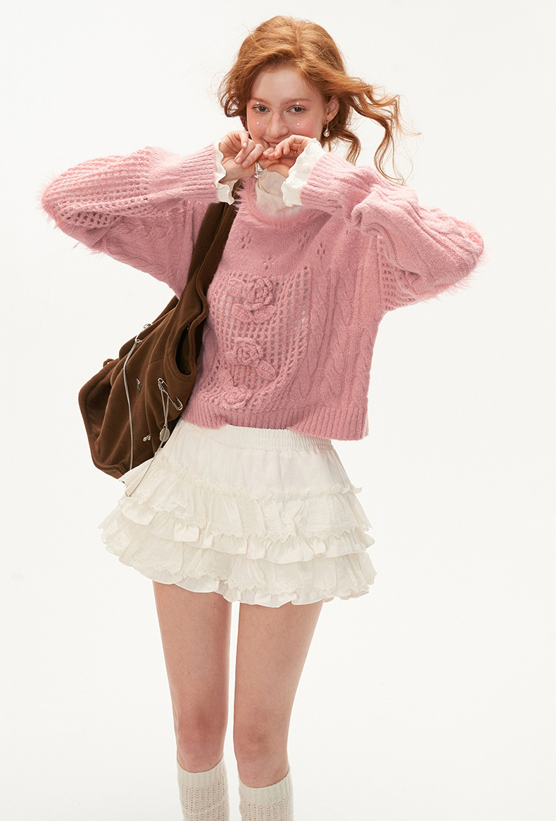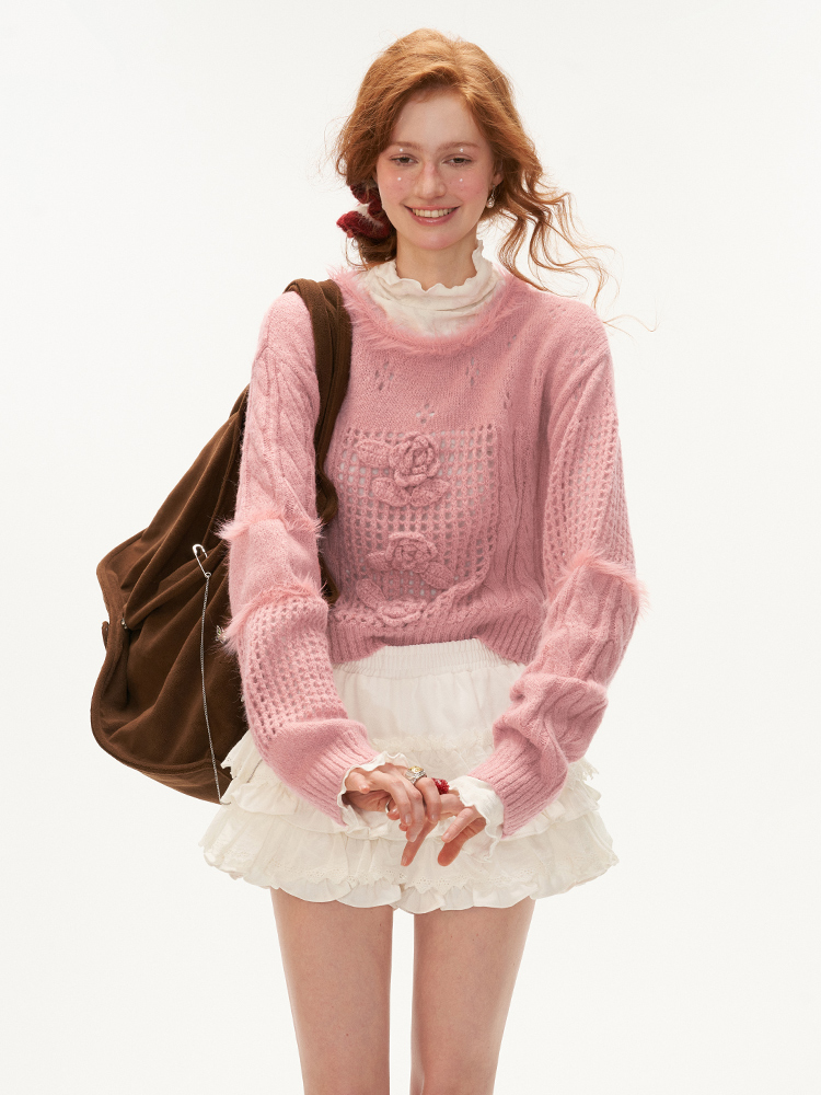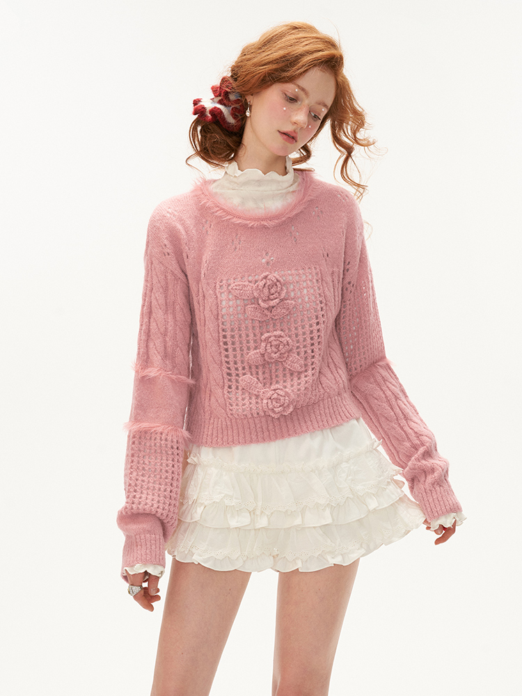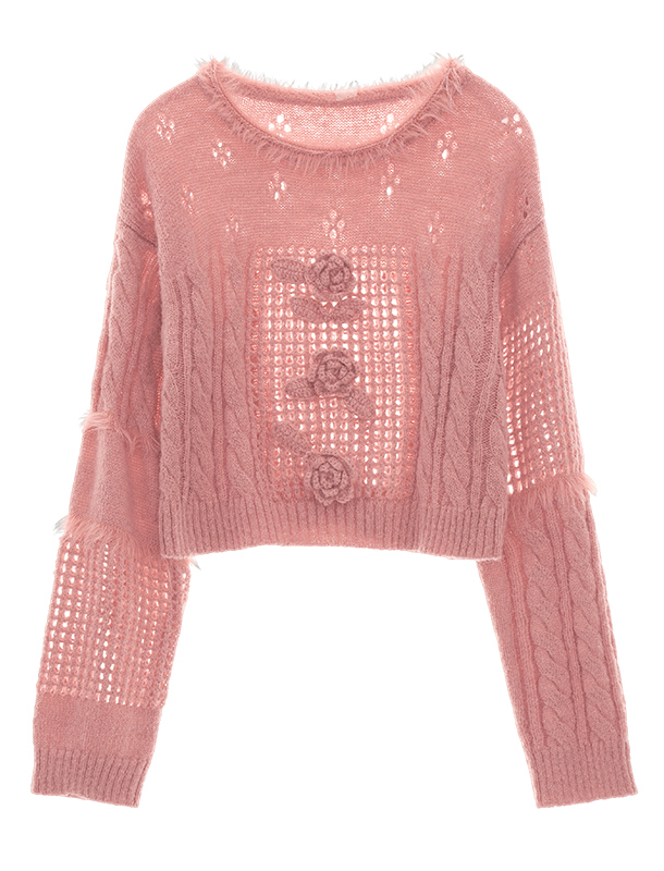 [오늘출발]Rose Punching Knit Wool Sweater