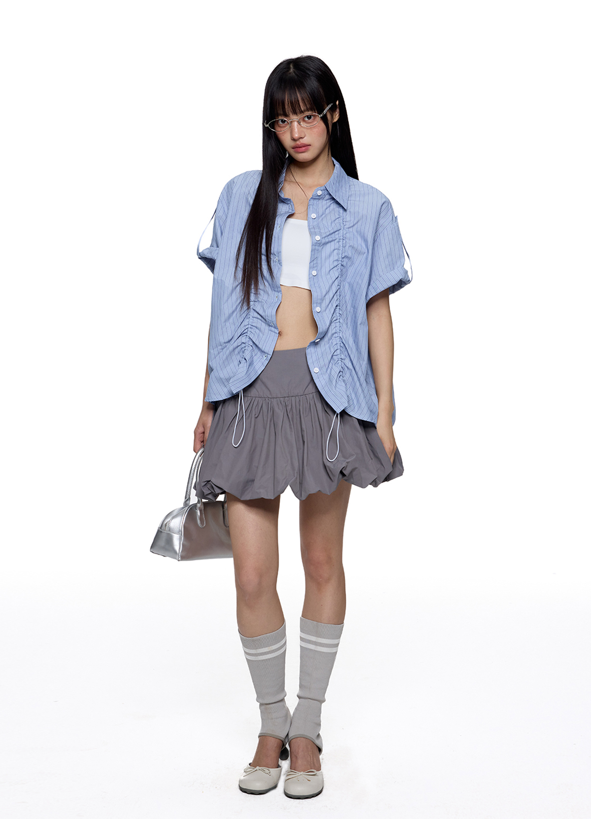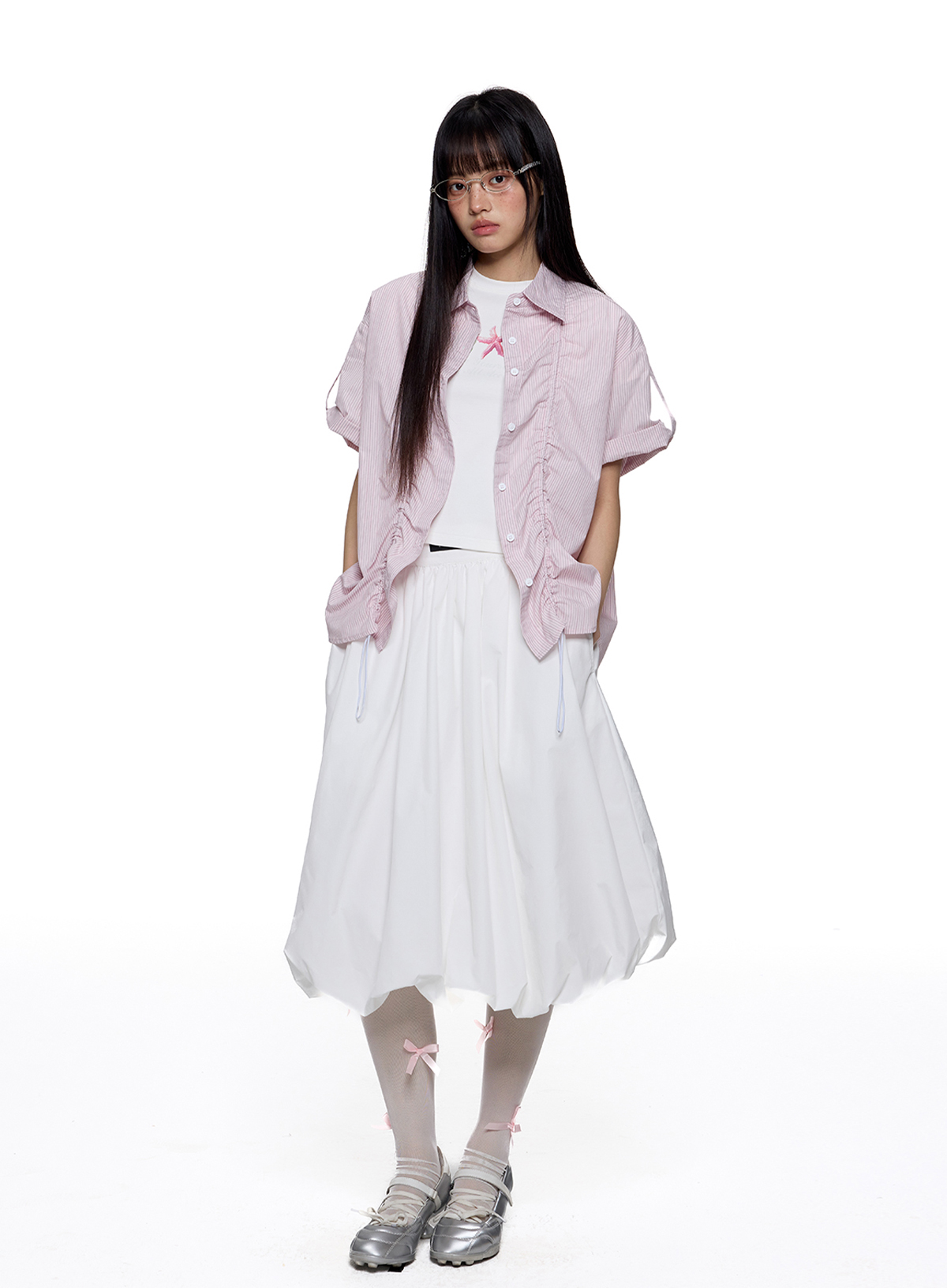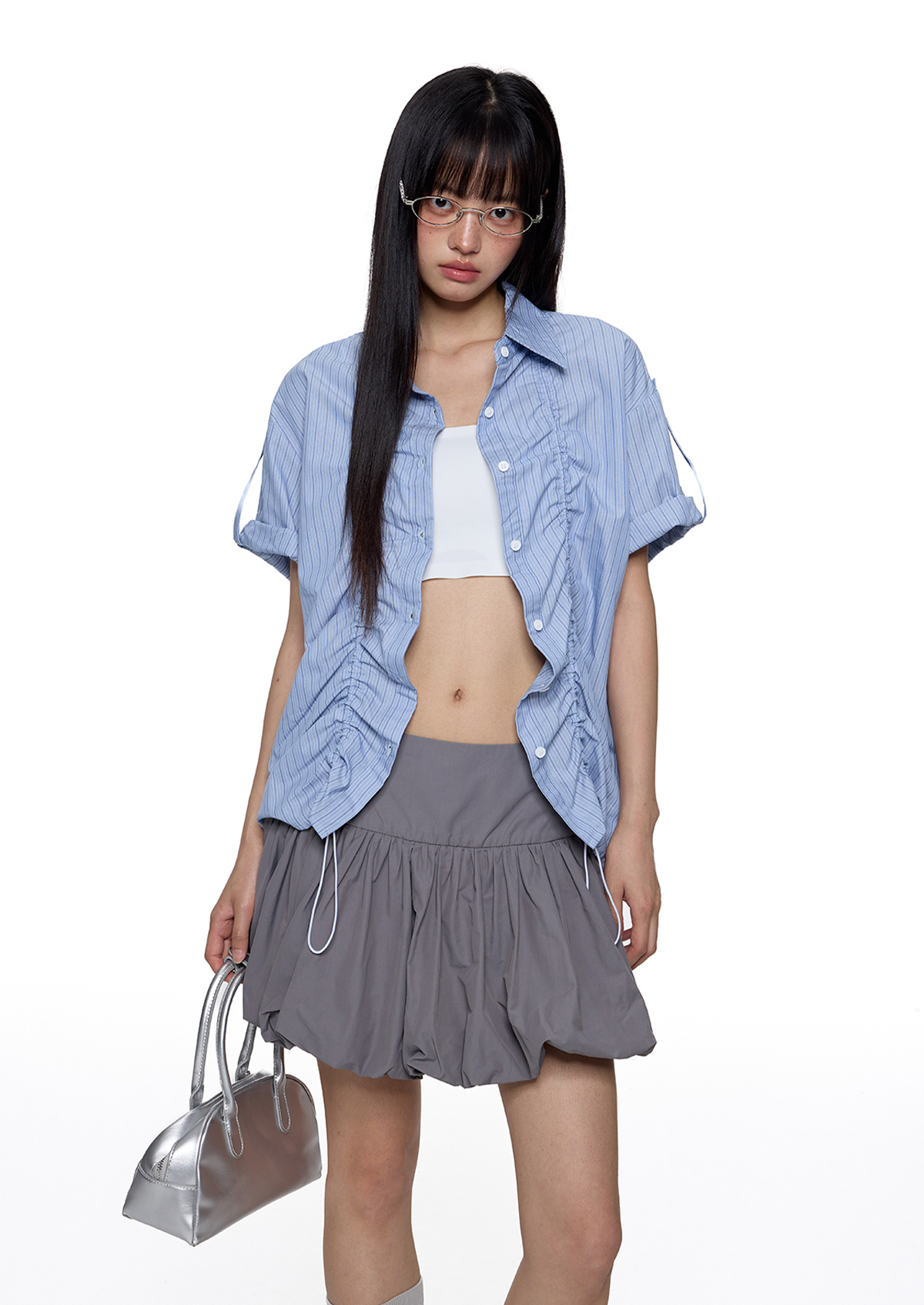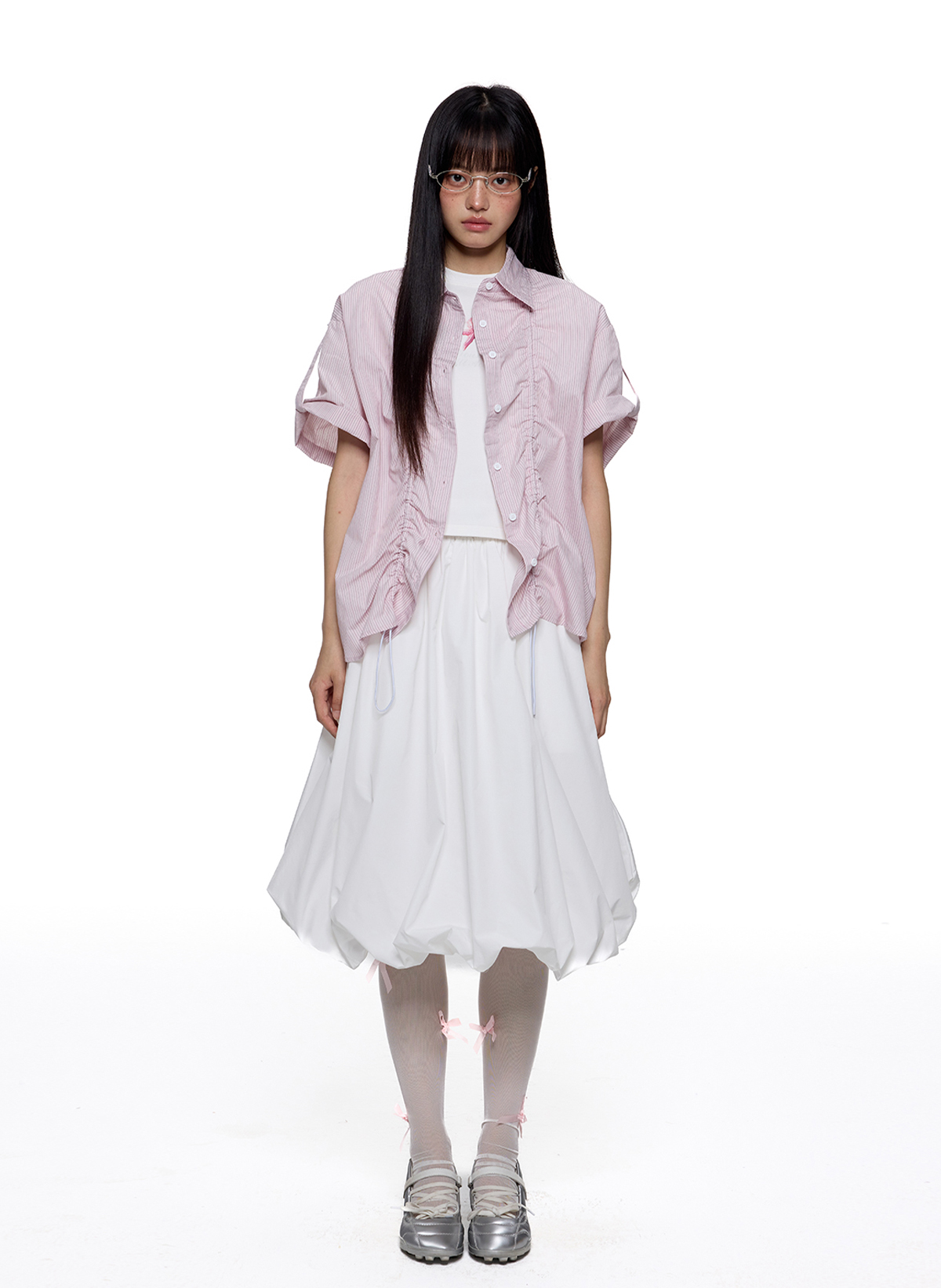 - 전면 스트링 셔링 디테일로 실루엣 조절 가능