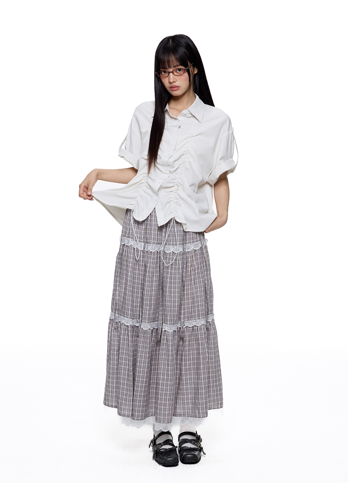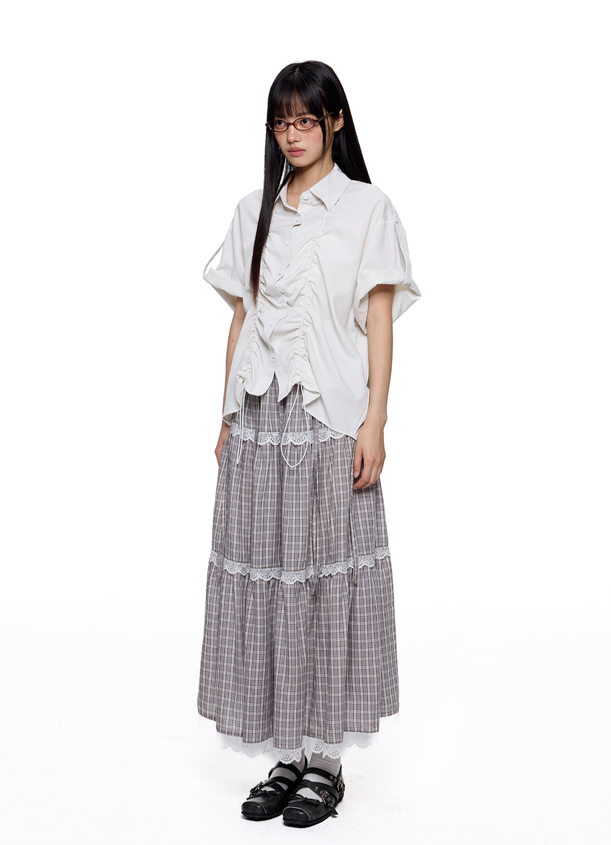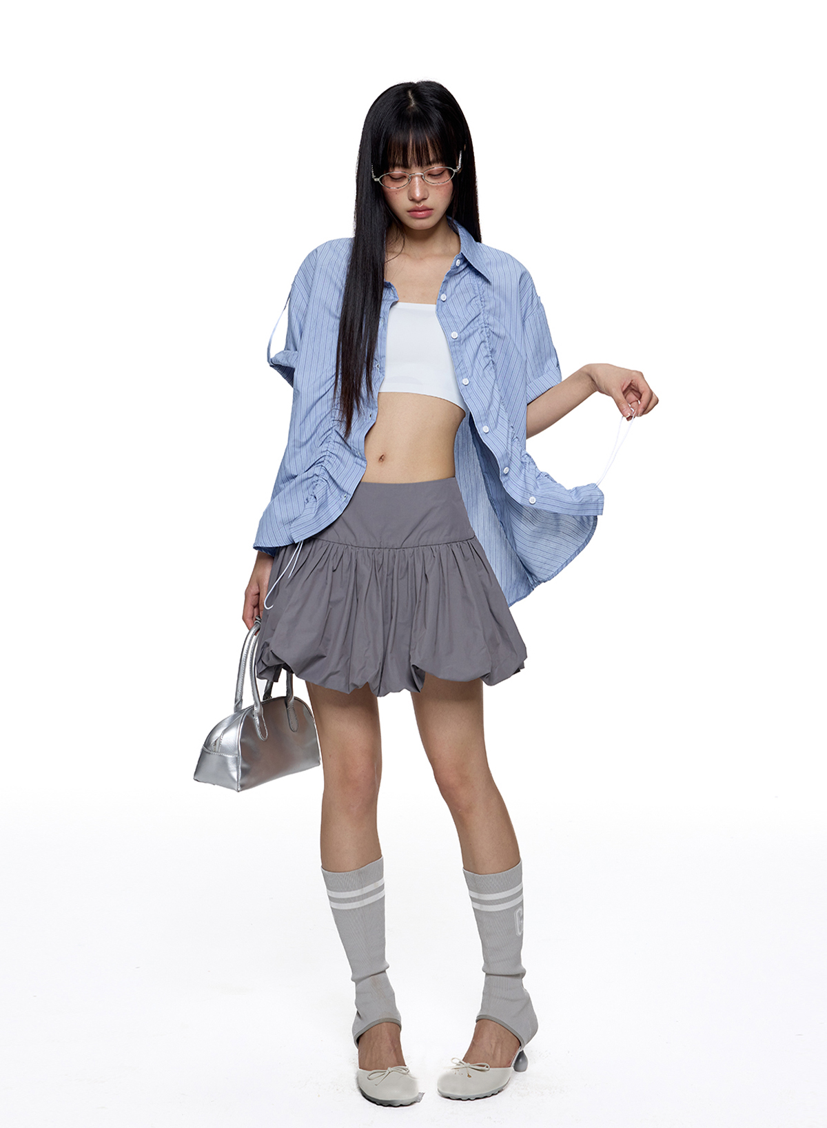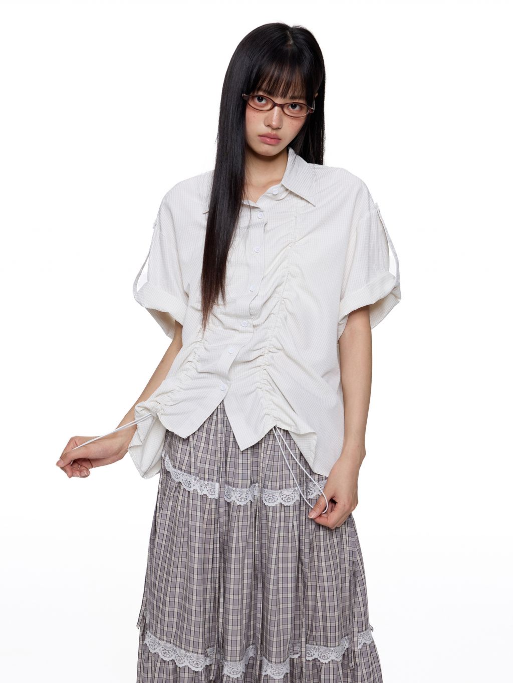 - 전면 스트링 셔링 디테일로 실루엣 조절 가능