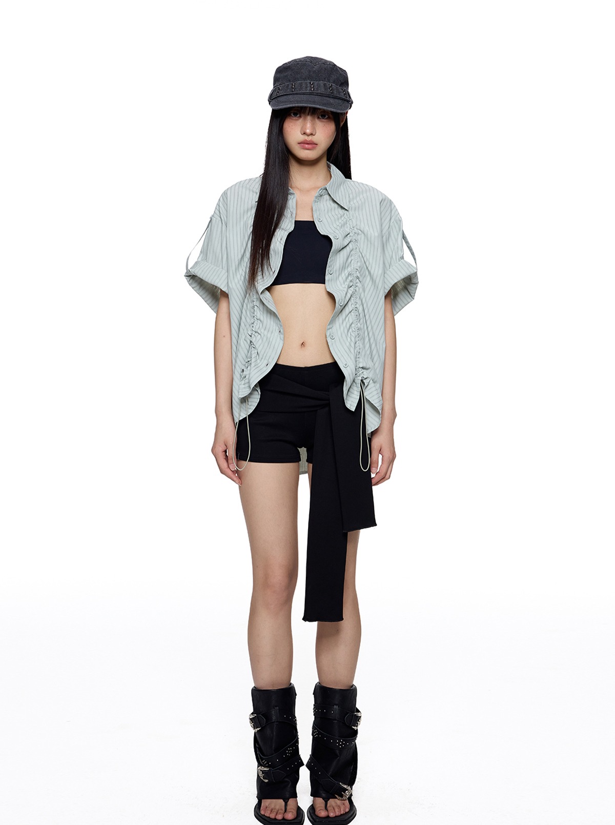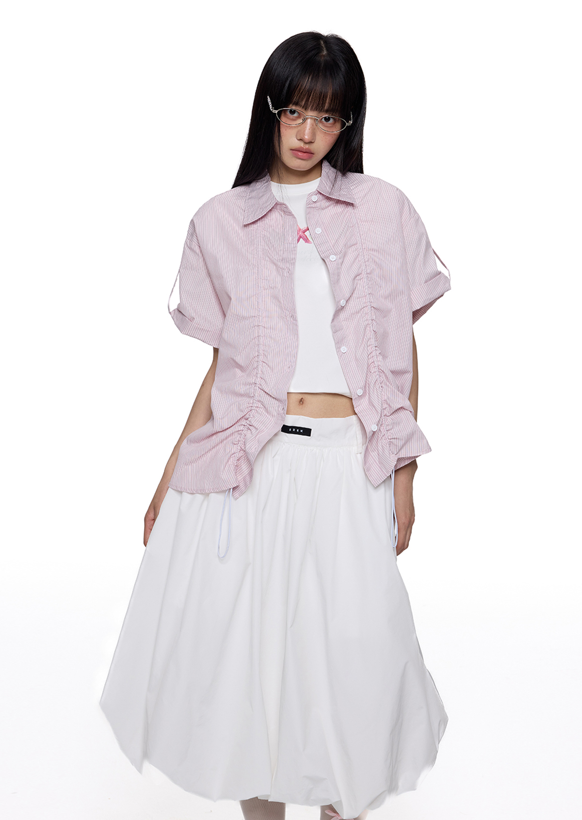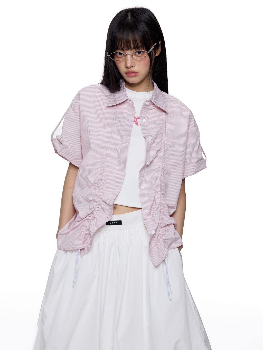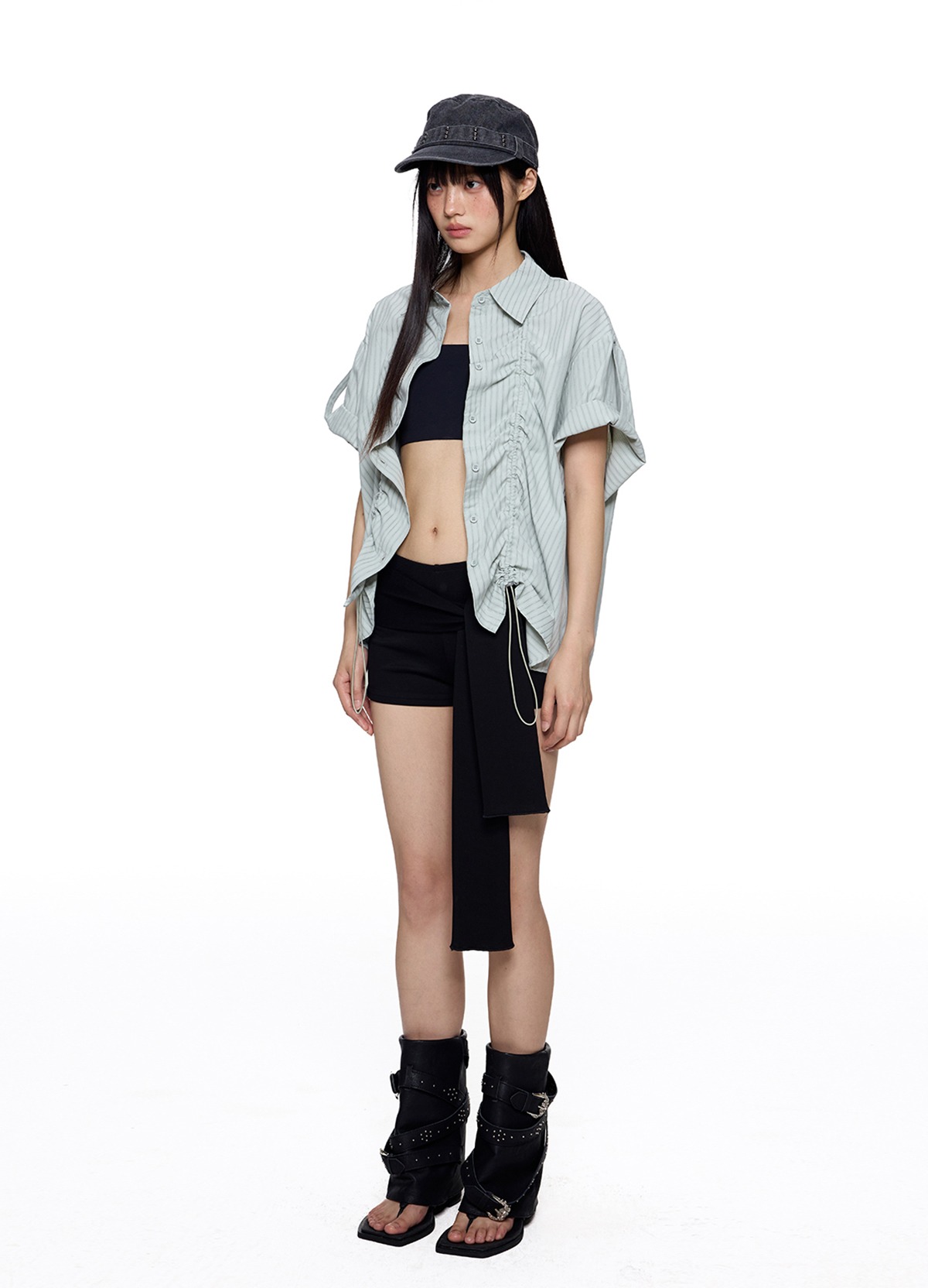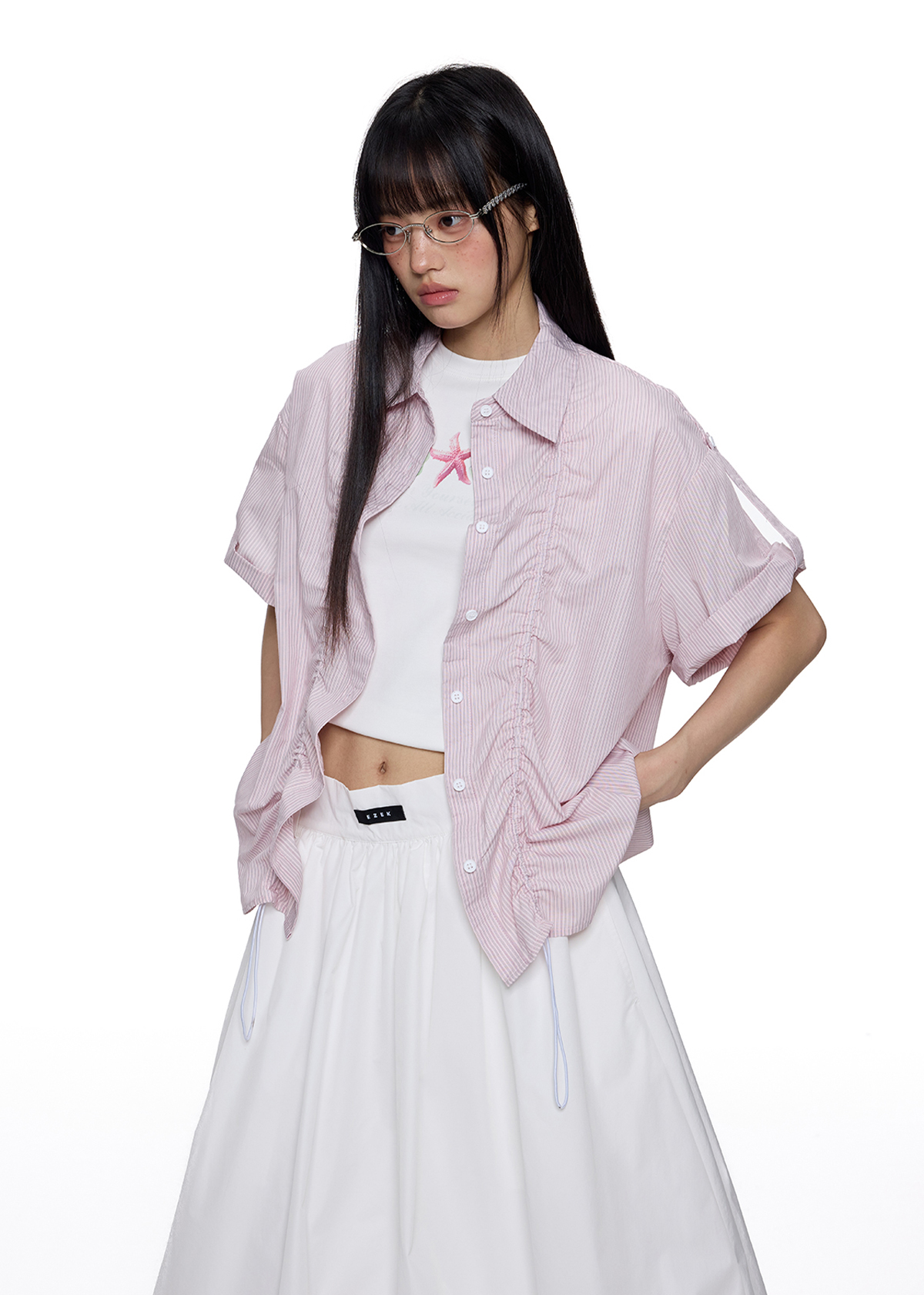 앞판 스트링 셔링으로 핏을 자유롭게 조절할 수 있는 스트라이프 셔츠로 넉넉한 오버핏과 롤업 소매로 캐주얼하고 스타일리시하게 연출되며 여름철 단독 또는 레이어드 아이템으로 활용도 높은 디자인입니다.