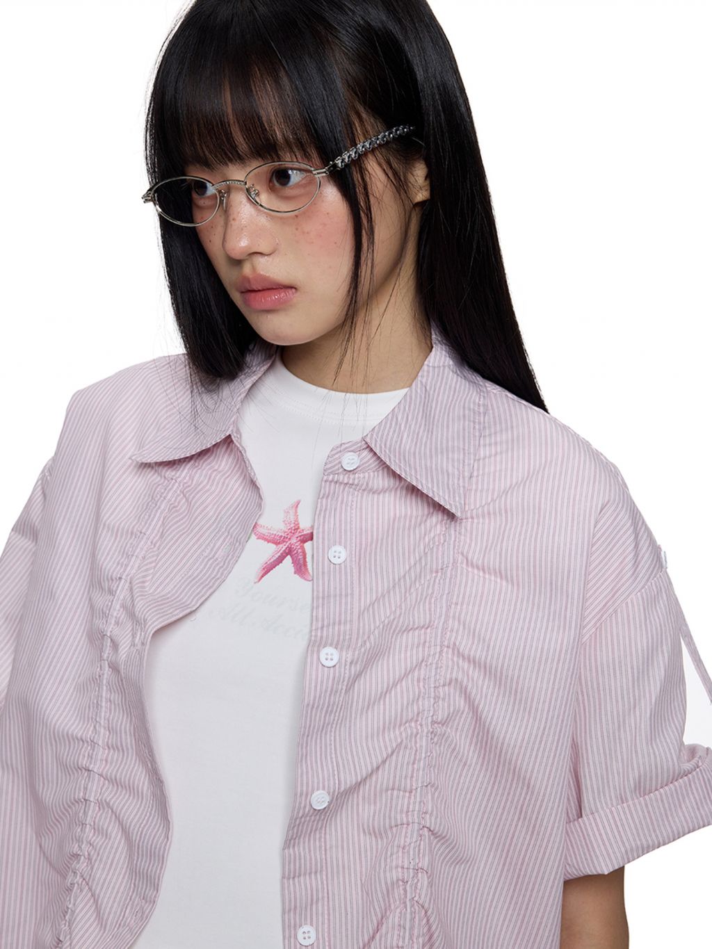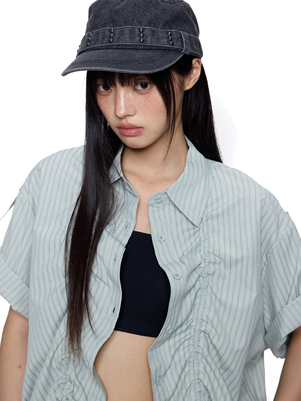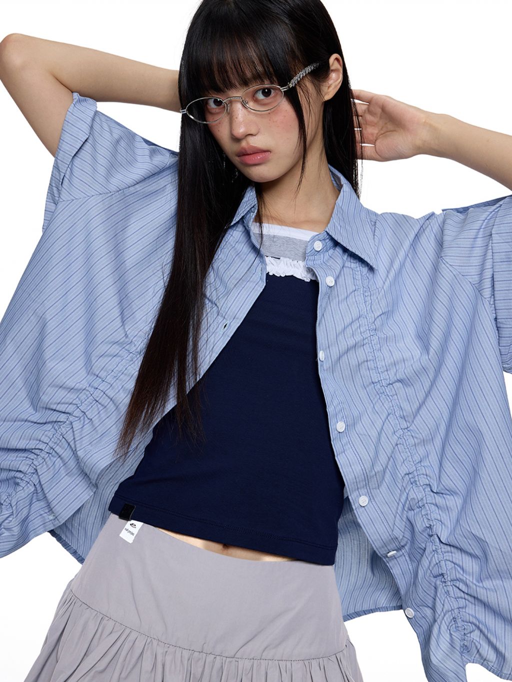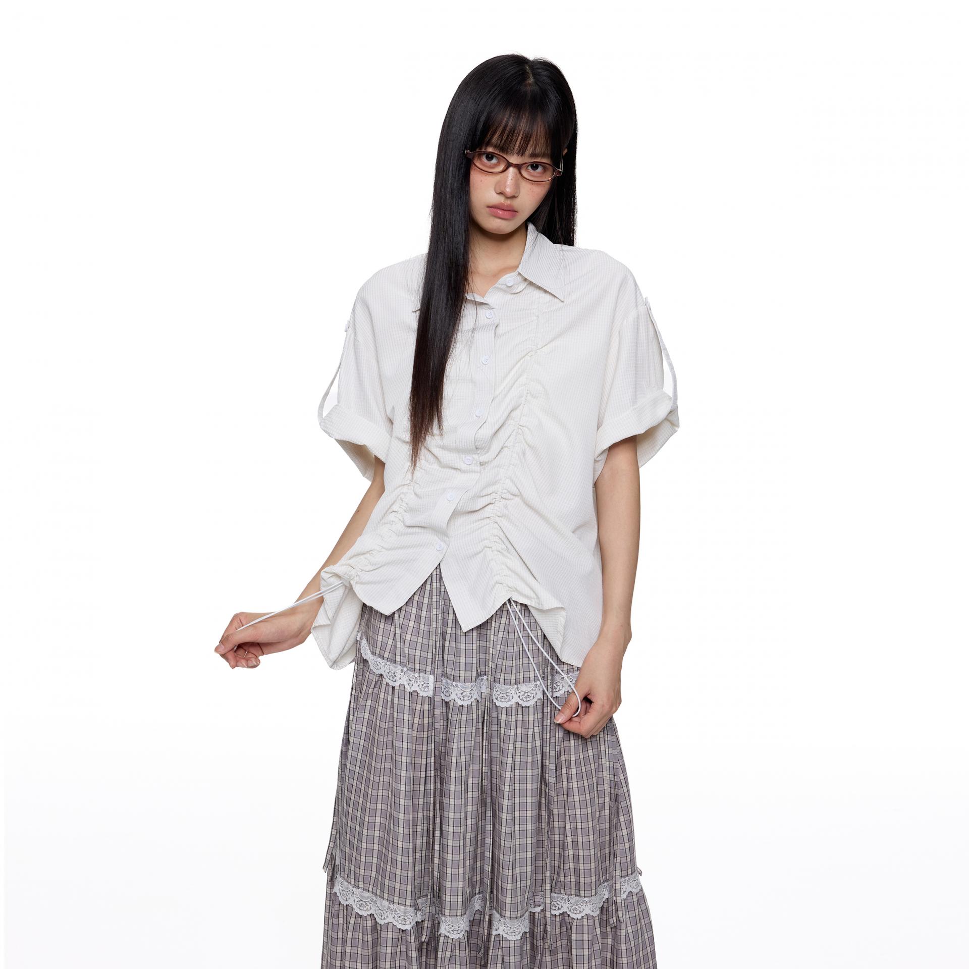 앞판 스트링 셔링으로 핏을 자유롭게 조절할 수 있는 스트라이프 셔츠로 넉넉한 오버핏과 롤업 소매로 캐주얼하고 스타일리시하게 연출되며 여름철 단독 또는 레이어드 아이템으로 활용도 높은 디자인입니다.