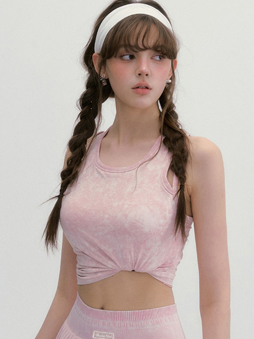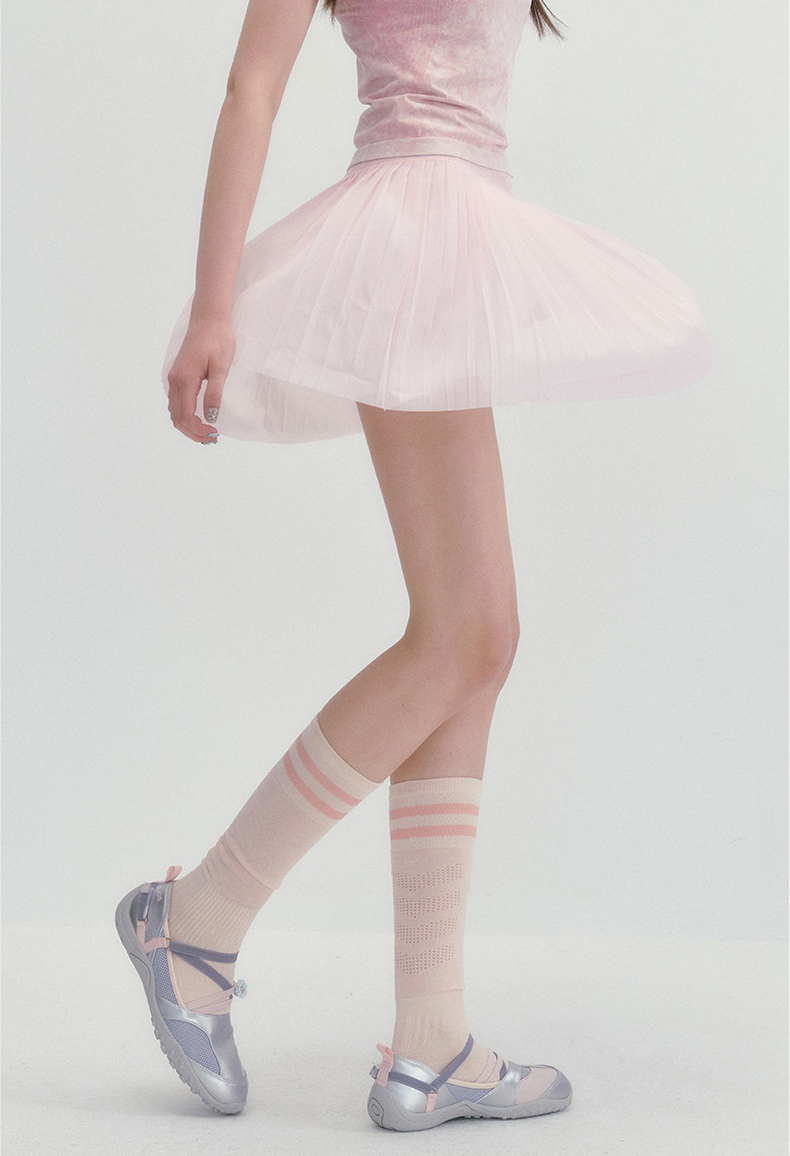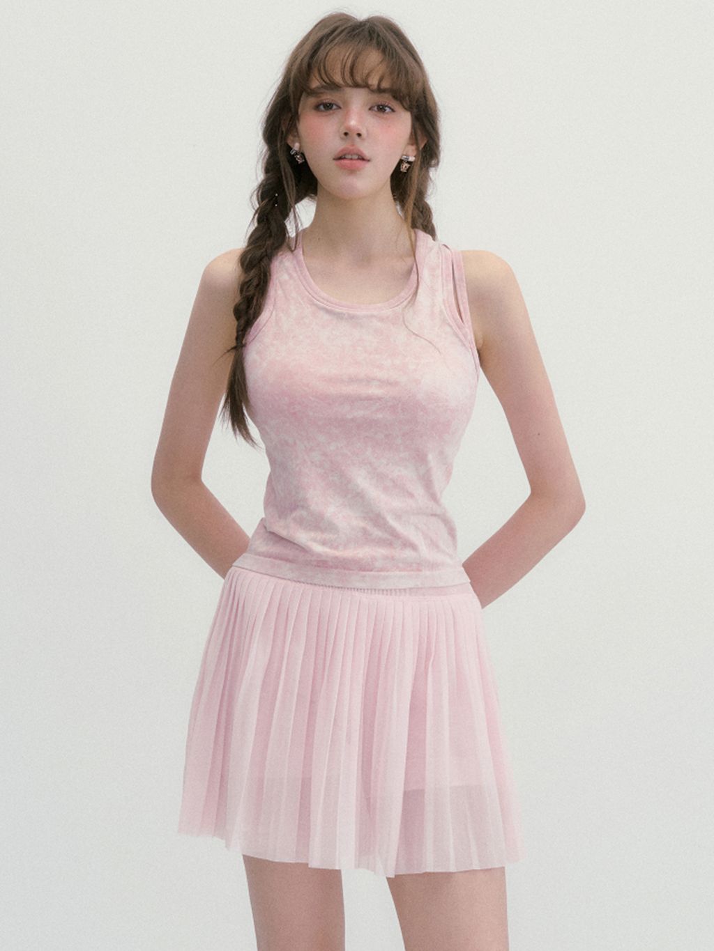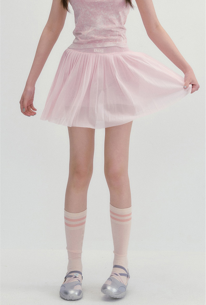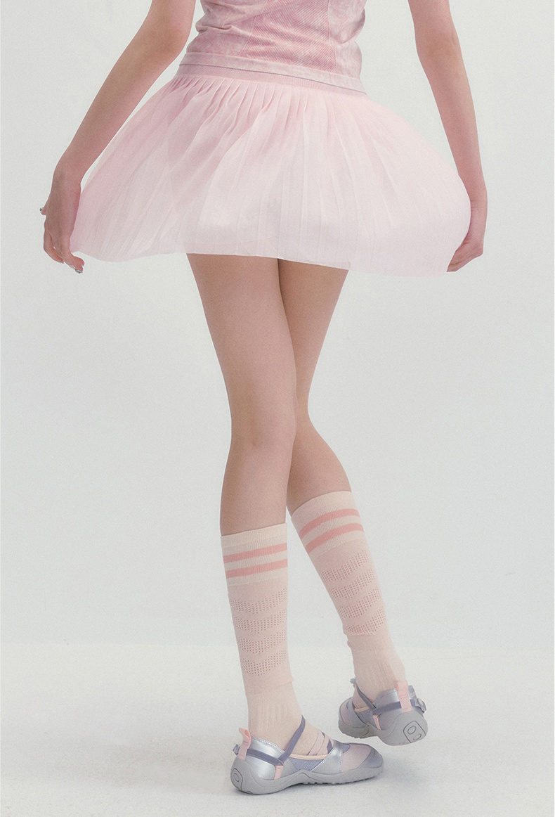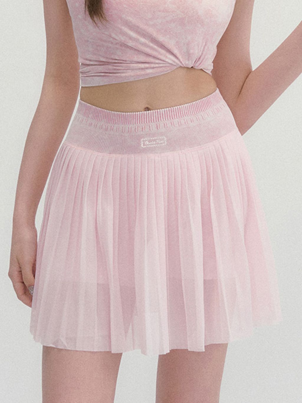 러블리한 파스텔톤과 발랄한 실루엣이 돋보이는 애슬레저 셋업으로 브라탑과 시폰 플리츠 스커트로 구성되어 운동복부터 데일리룩까지 활용 가능한 하이틴 무드의 스포티 아이템입니다.