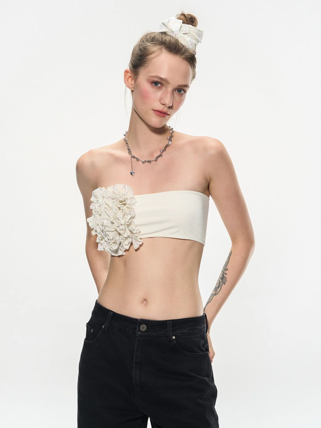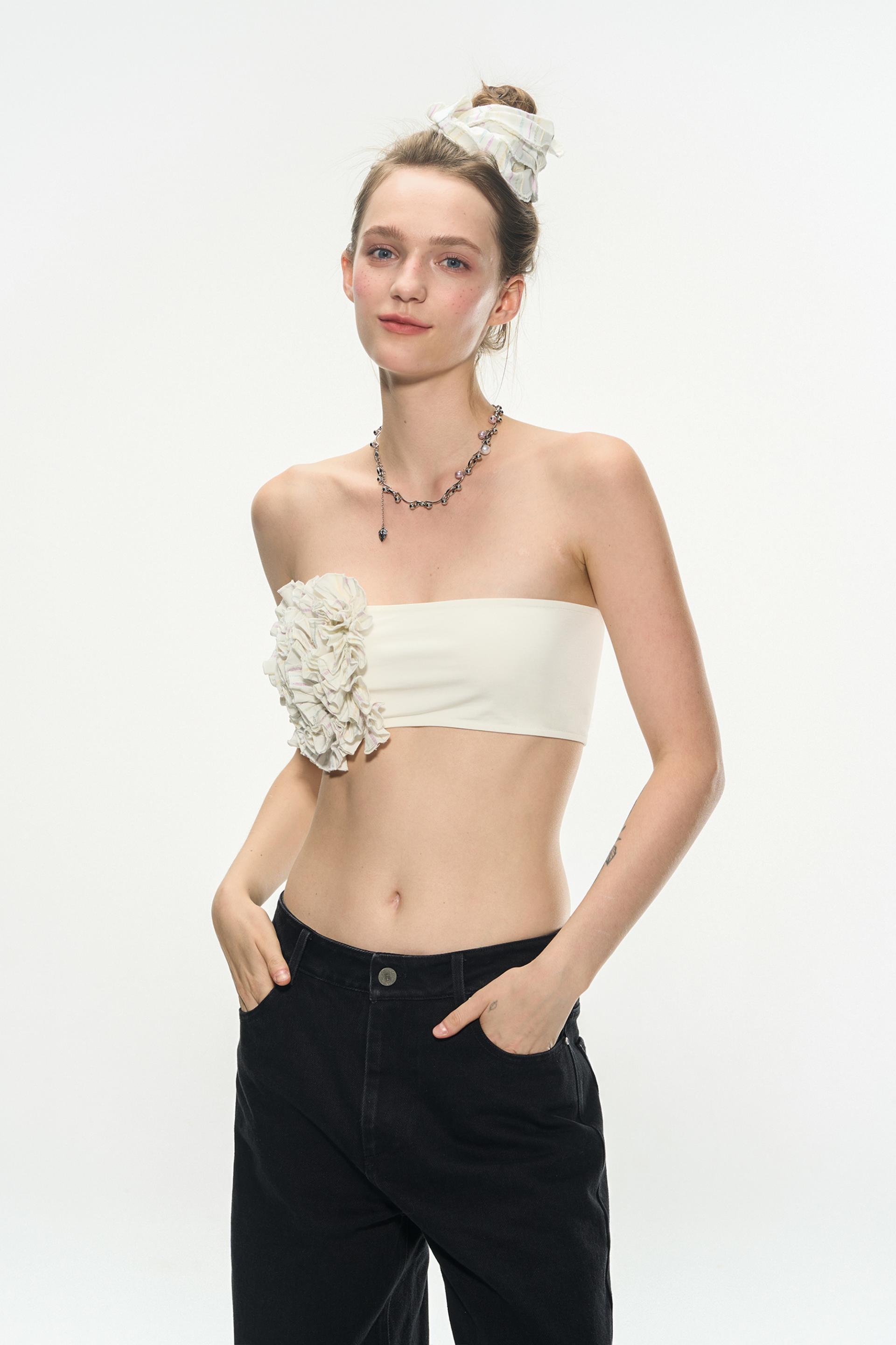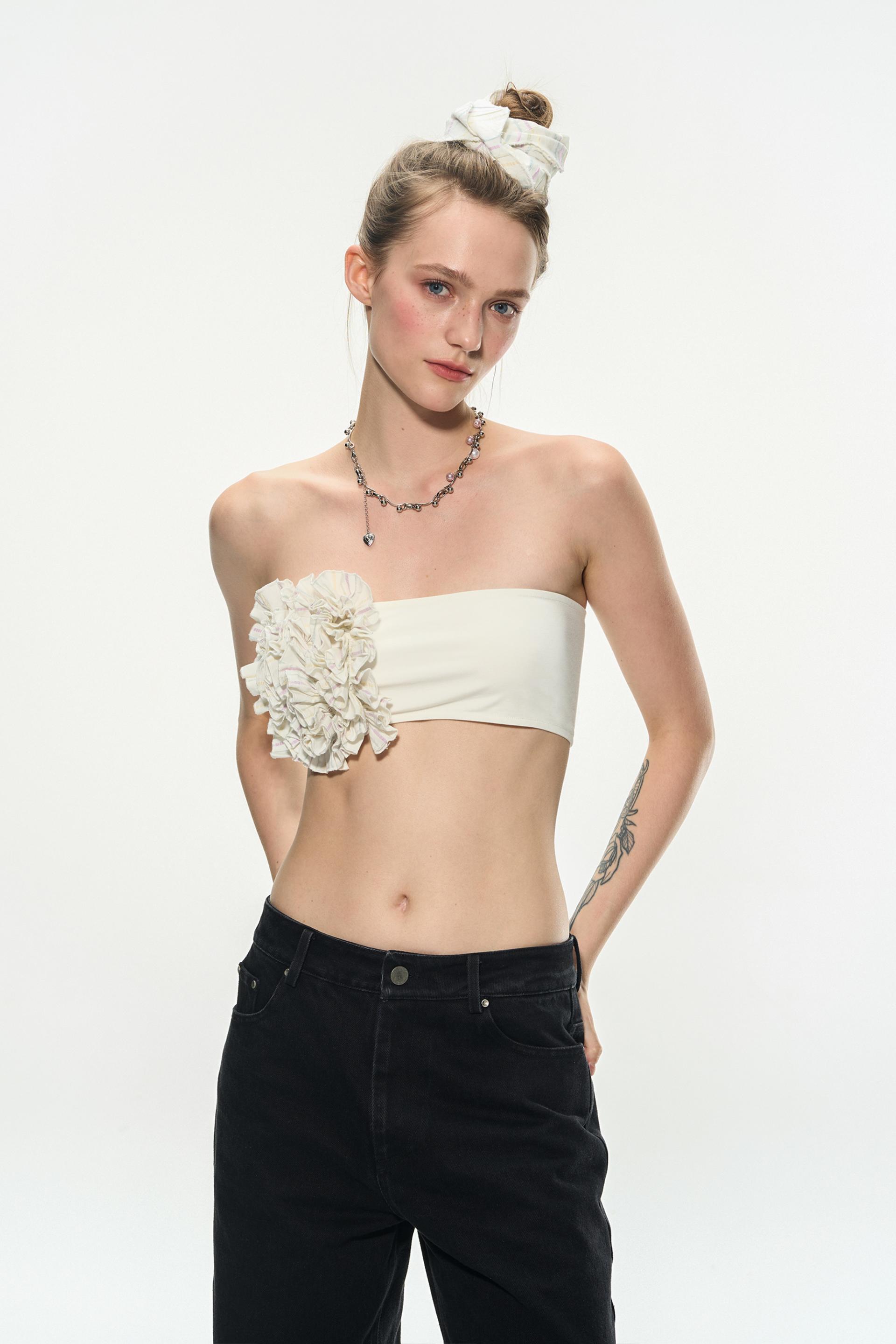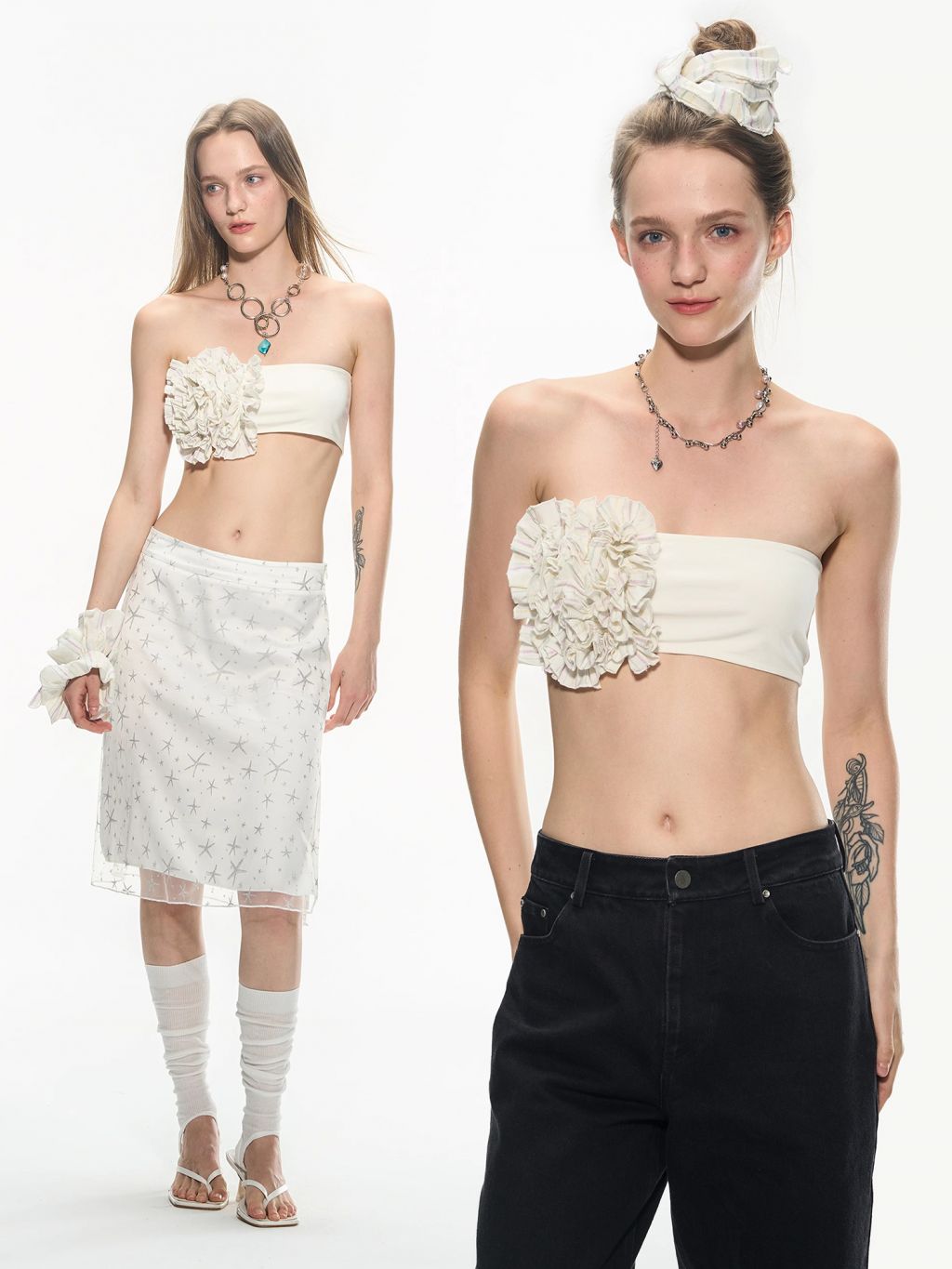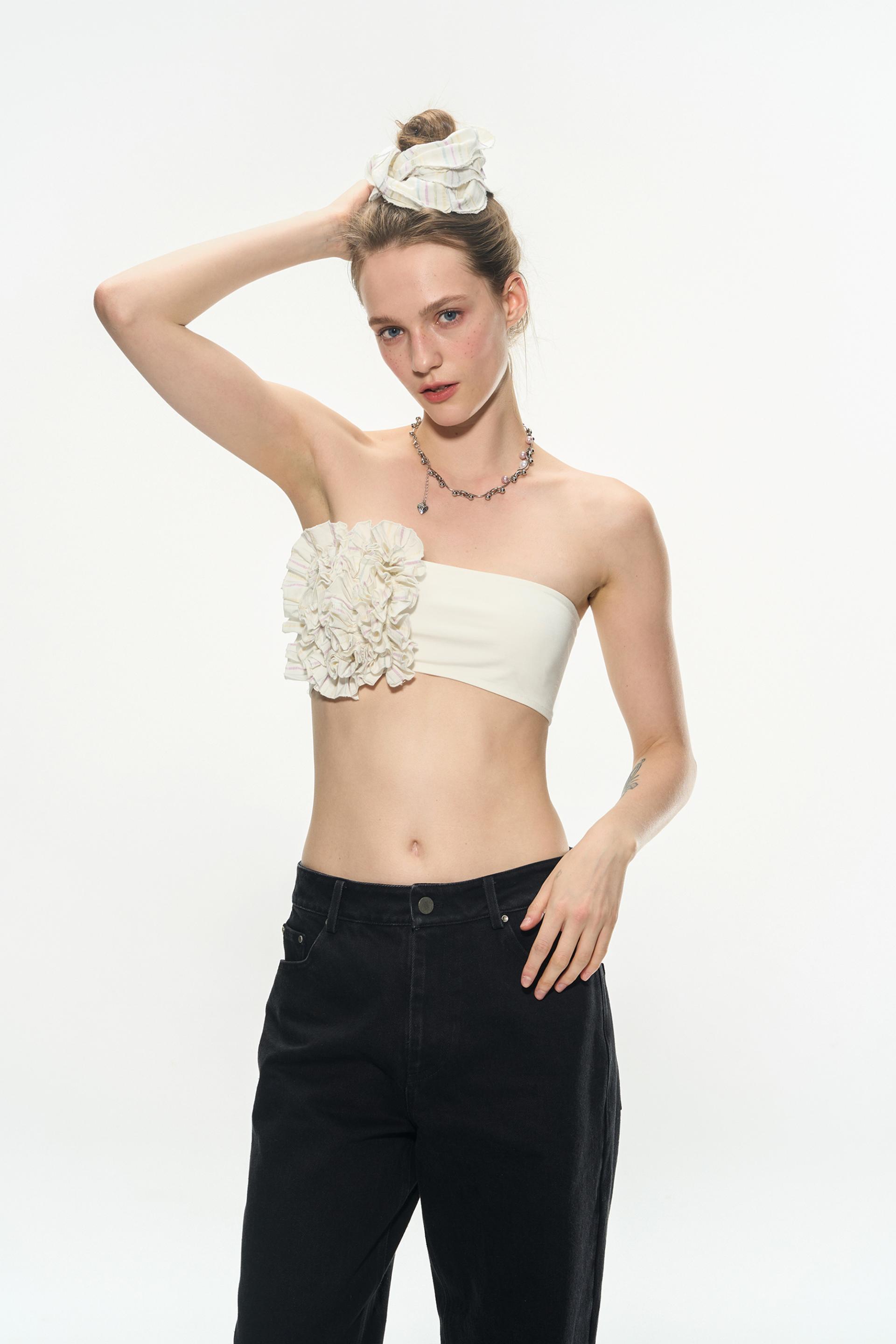 - 플라워 주름 디테일이 강조된 크롭 튜브탑