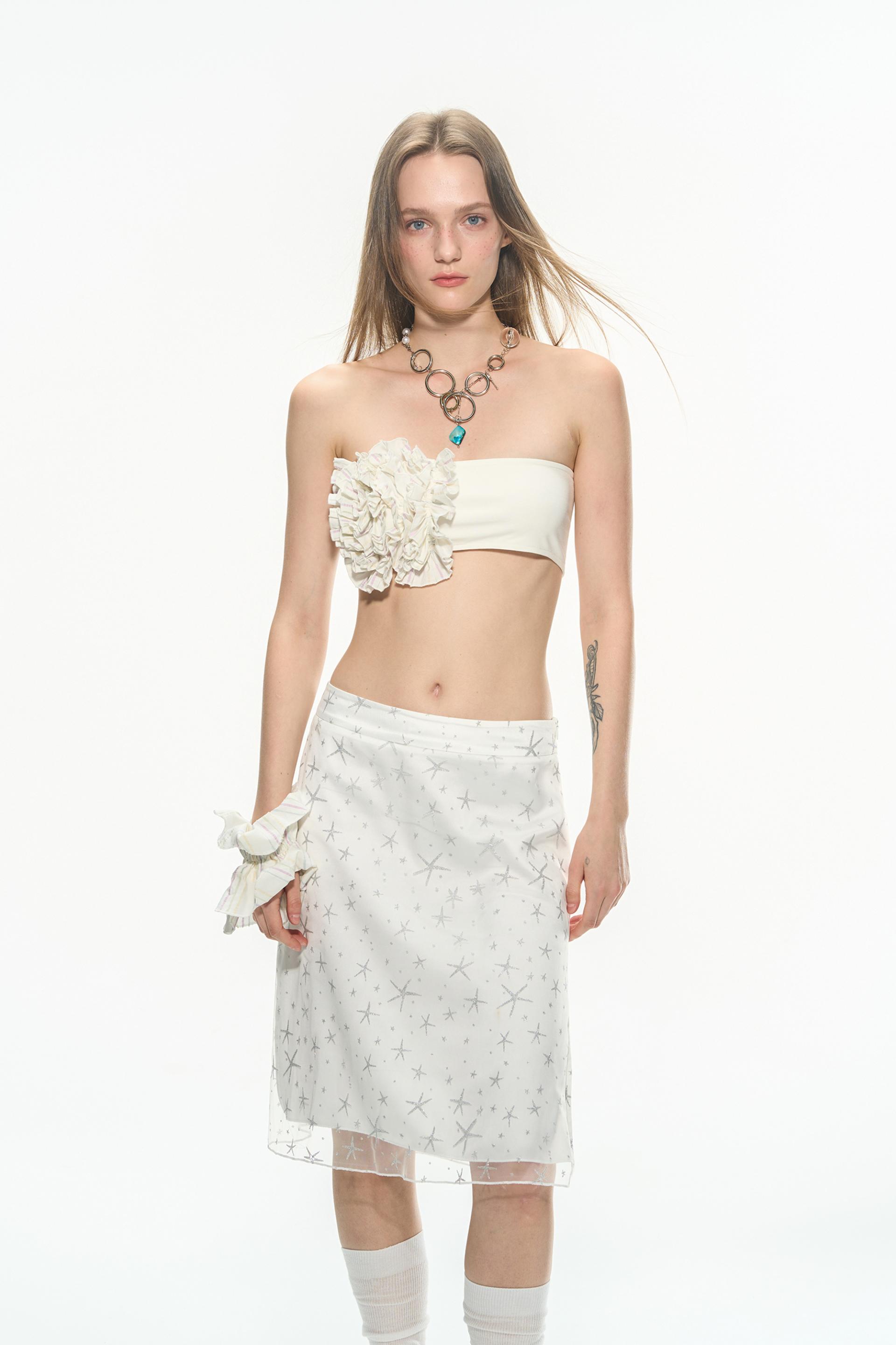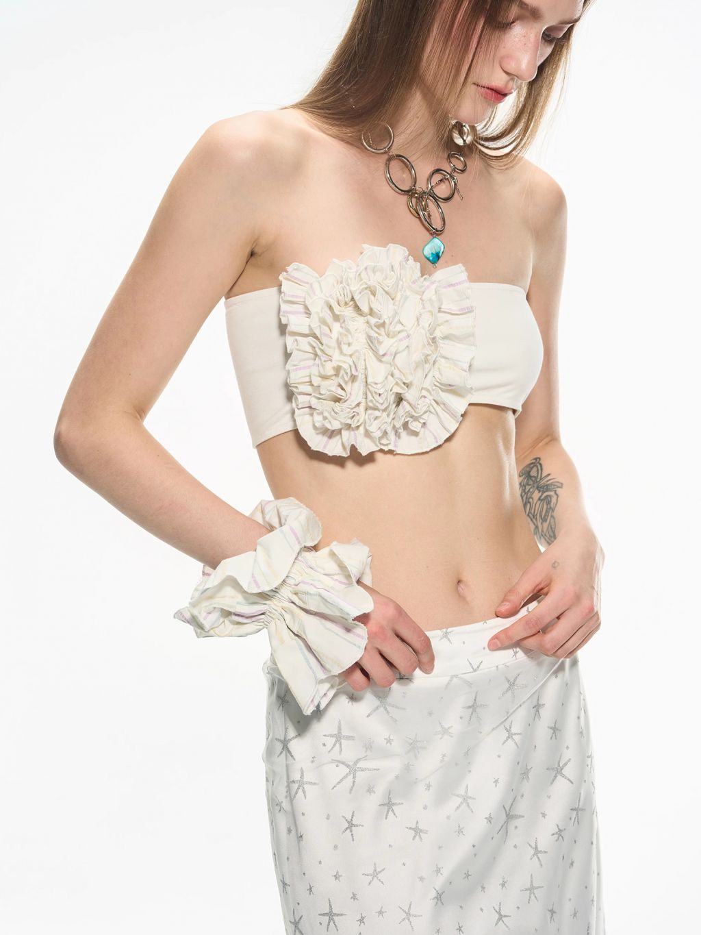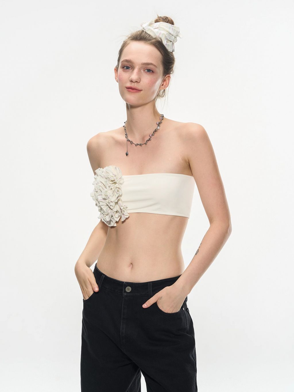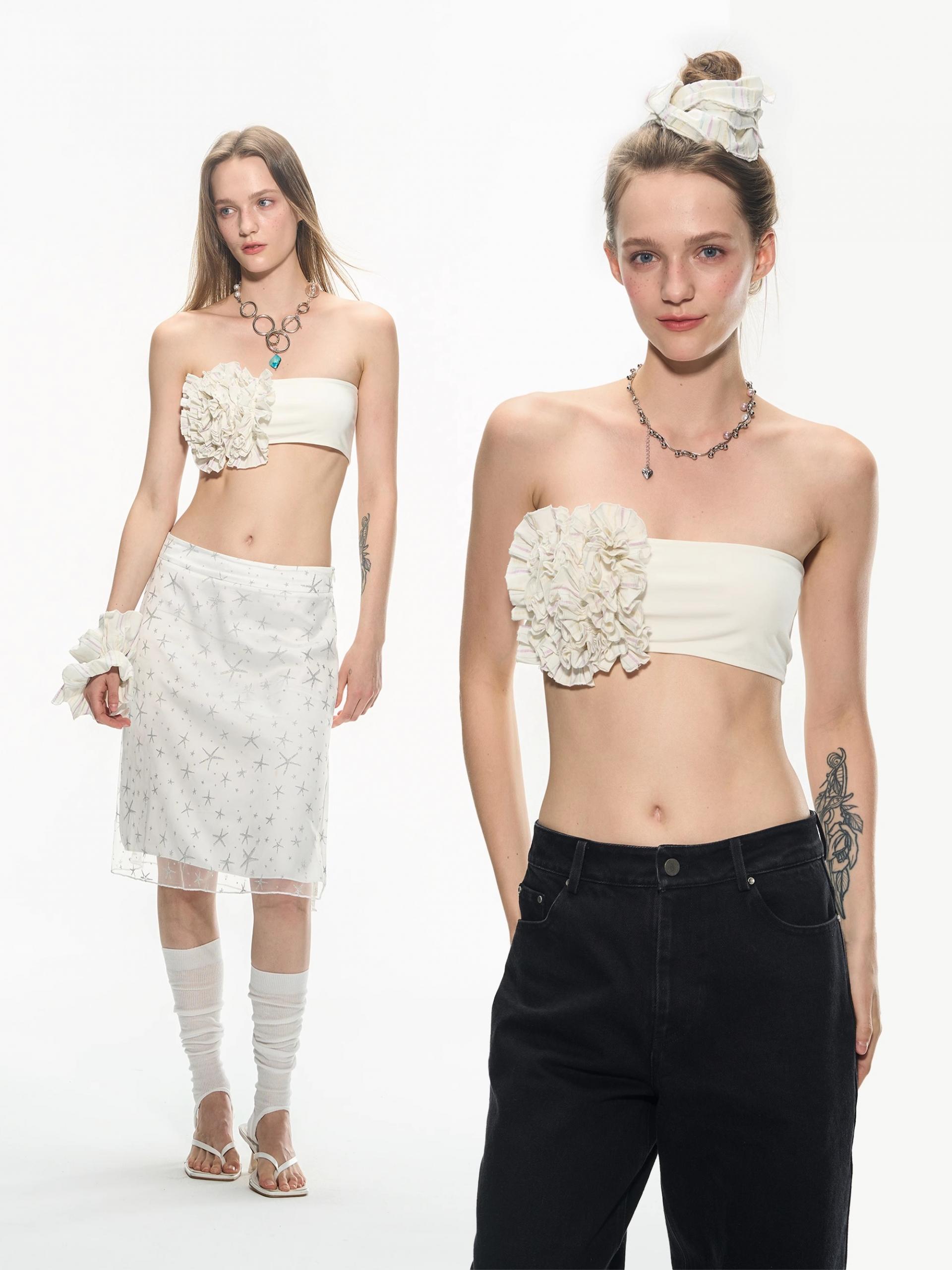 - 플라워 주름 디테일이 강조된 크롭 튜브탑