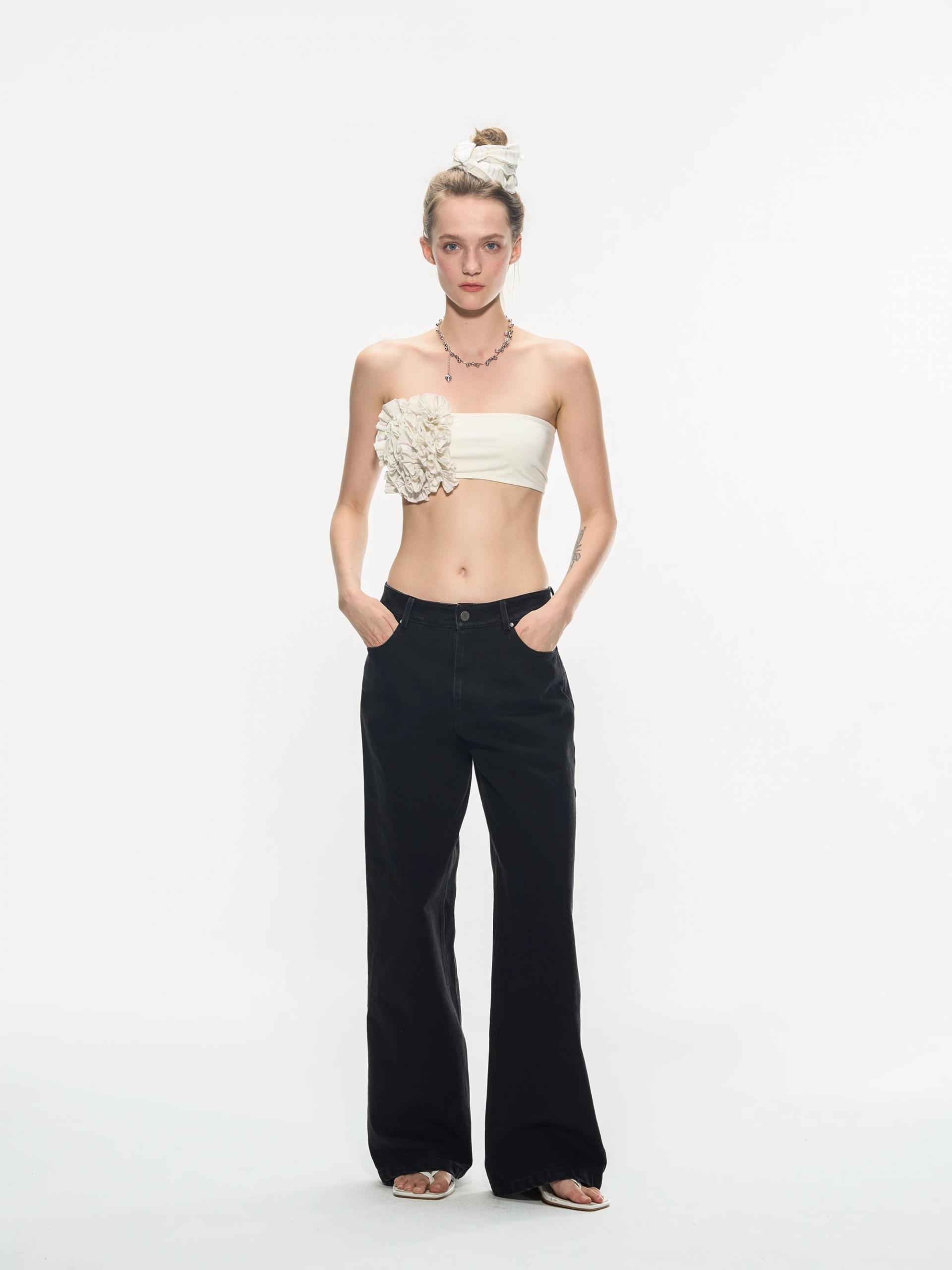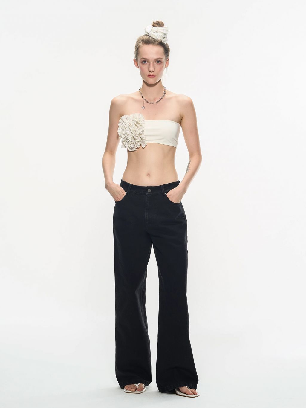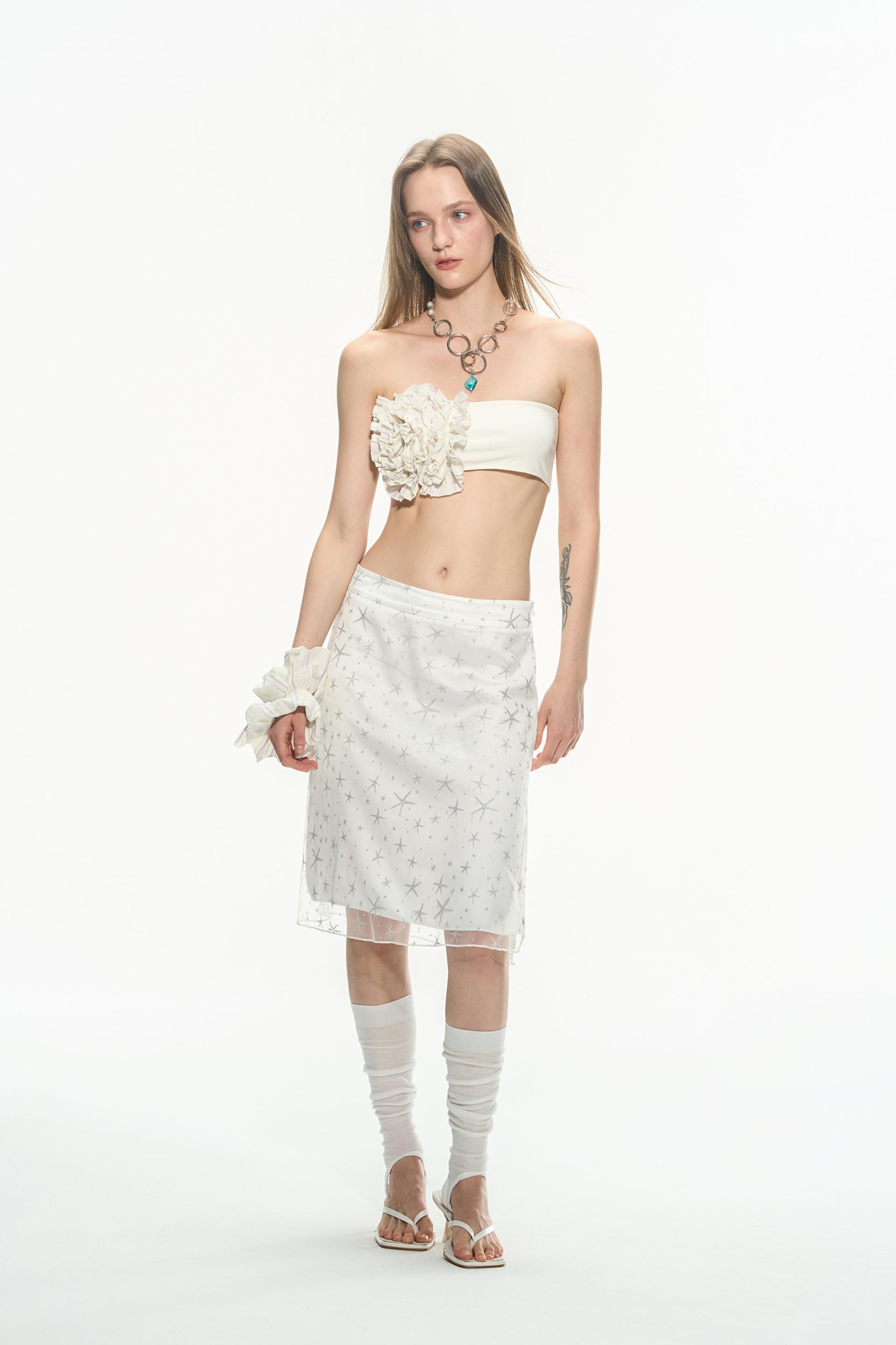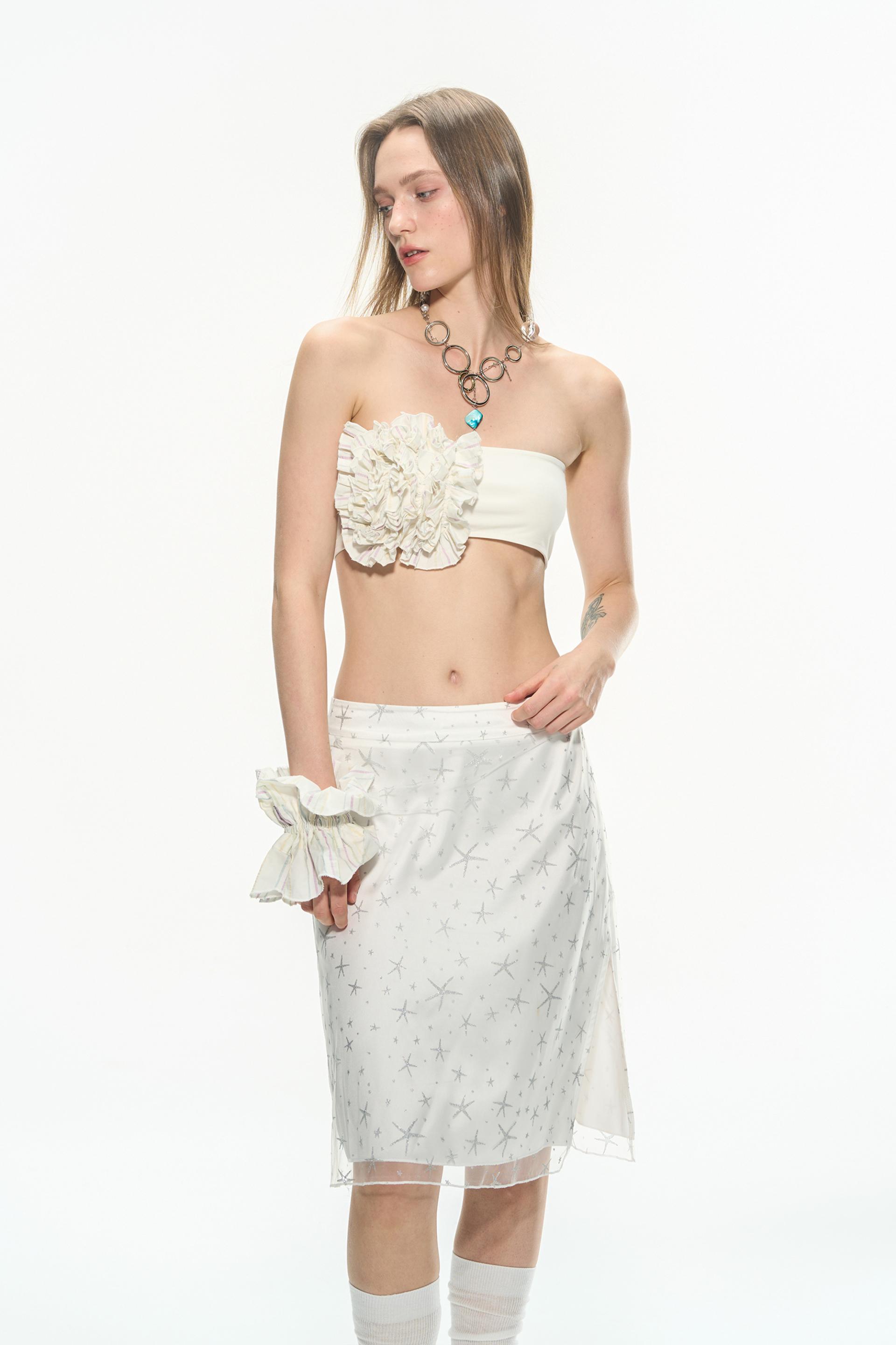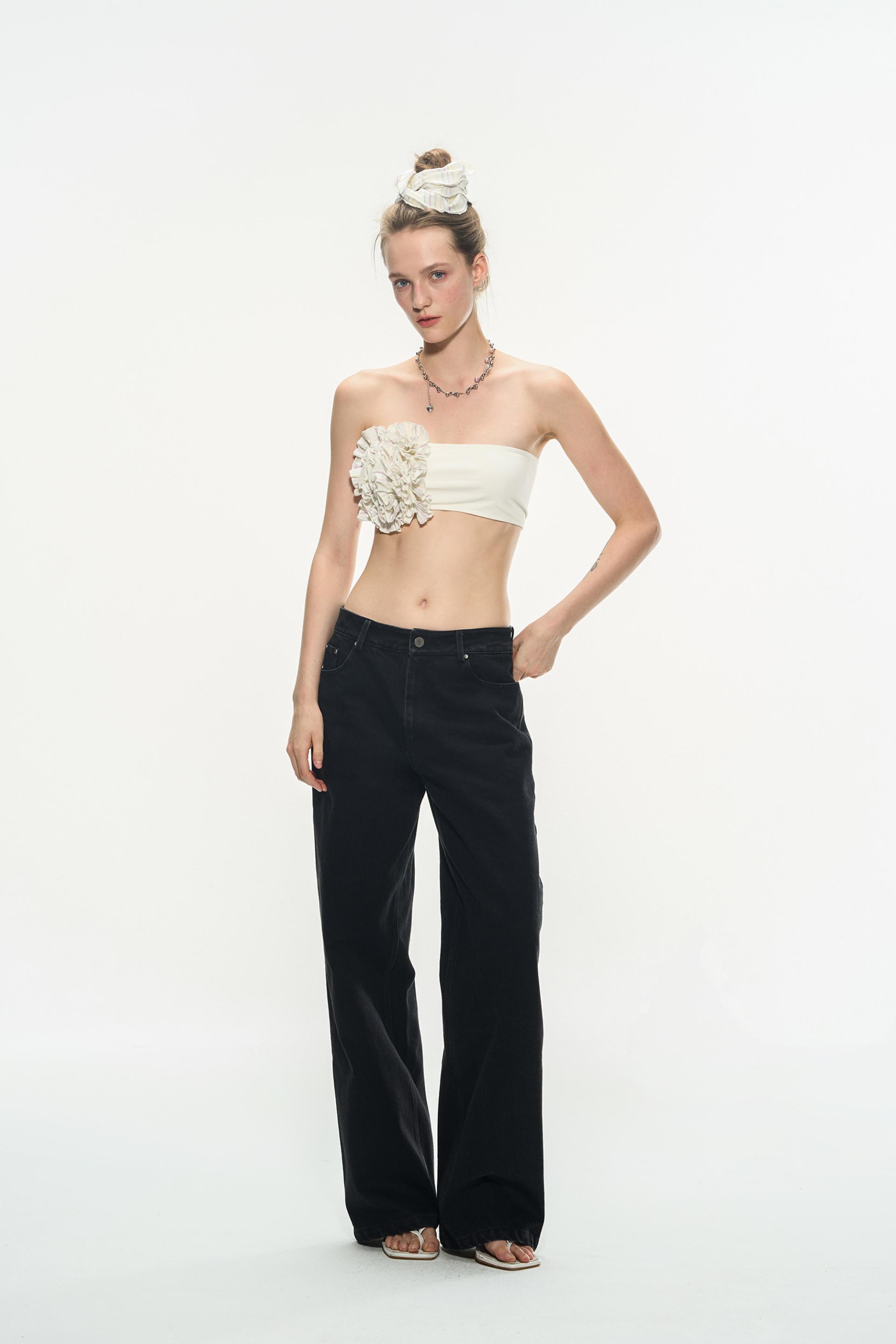 - 플라워 주름 디테일이 강조된 크롭 튜브탑