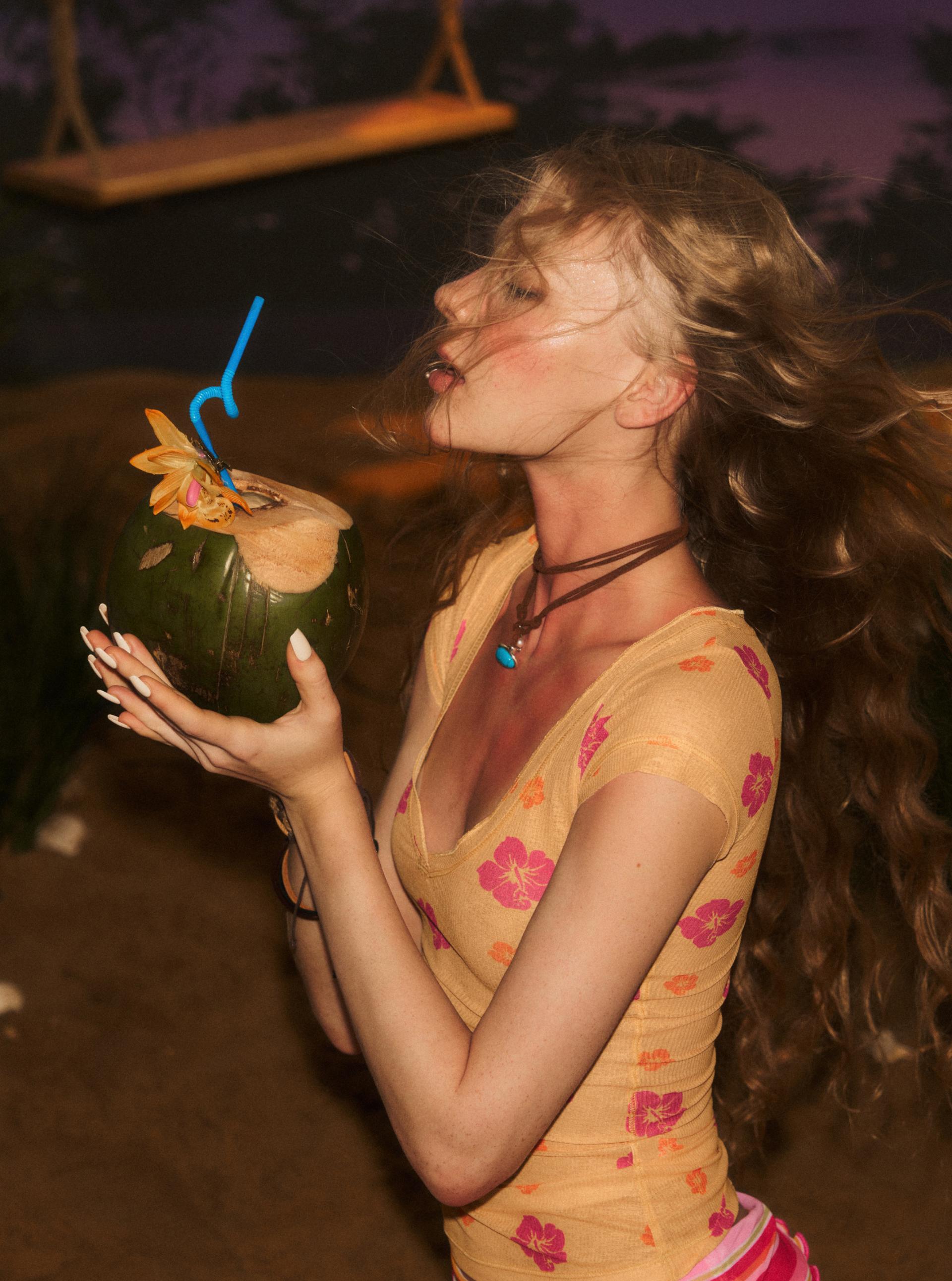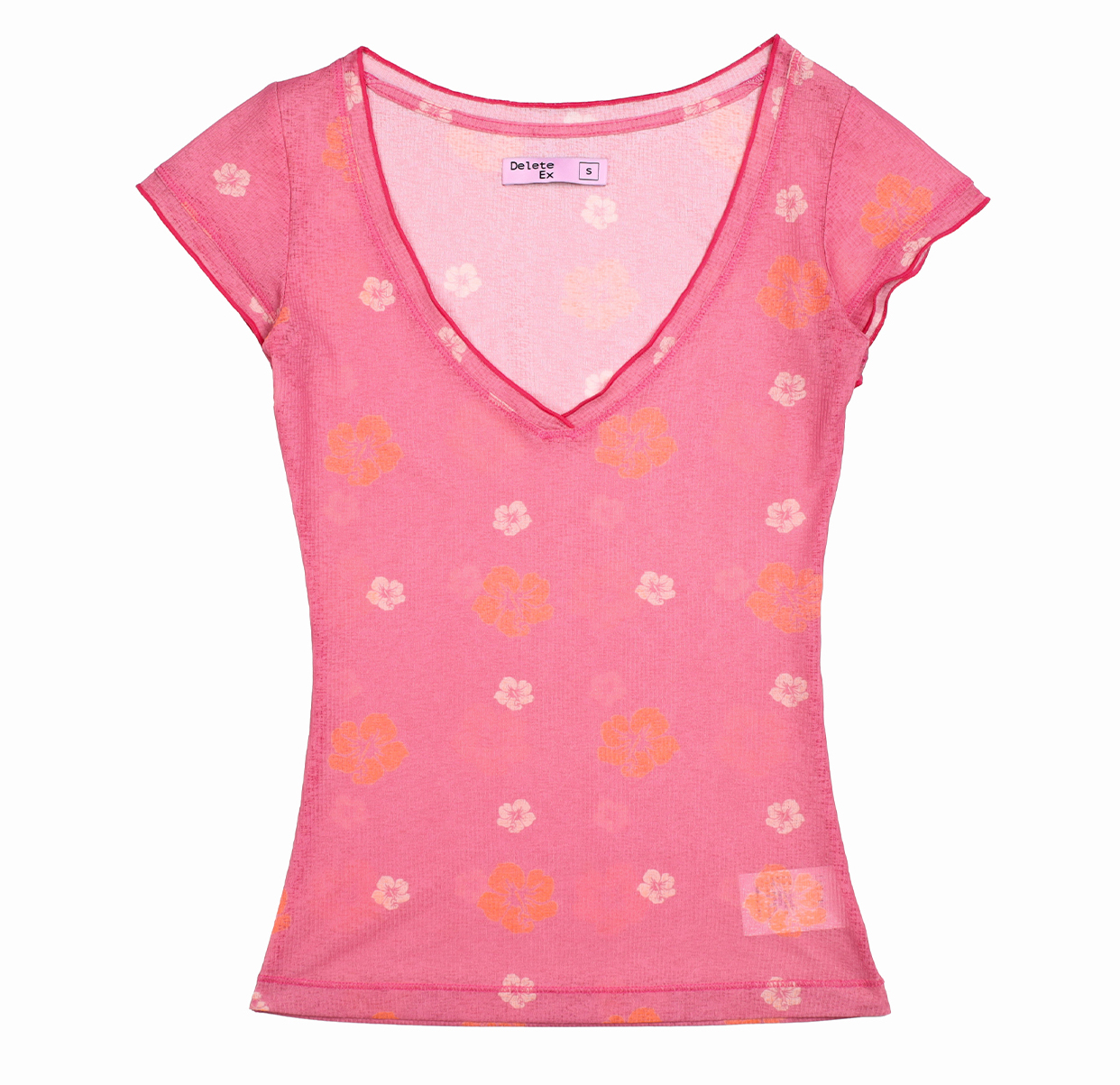 가볍고 시스루한 원단에 플라워 프린트가 더해져 여름 무드를 살린 티셔츠로 바디 라인을 은은하게 드러내는 핏으로 단독 또는 레이어드 스타일링에 활용하기 좋습니다.