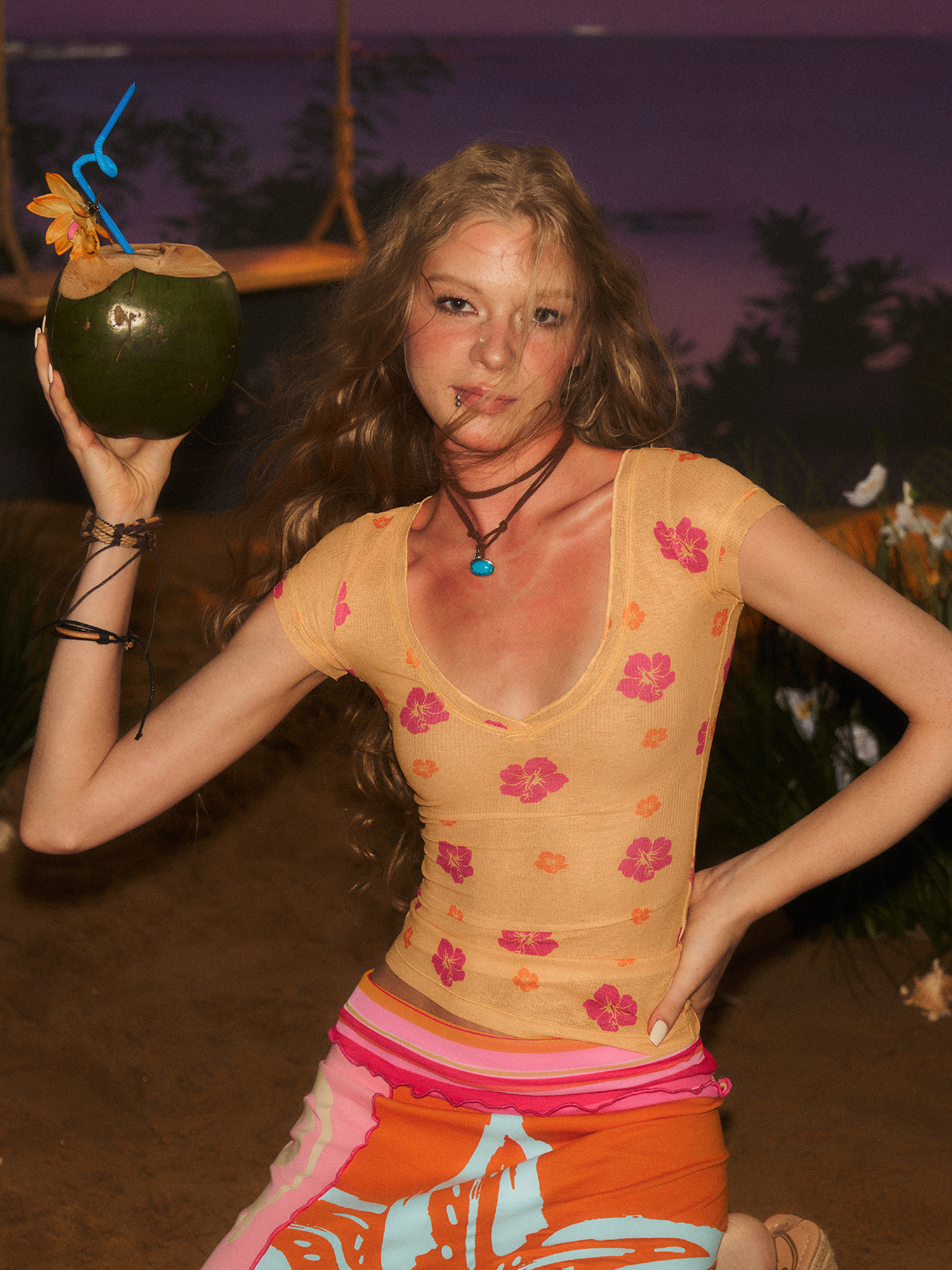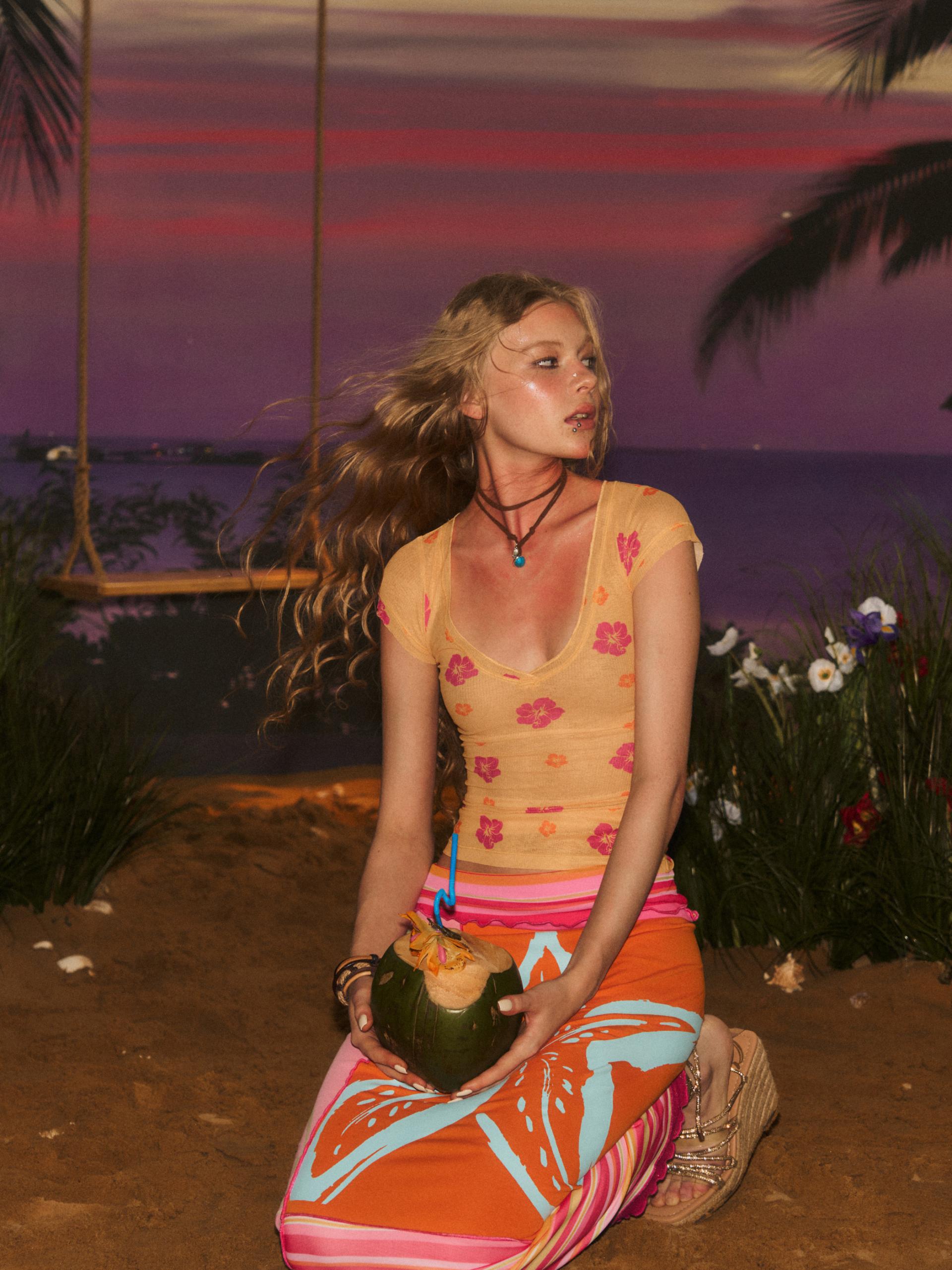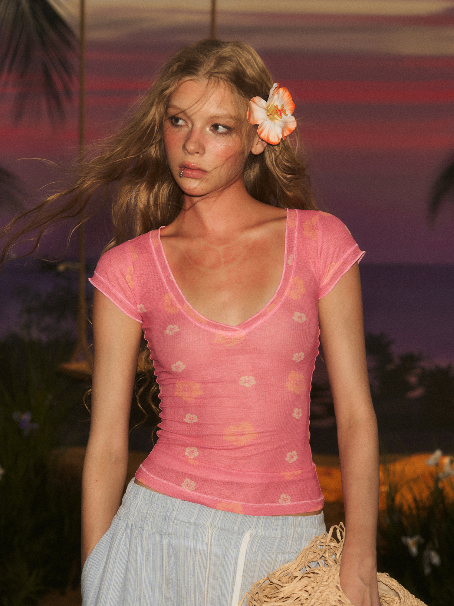 Sunset Flower Sheer Top