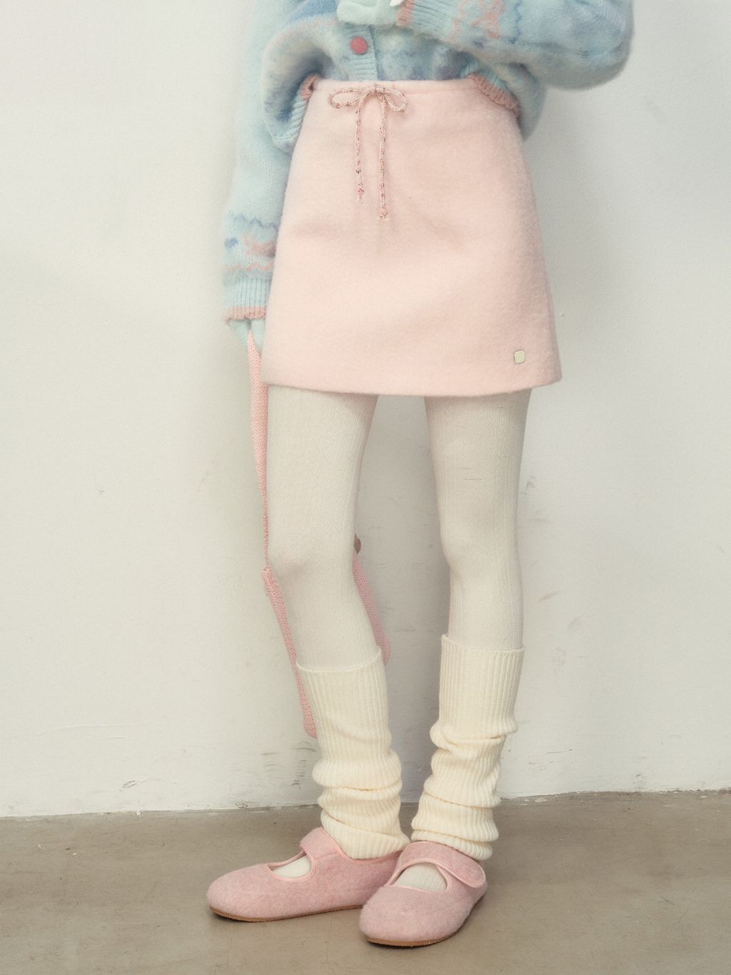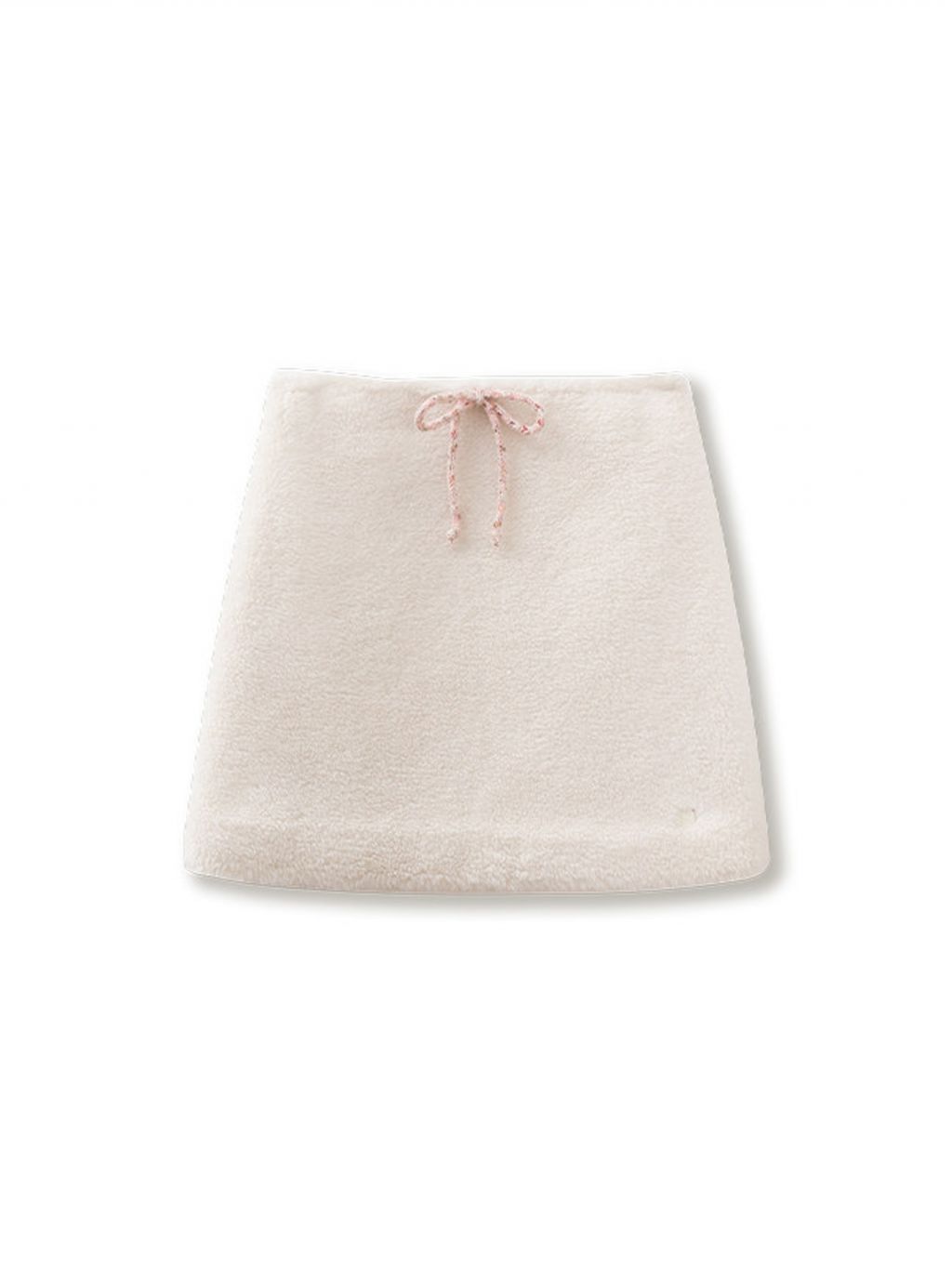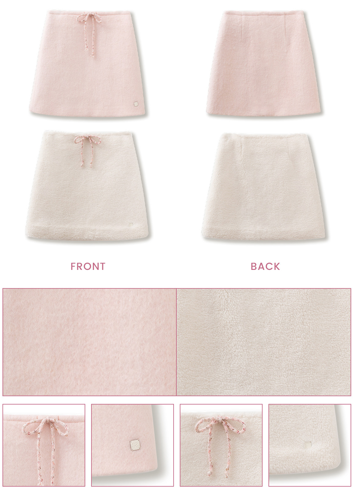 보송보송한 플리스 텍스처에 리본 스트링 포인트를 더한, 겨울 코디를 한 번에 사랑스럽게 만드는 A라인 미니 스커트입니다. 니트·가디건·맨투맨 어디에나 매치가 쉬워 데일리로 손이 자주 가요.