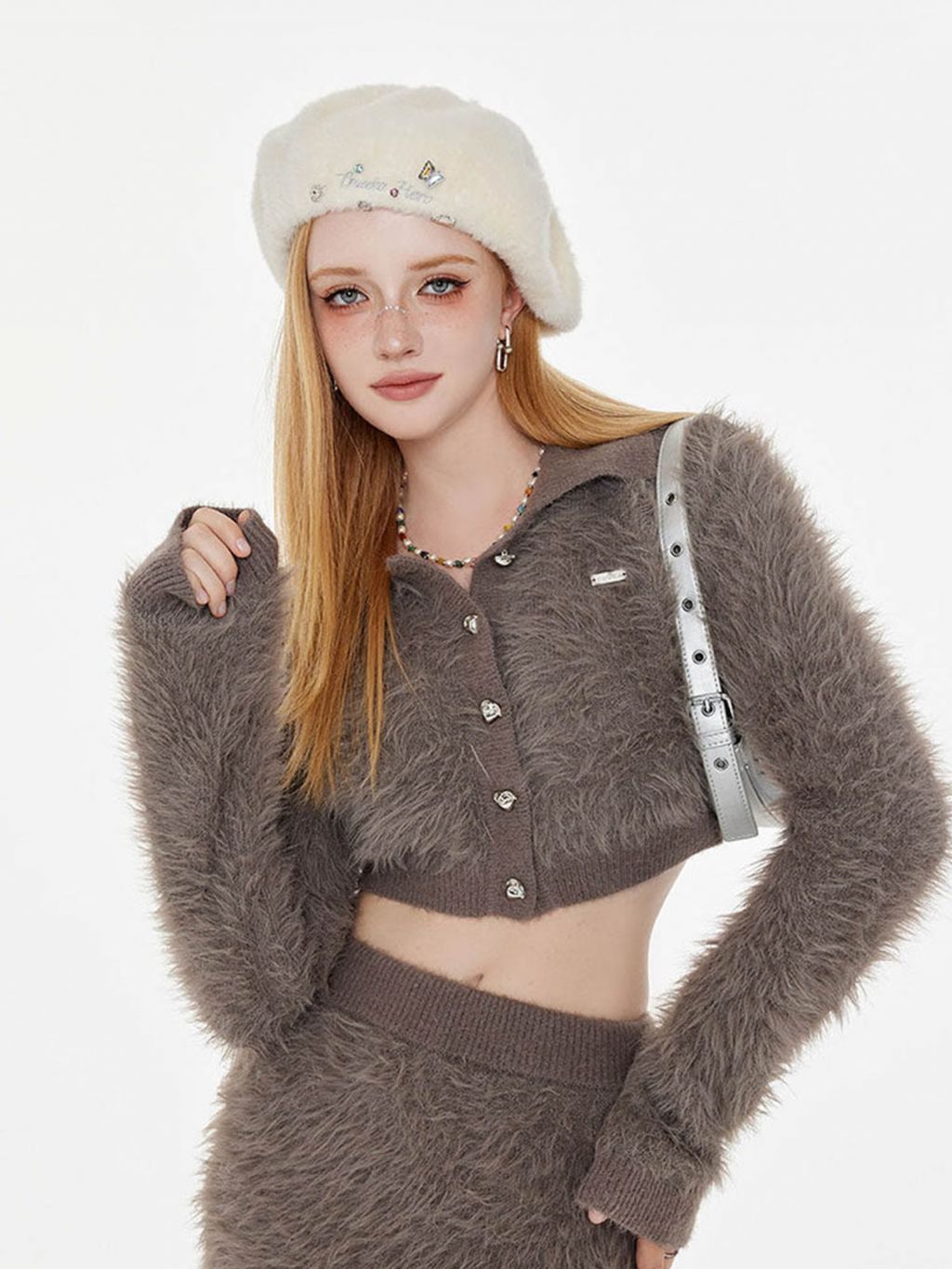 Fuzzy Muse Knit Set (Cardigan & Skirt: Sold Separately)