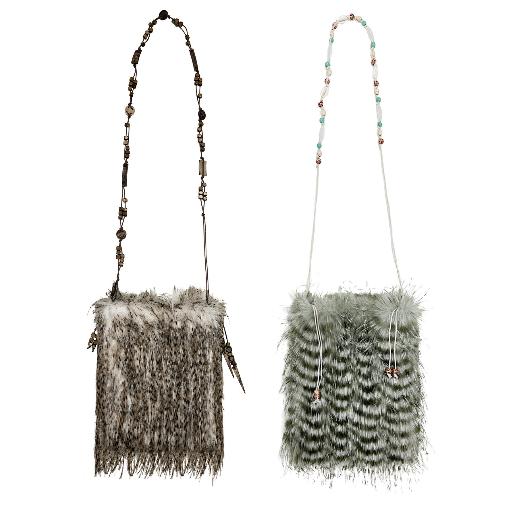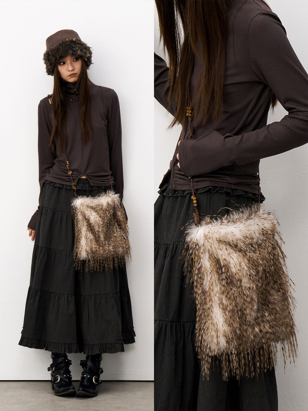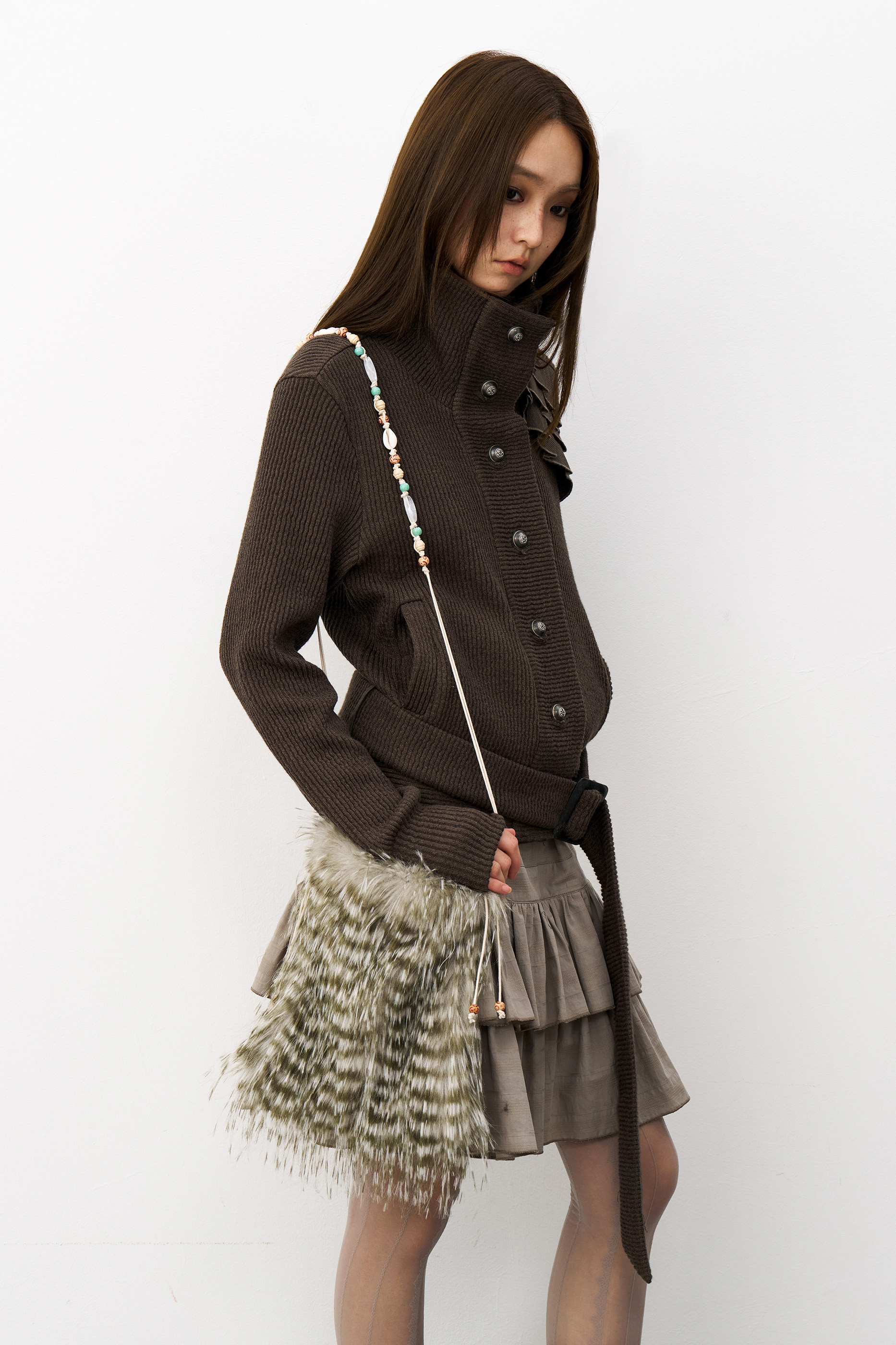 깃털이 겹쳐진 듯한 버드 패턴과 롱 파일 퍼 텍스처가 한 번에 분위기를 만드는 토트백입니다. 가볍게 들어도 룩에 “무드”가 생기는, 리디큘러스식 포인트 백이에요.