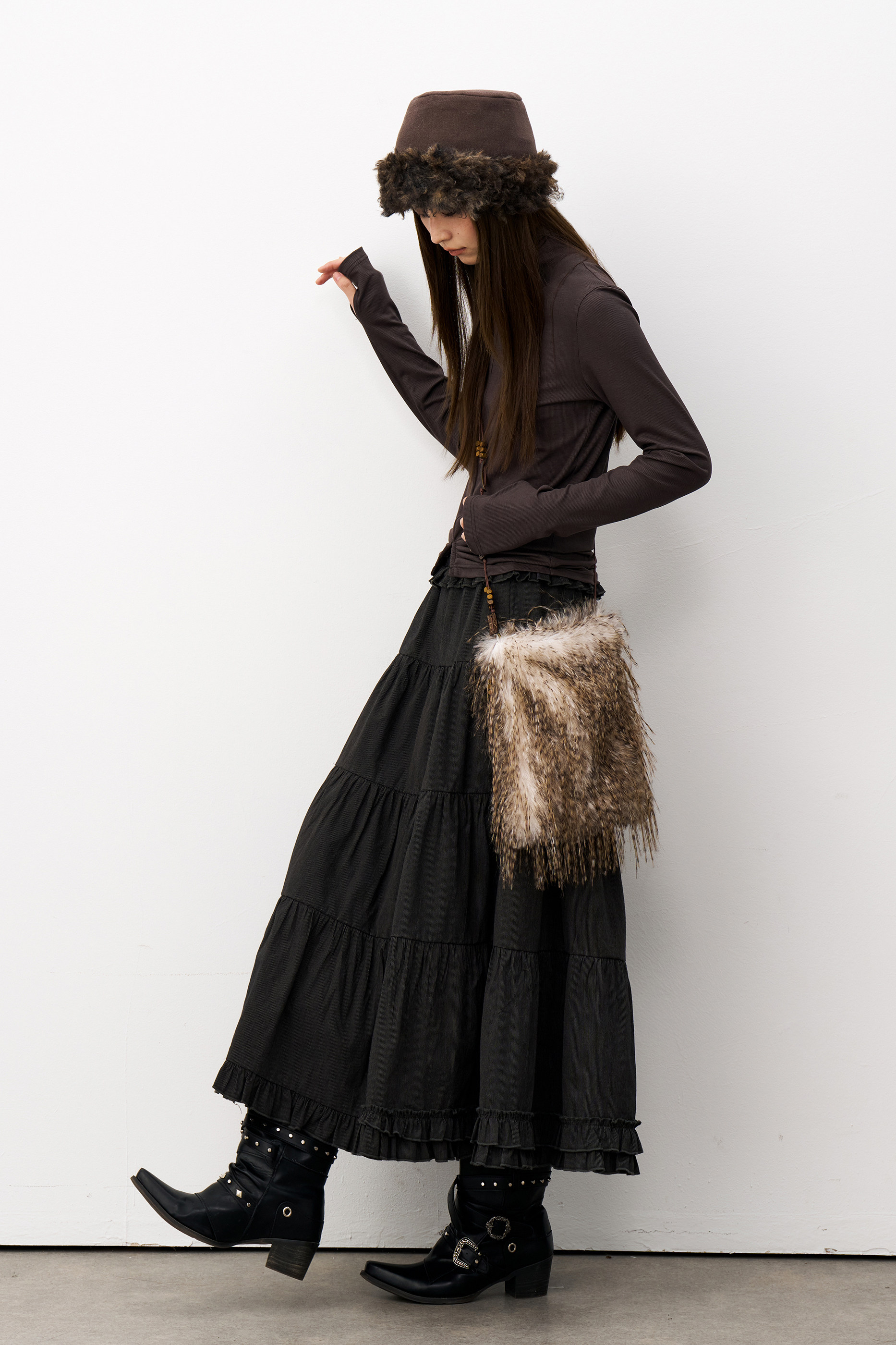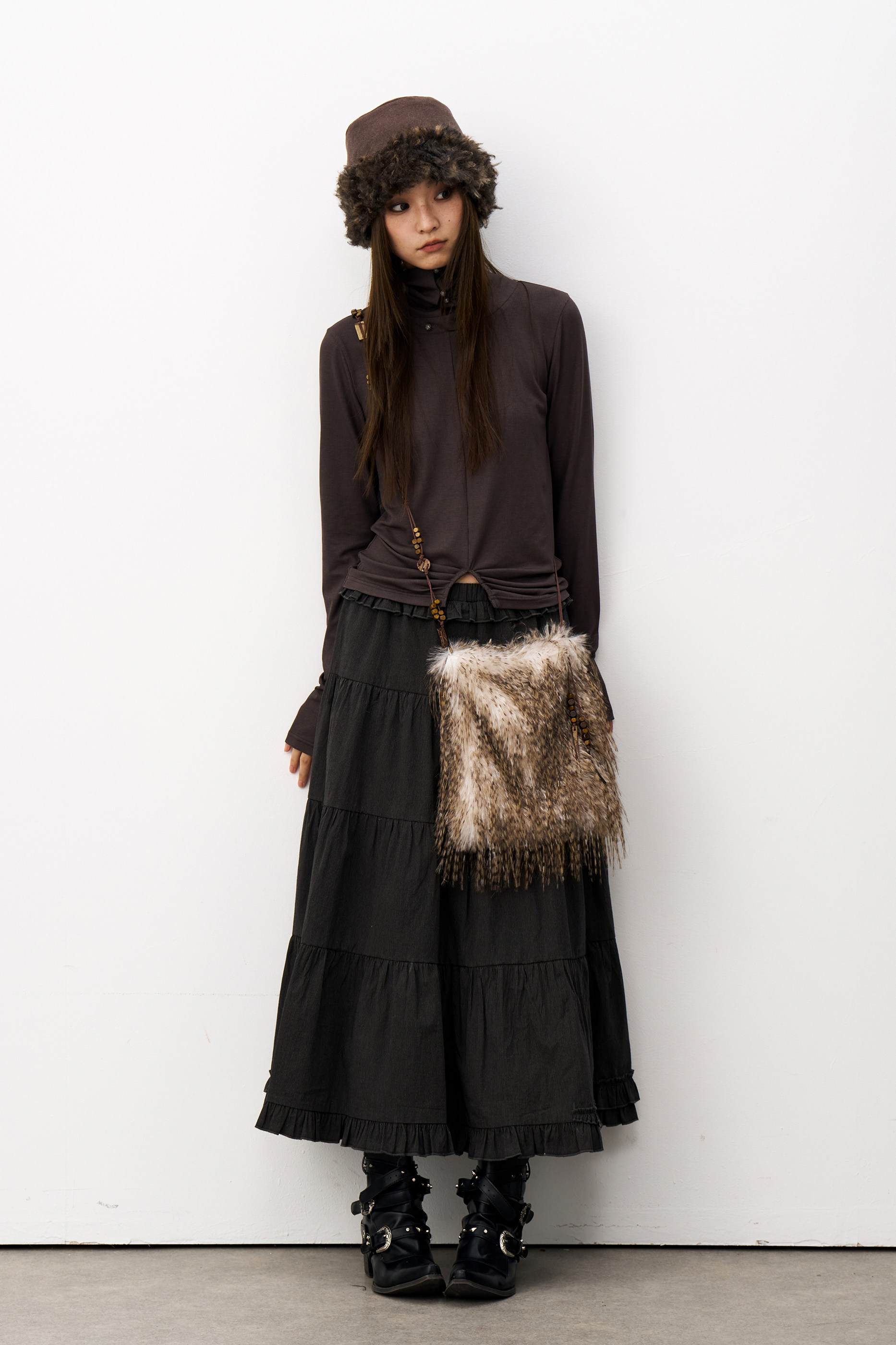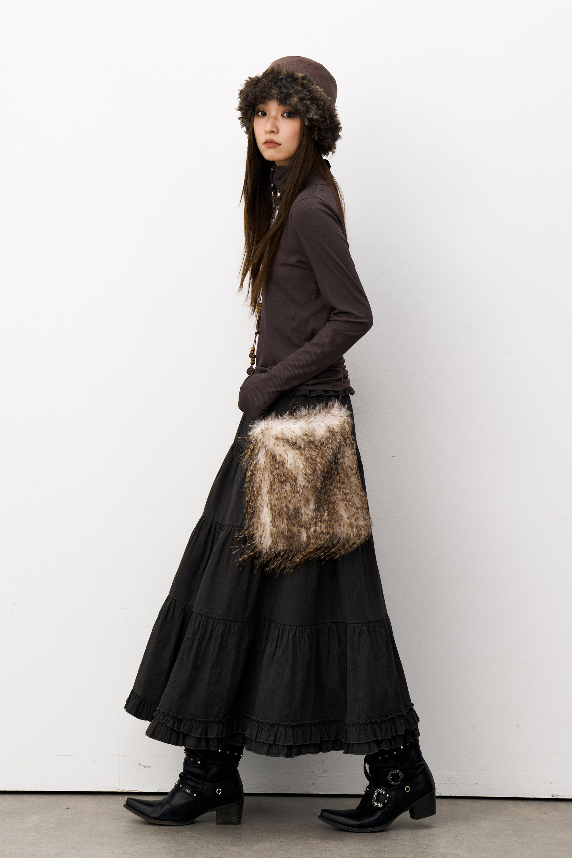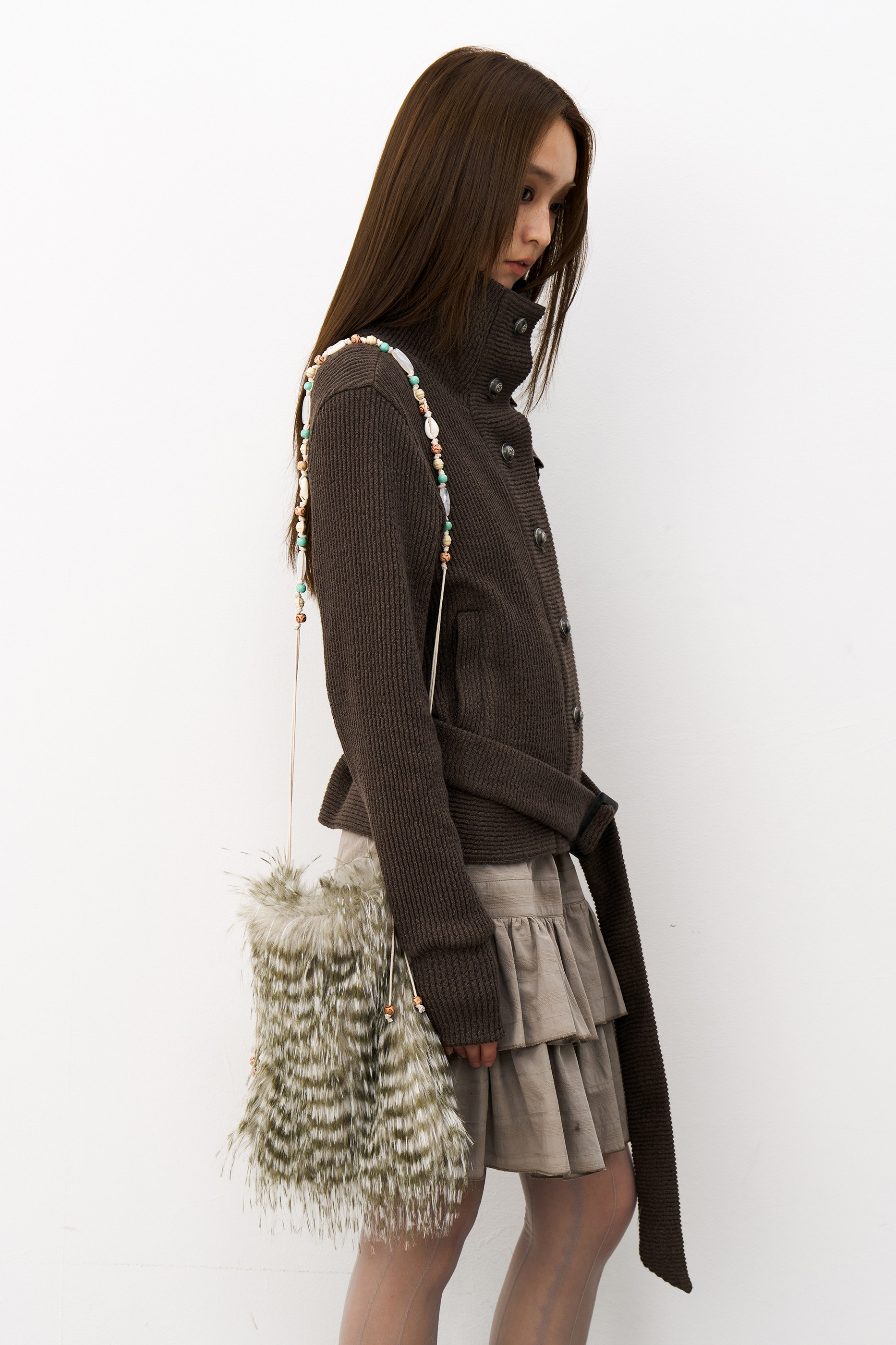 깃털이 겹쳐진 듯한 버드 패턴과 롱 파일 퍼 텍스처가 한 번에 분위기를 만드는 토트백입니다. 가볍게 들어도 룩에 “무드”가 생기는, 리디큘러스식 포인트 백이에요.