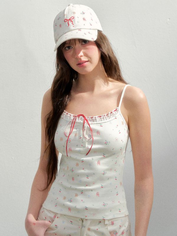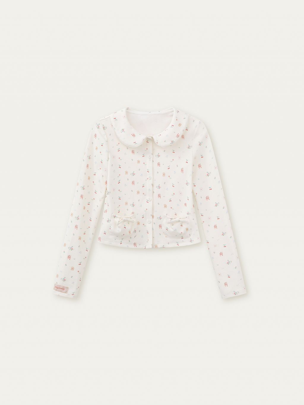 밀키한 아이보리 톤 위에 잔잔한 프린트가 더해져, ‘꾸안꾸 러블리’ 무드를 바로 완성해주는 투피스 셋업입니다. 돌 카라 디테일로 얼굴선이 더 또렷하고 사랑스럽게 정리됩니다.