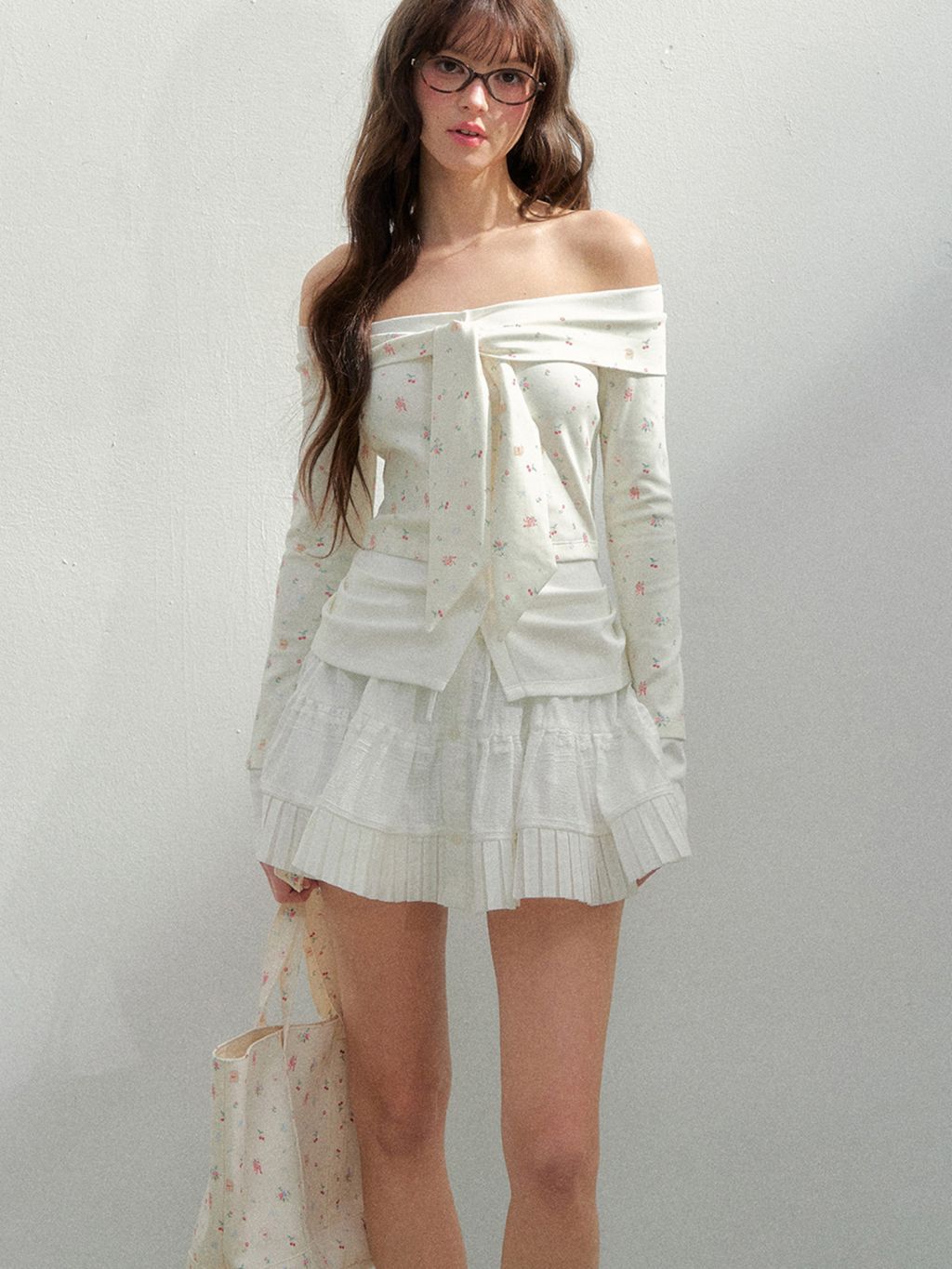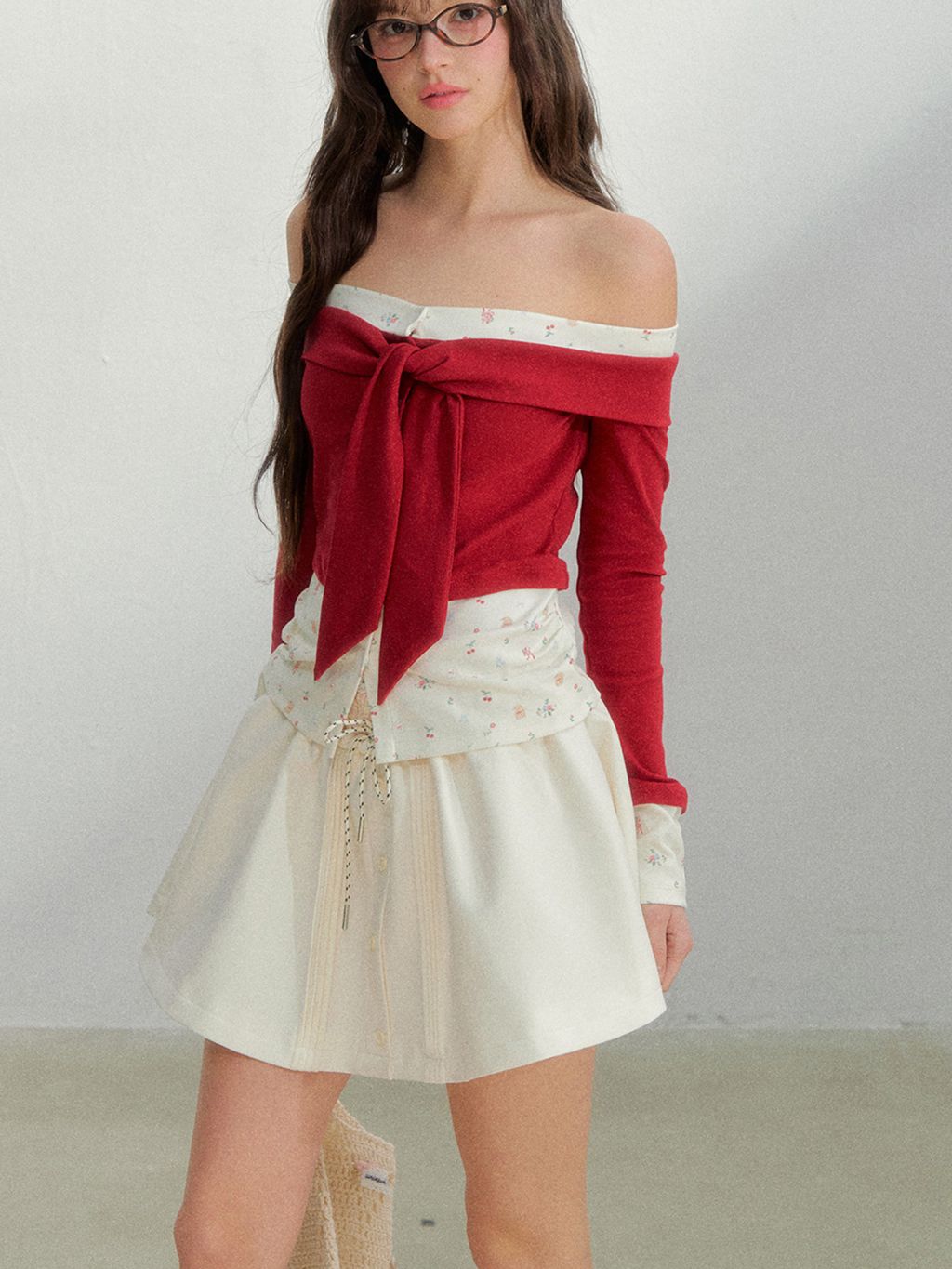 - 오프숄더 네크라인으로 쇄골·목선이 길어 보이게 연출됩니다.