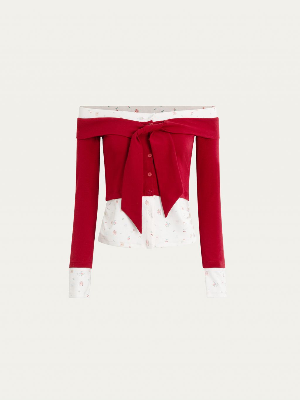 Cherry Bow Off-Shoulder Top