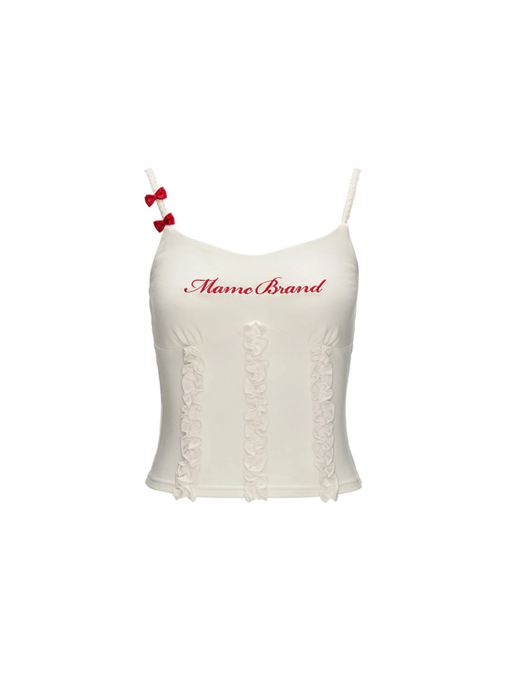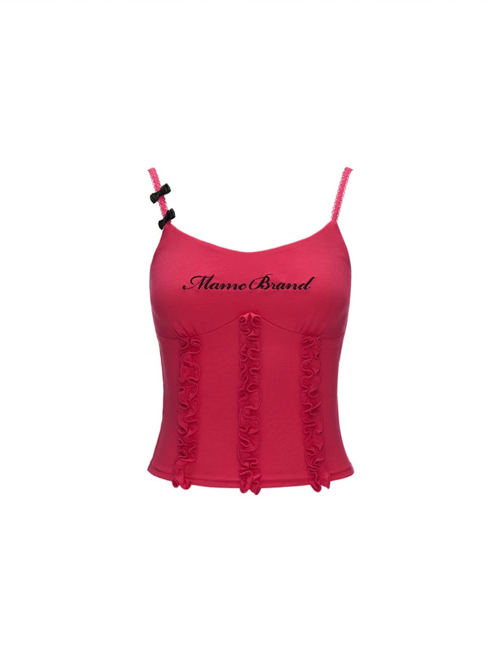 캔디처럼 컬러풀하고 발랄한 무드를 담아낸 슬림핏 탱크탑으로 슬리브리스 스트랩 위에 작은 리본 장식이 달려 포인트를 더하며, 앞면에는 러플 디테일이 세로로 들어가 바디 라인을 보다 슬림하게 연출해줍니다.
