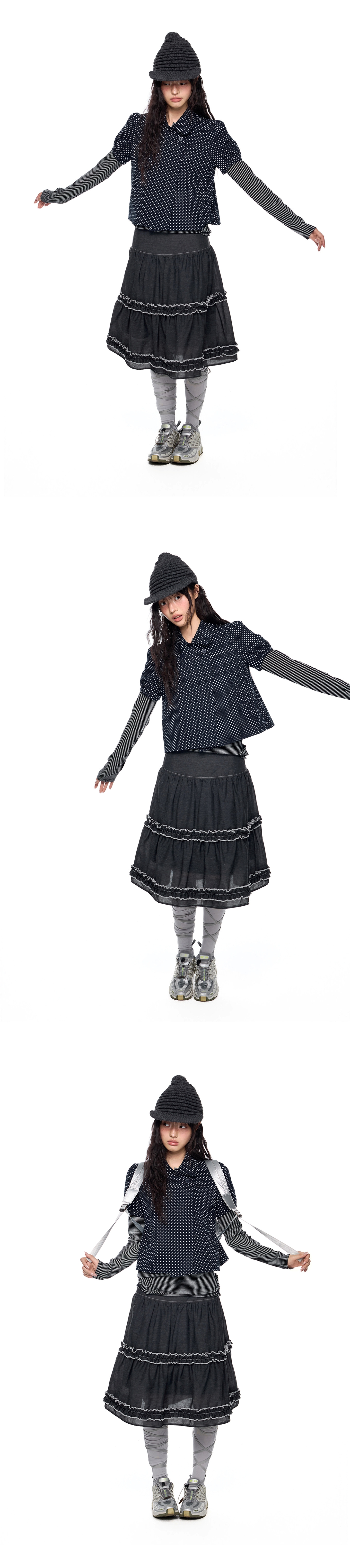 잔잔하게 퍼지는 A라인 실루엣에 레이스 트리밍과 셔링 디테일이 더해져, 리디큘러스 특유의 빈티지하고 러블리한 무드를 자연스럽게 완성하는 스커트입니다. 가볍게 흐르는 중장기장으로 움직일 때마다 더욱 여리한 분위기가 살아납니다.