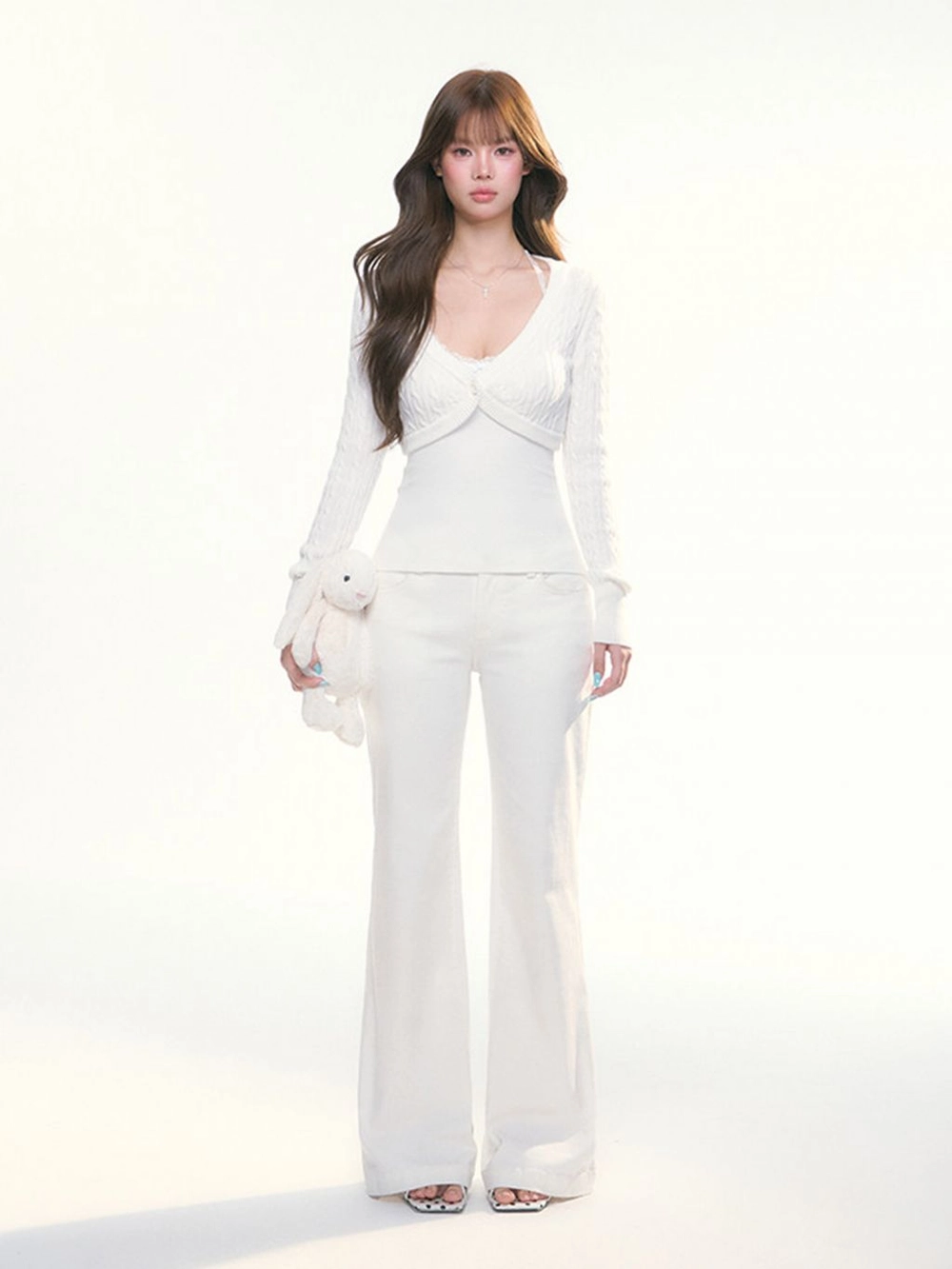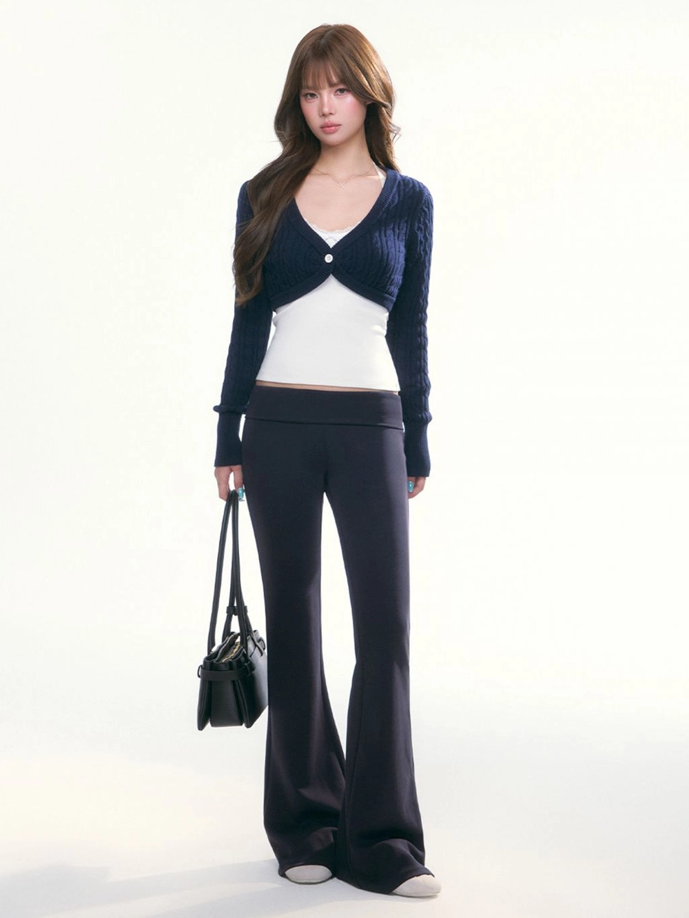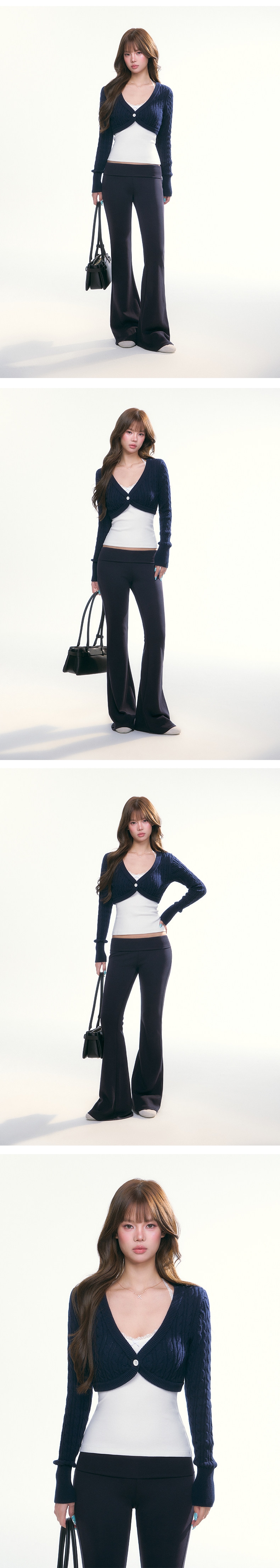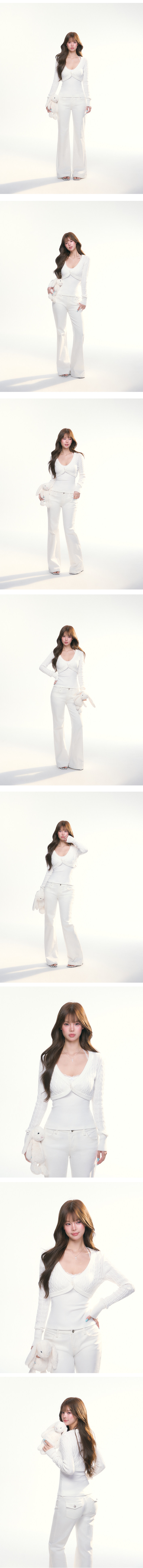 - 짧게 떨어지는 볼레로 기장과 깊은 브이넥 라인이 상체를 더욱 여리하고 슬림하게 연출합니다.