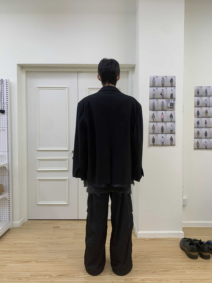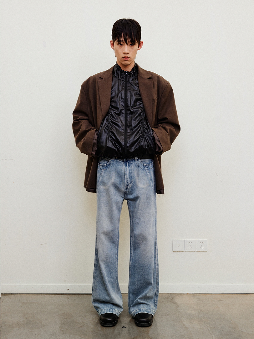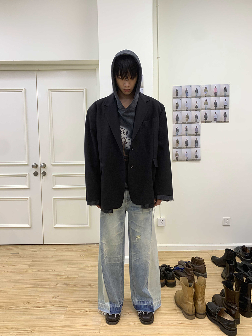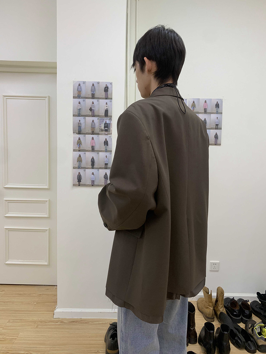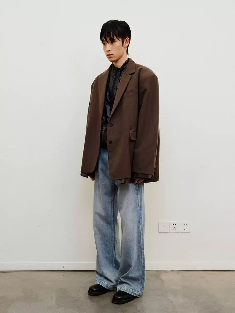루즈 핏의 트림 레이어드 디테일이 유니크한 블레이져입니다.