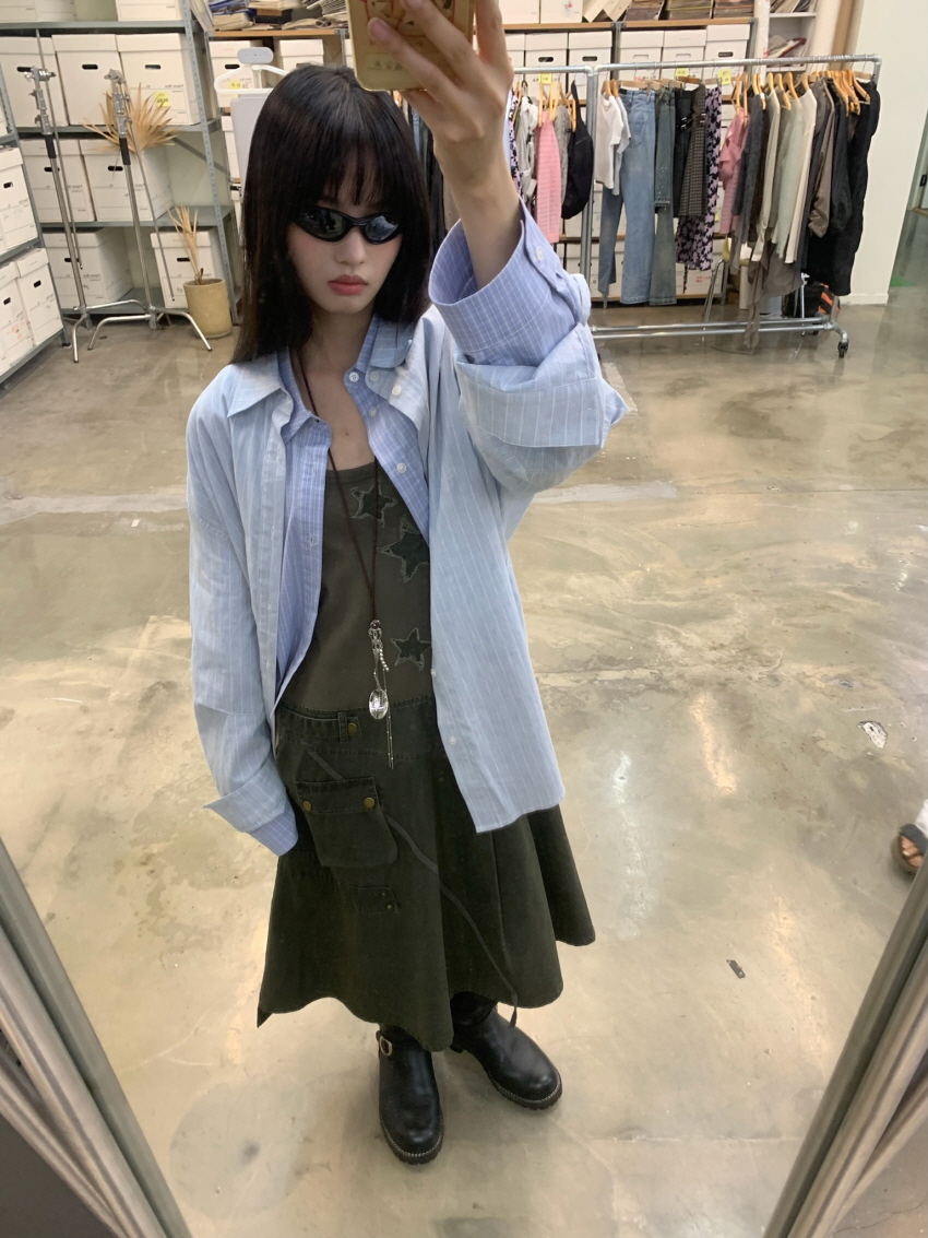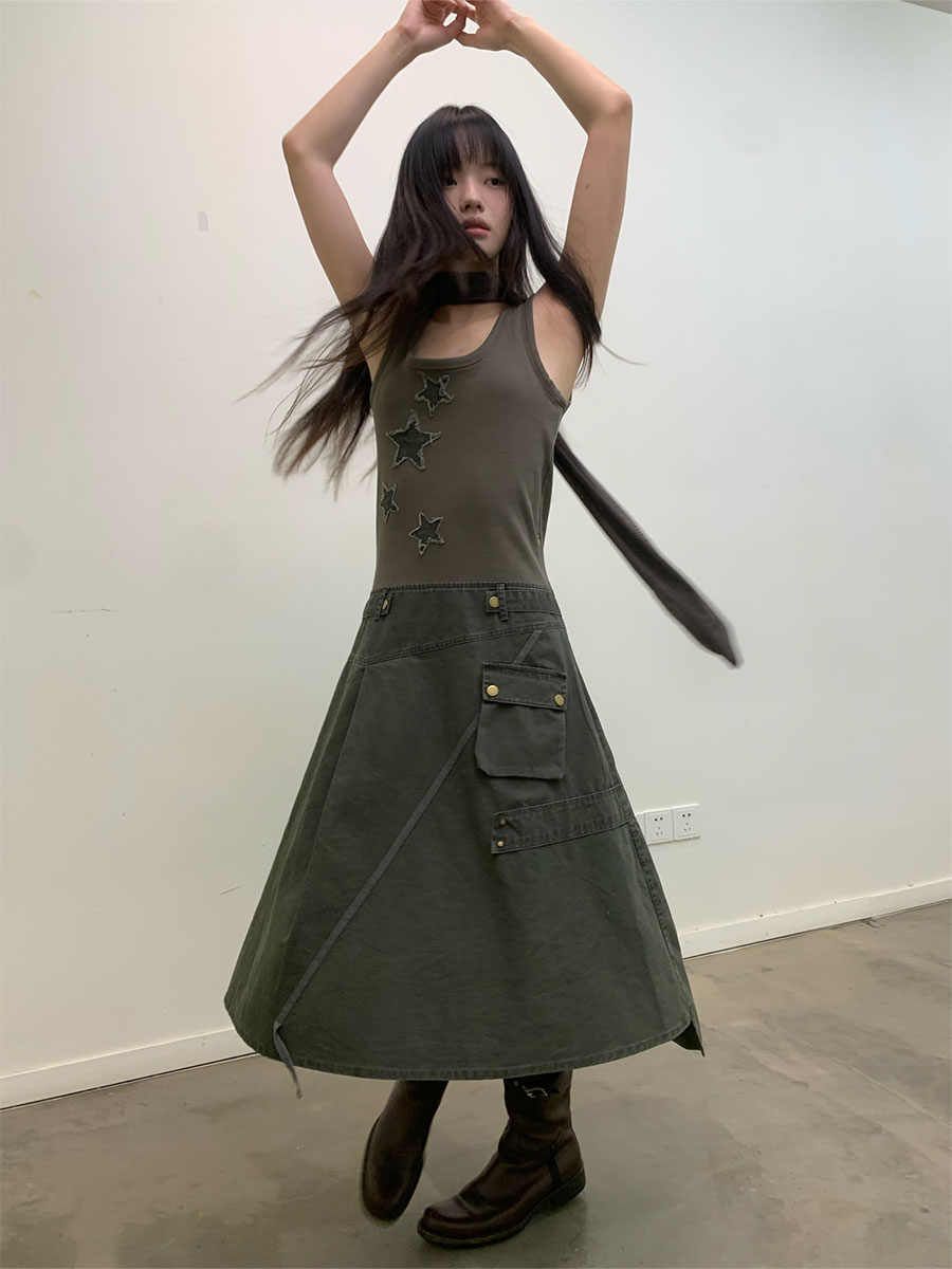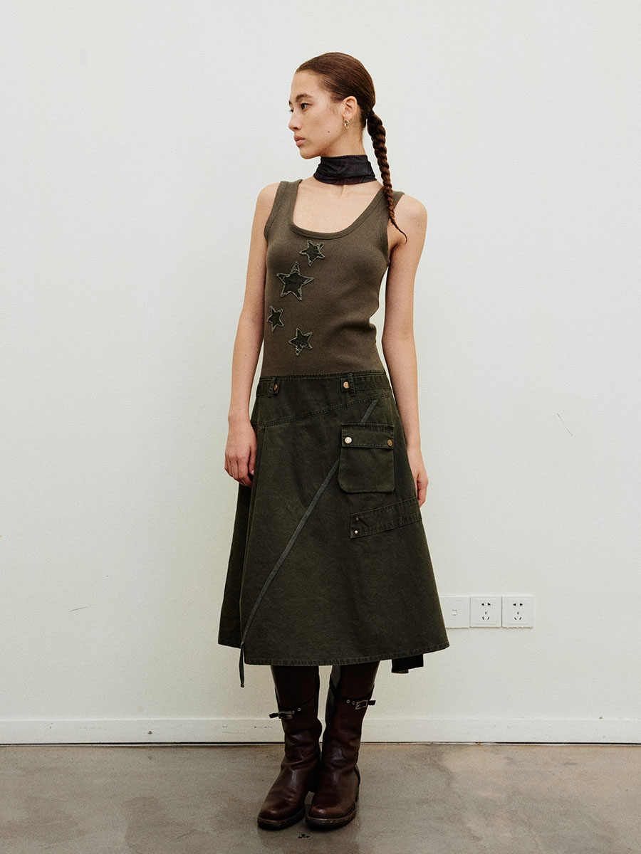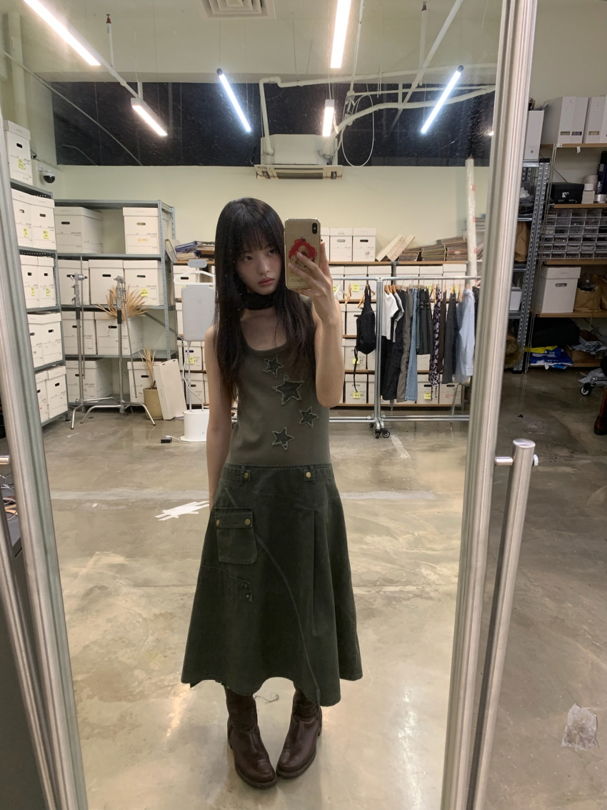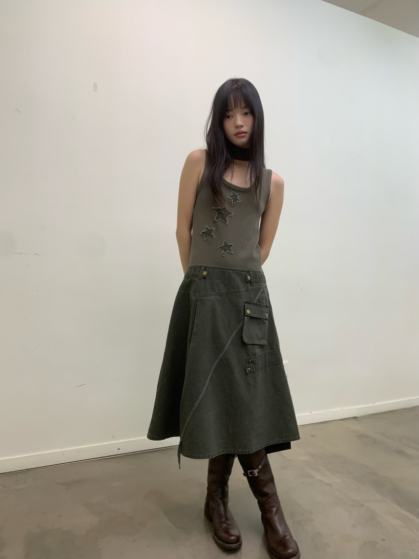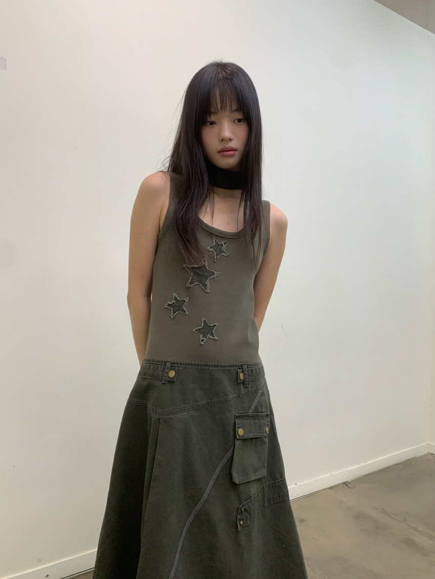 빈티지한 별 포인트와 포켓 , 워싱처리가 어우러진 유니크한 원피스입니다.