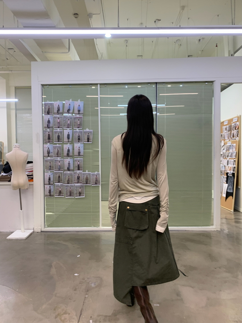 - 천을 덧댄 콜라주 기법의 치마 부분 디테일