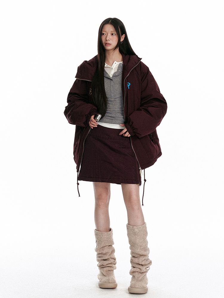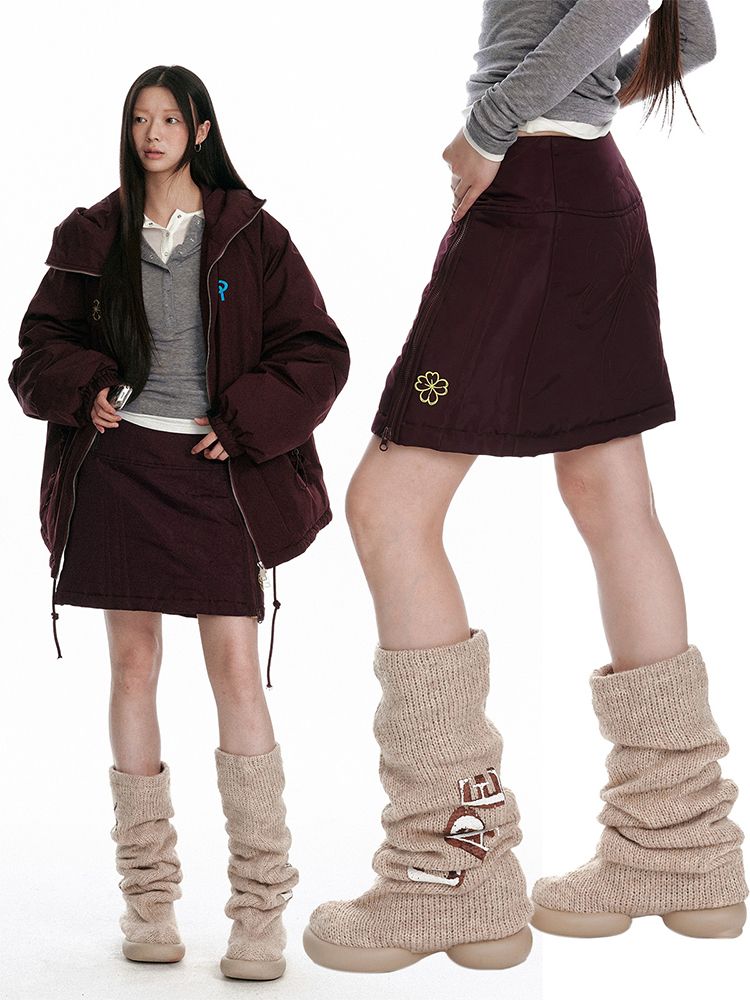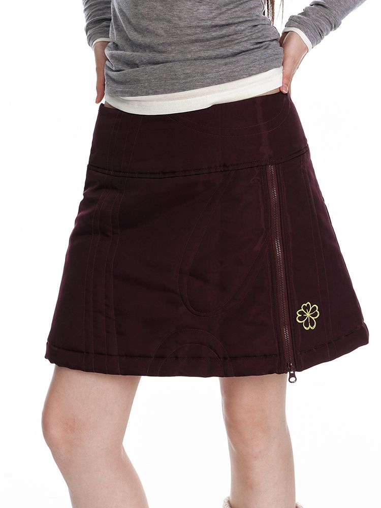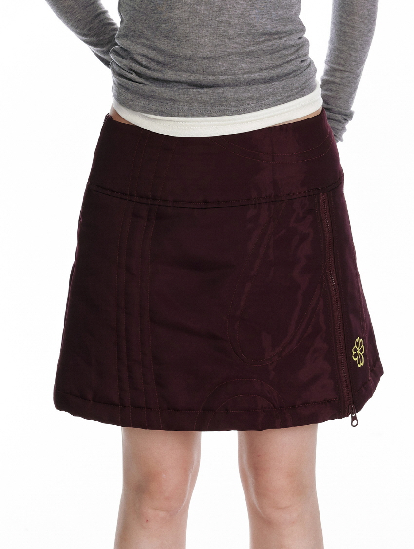 귀여운 네잎크로버 자수와 지퍼 디테일이 포인트인 패딩 숏 스커트 입니다.
