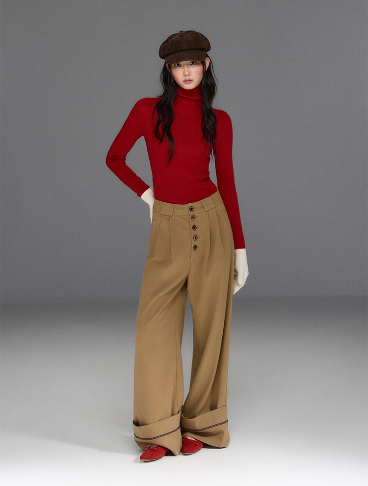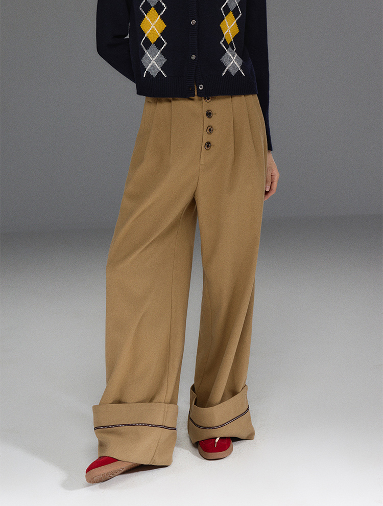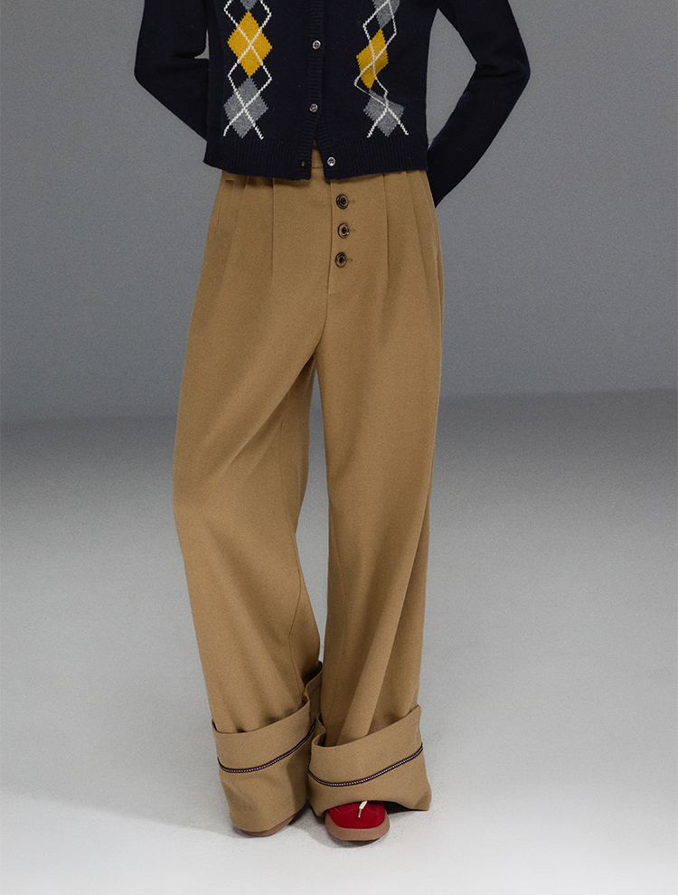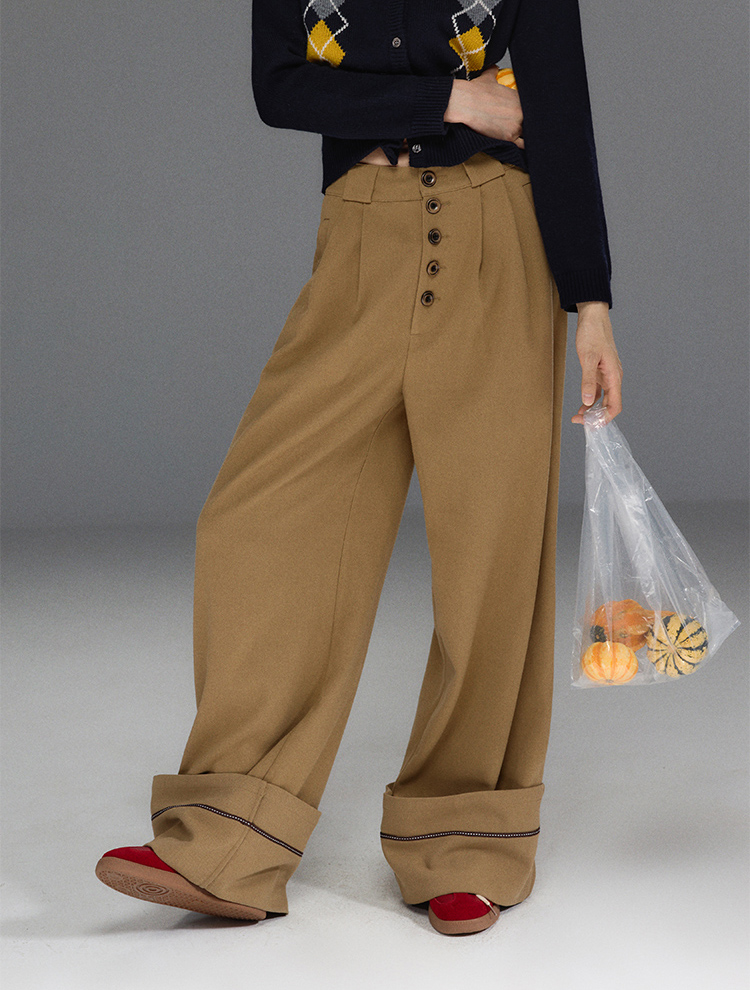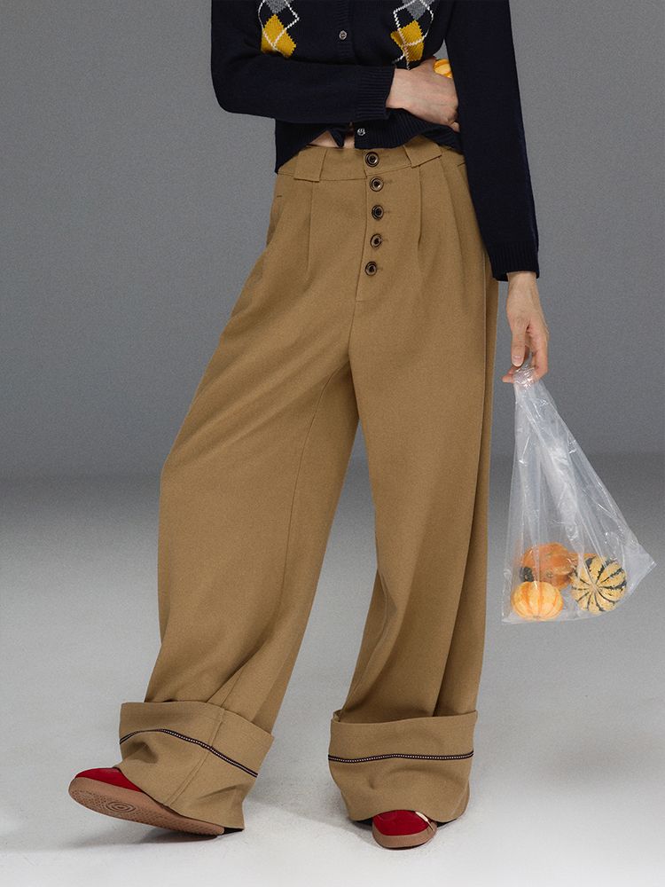Folded Hem Button-Up Wide Pants