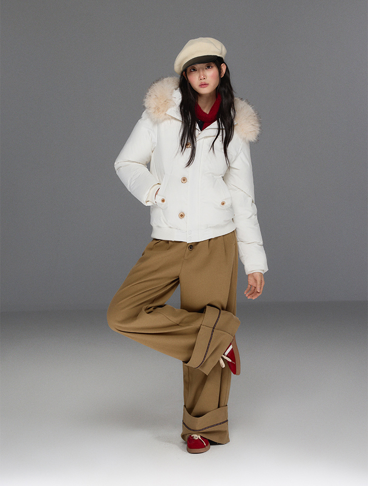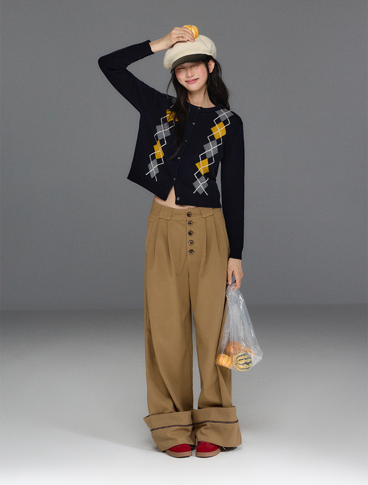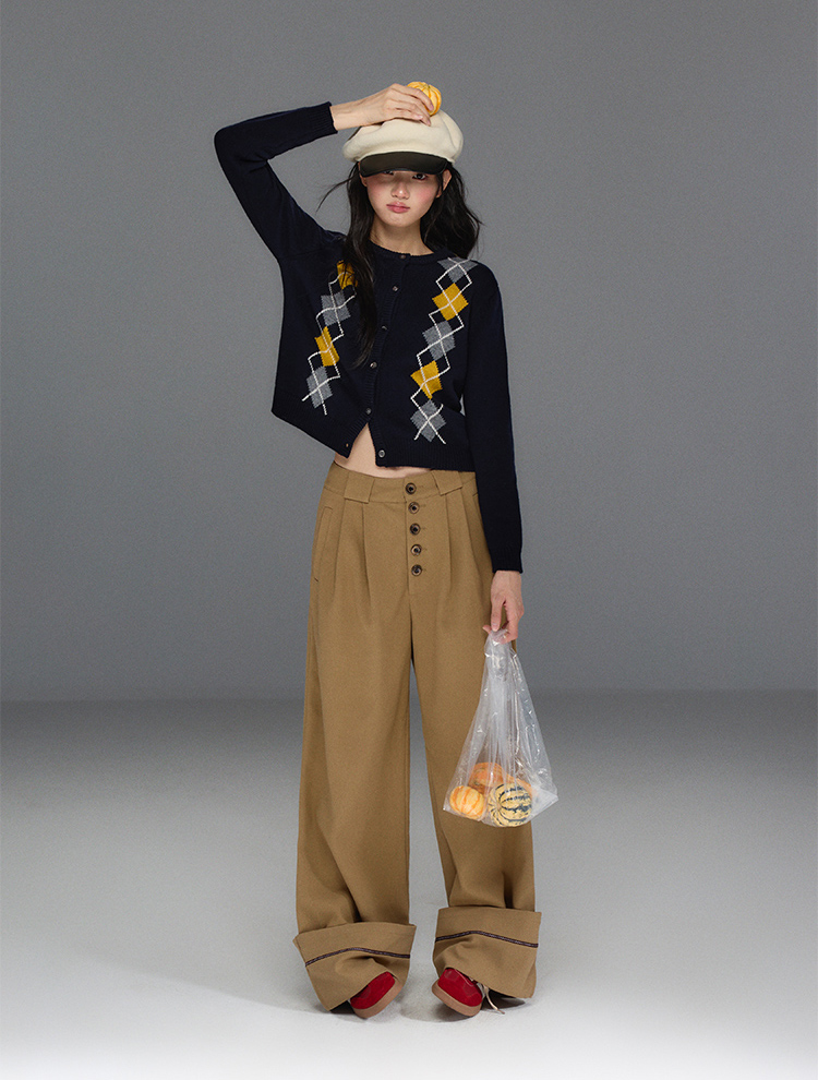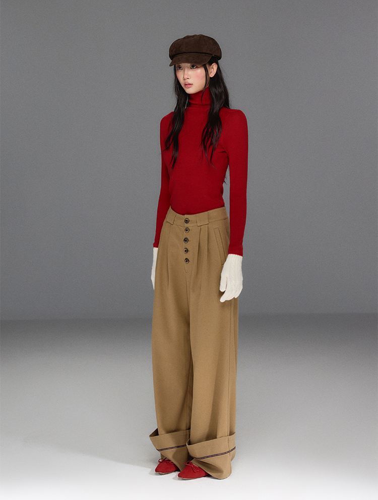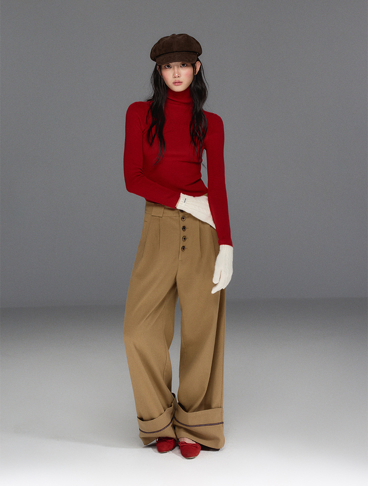 Folded Hem Button-Up Wide Pants