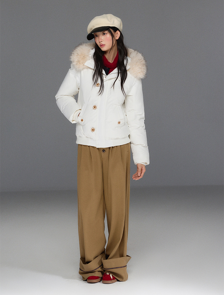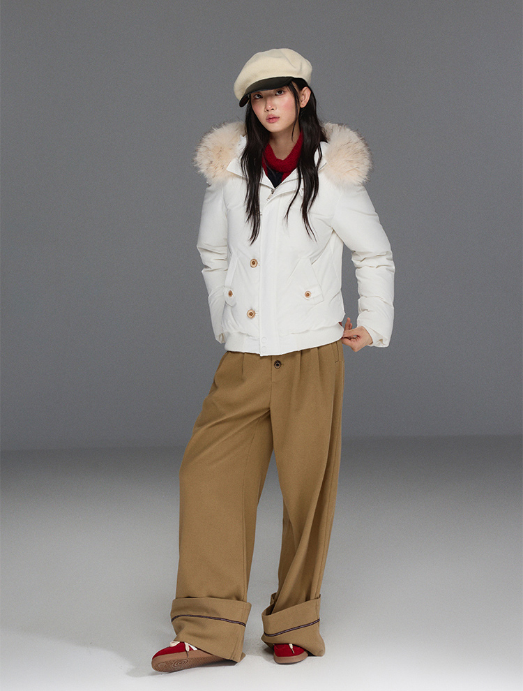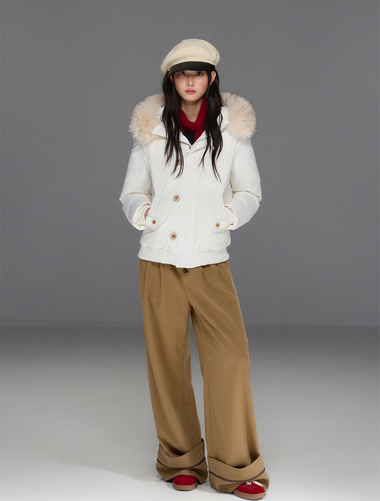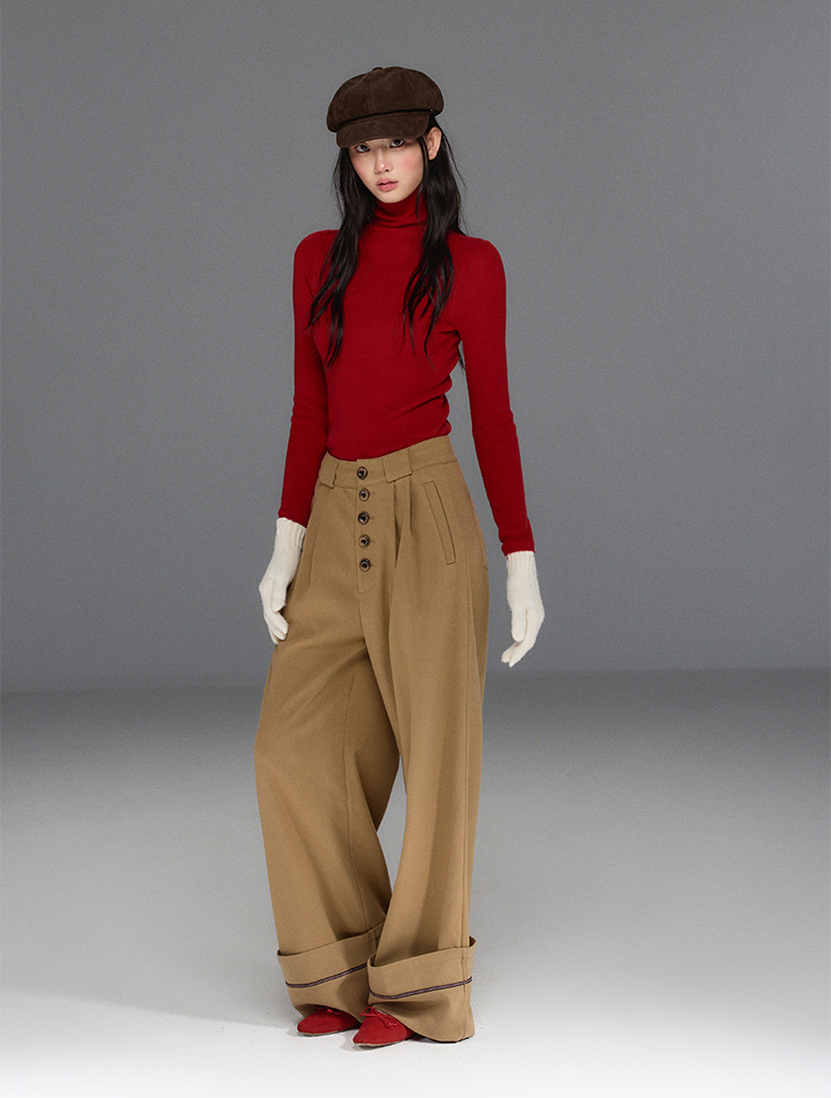 스타일리시한 무드의 버튼 포인트가 들어간 울 와이드 팬츠입니다.