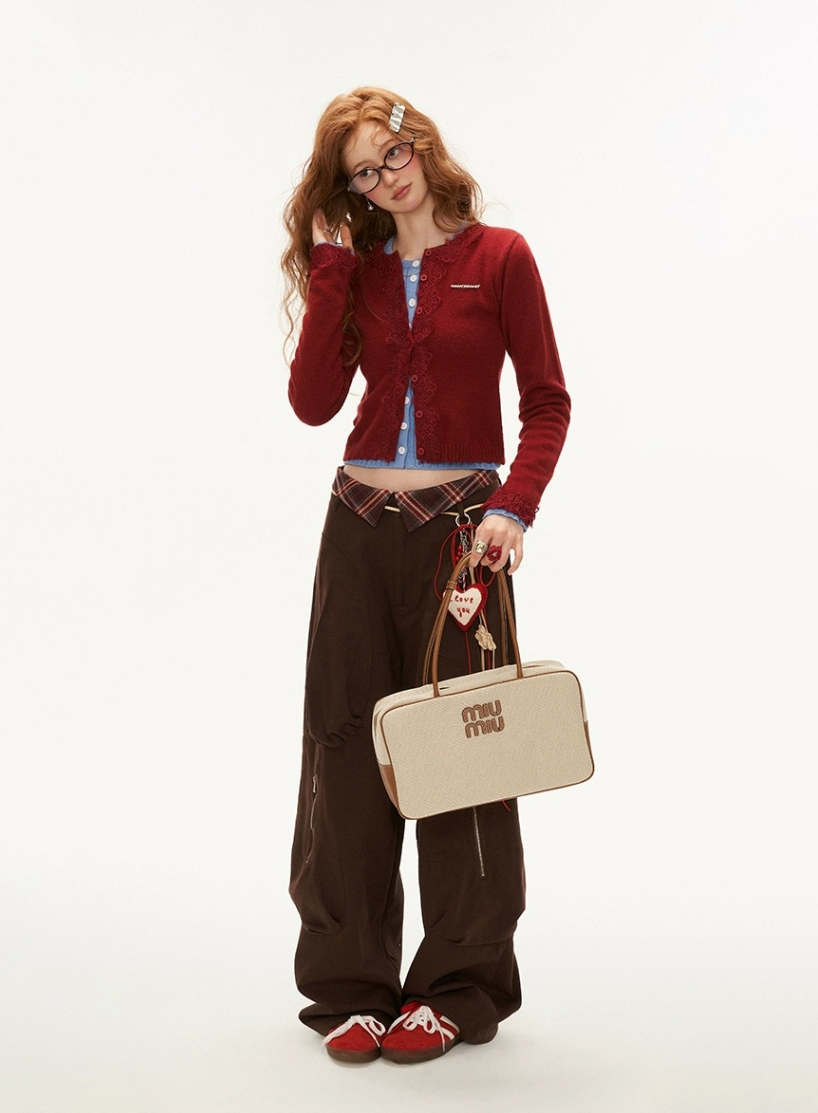 - 체크 배색 로우웨이스트 디자인