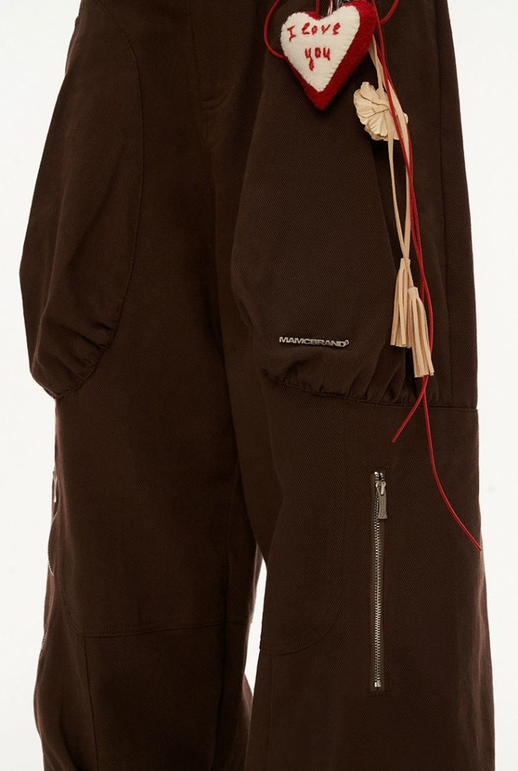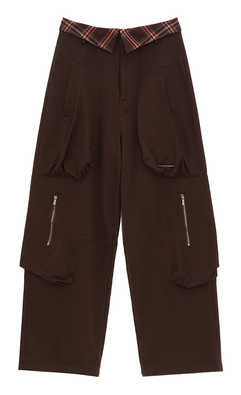 체크 배색 원단 포인트가 있는 롱한 기장감의 카고 팬츠입니다.