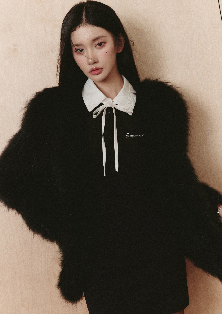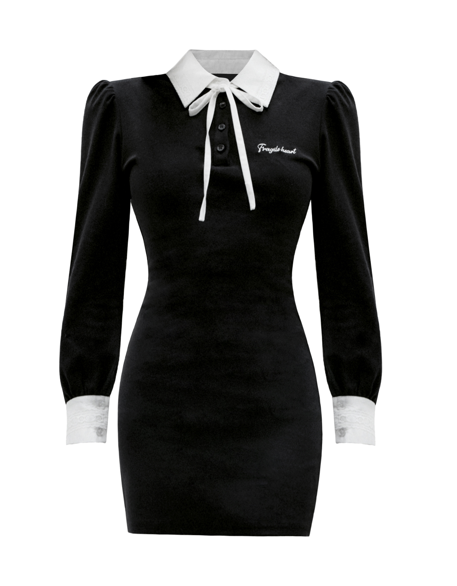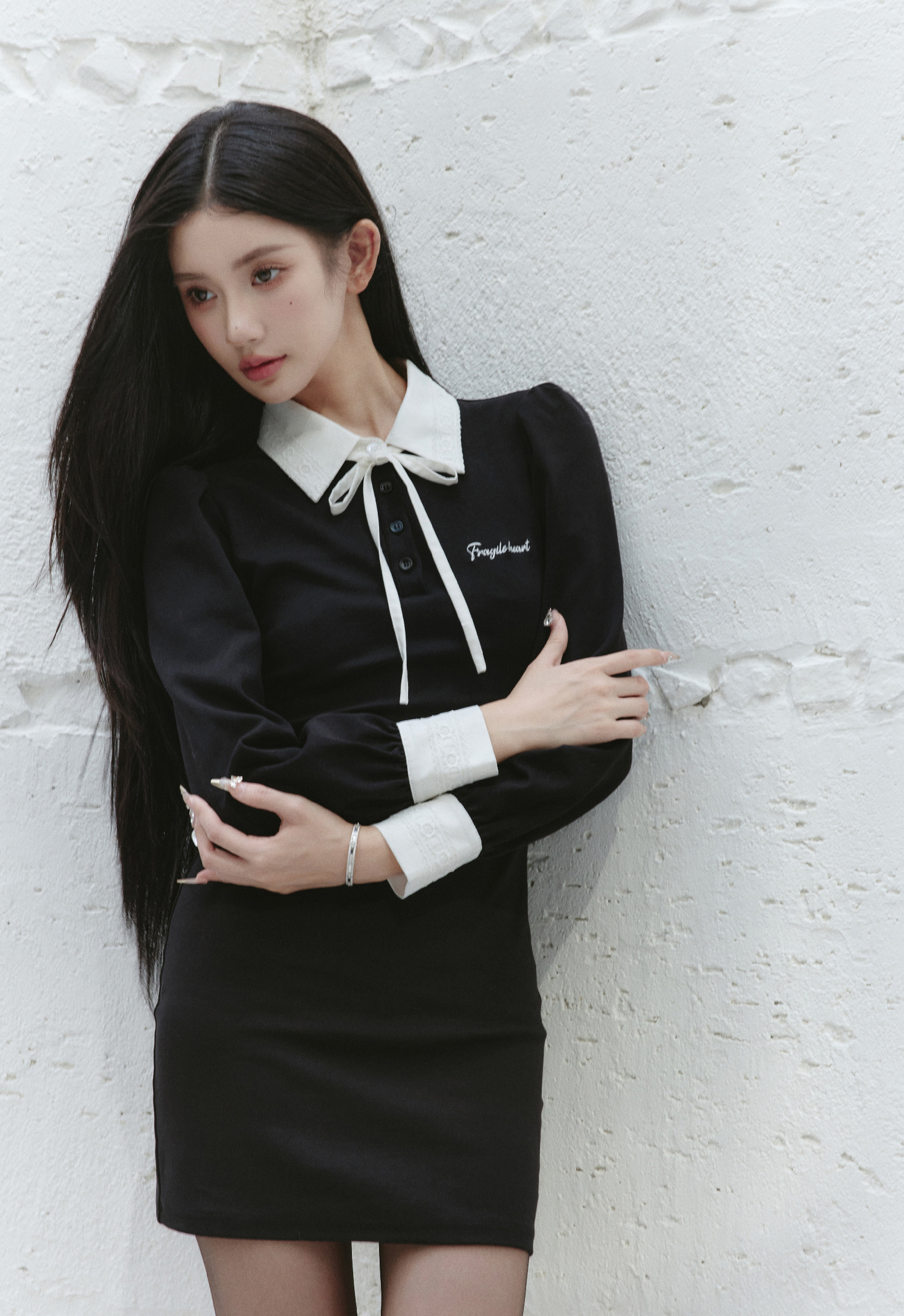 전체적으로 슬림한 라인의 리본 셔츠 블랙 드레스입니다.