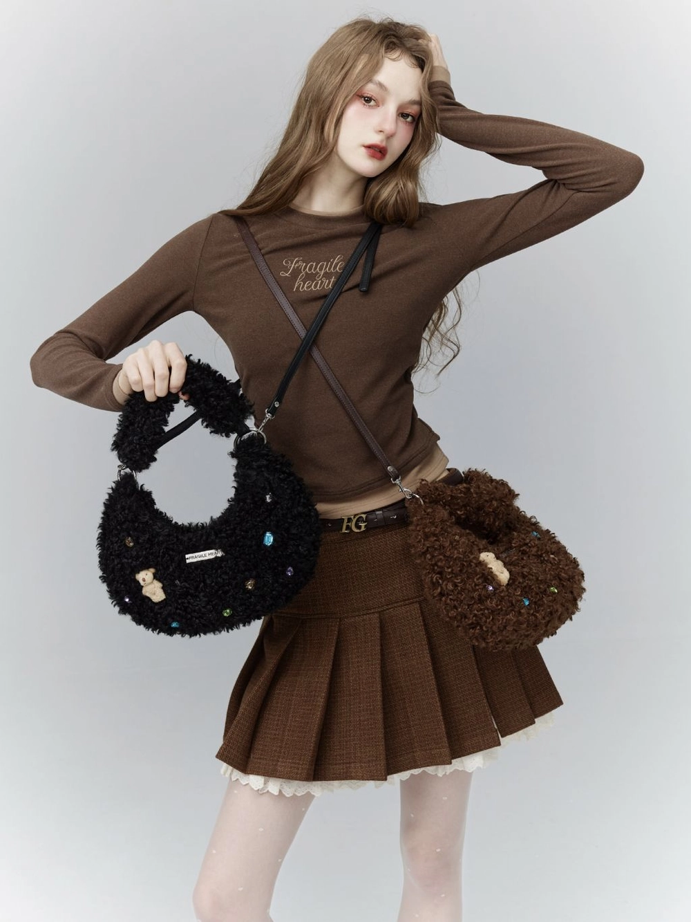 탈부착 가능한 롱 스트랩이 포함된 테디베어 백입니다.