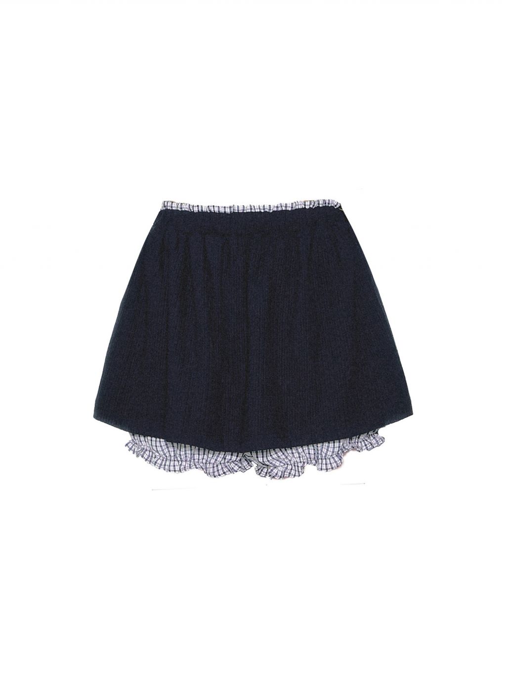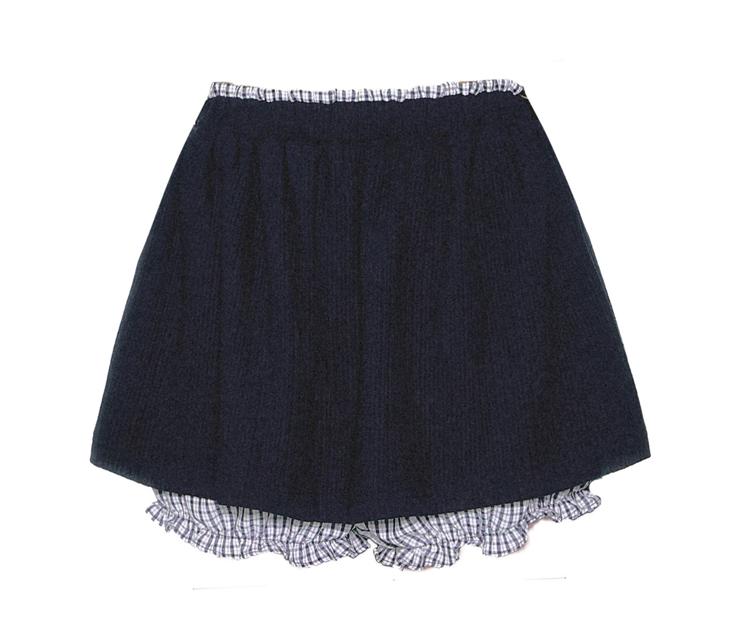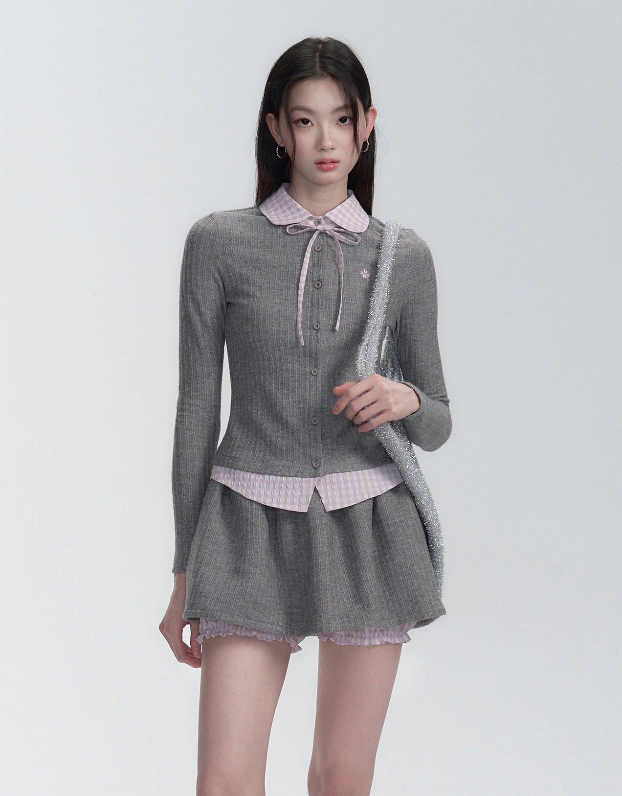 페이크 레이어드 디자인의 가디건 & 스커트 팬츠 셋업입니다.