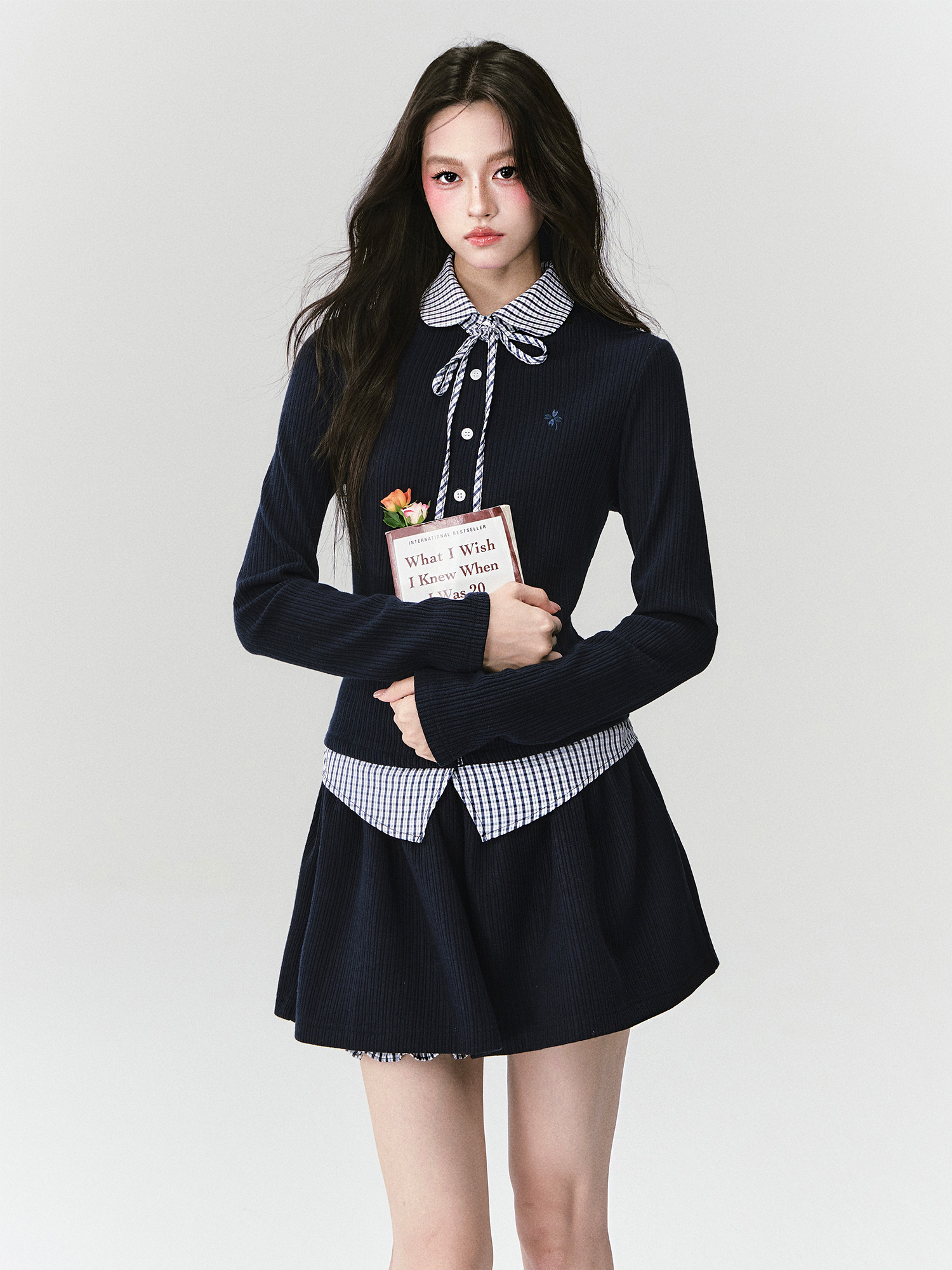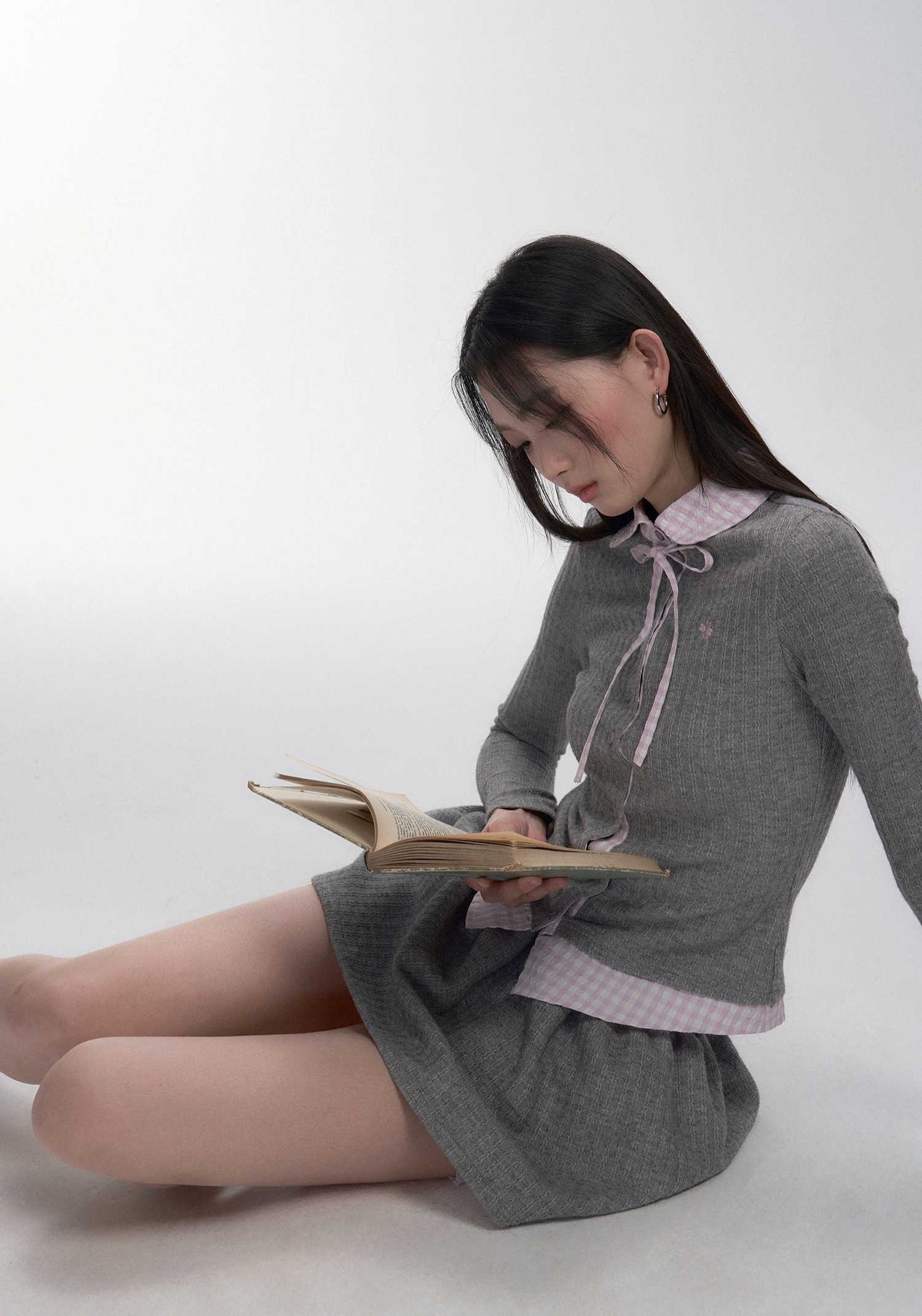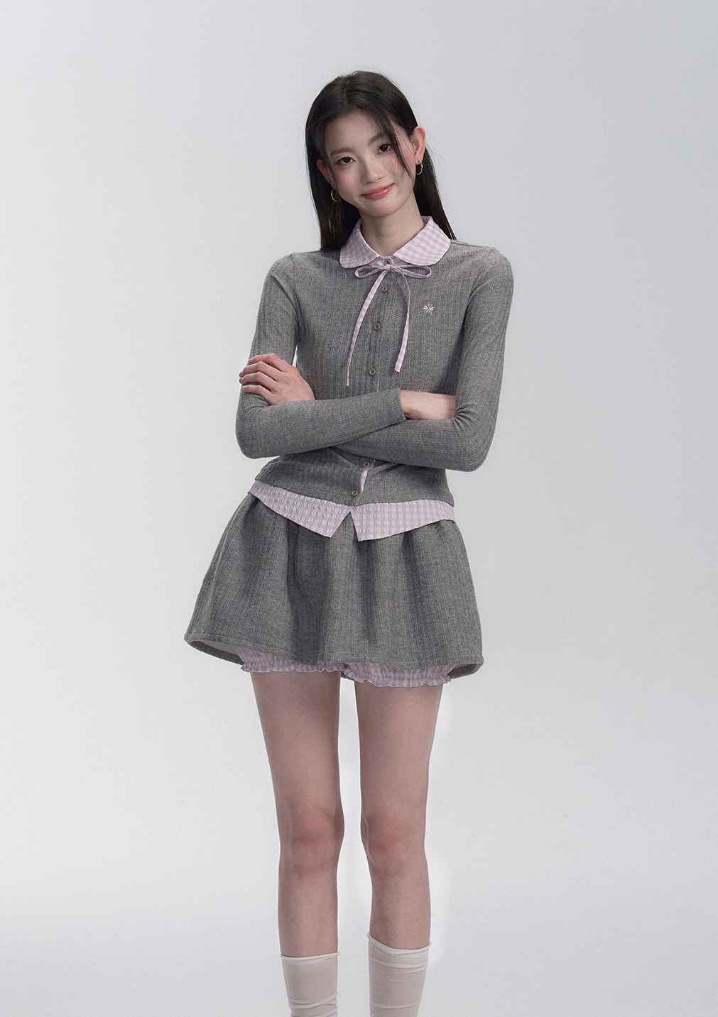 Fake 2-Piece Cardigan Set ( Cardigan & Skirt Pants : Sold Separately )