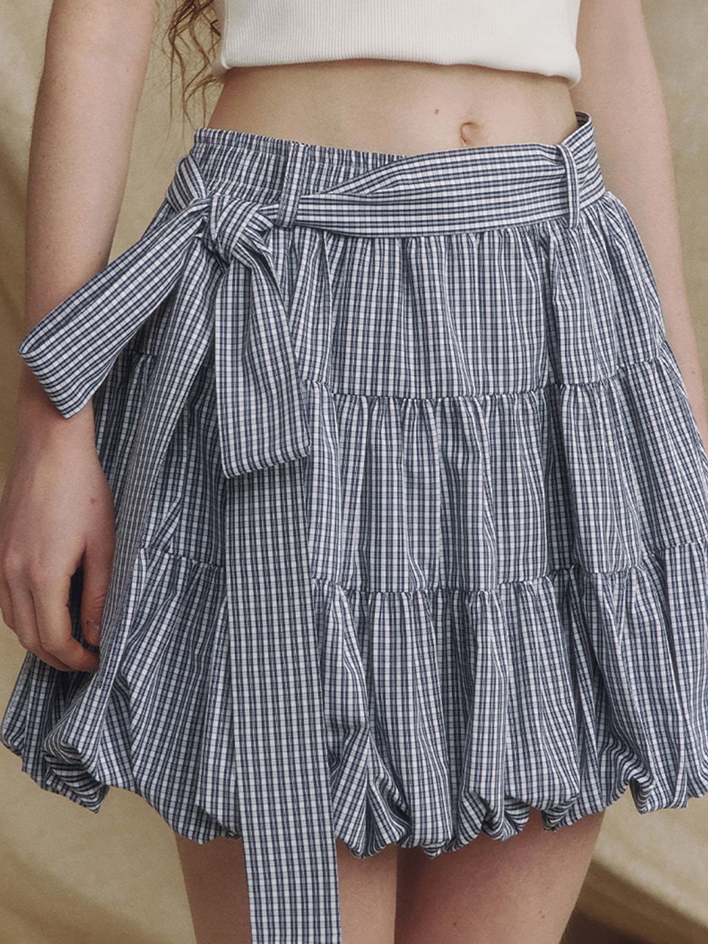 체크 패턴의 벌룬 스커트입니다.
