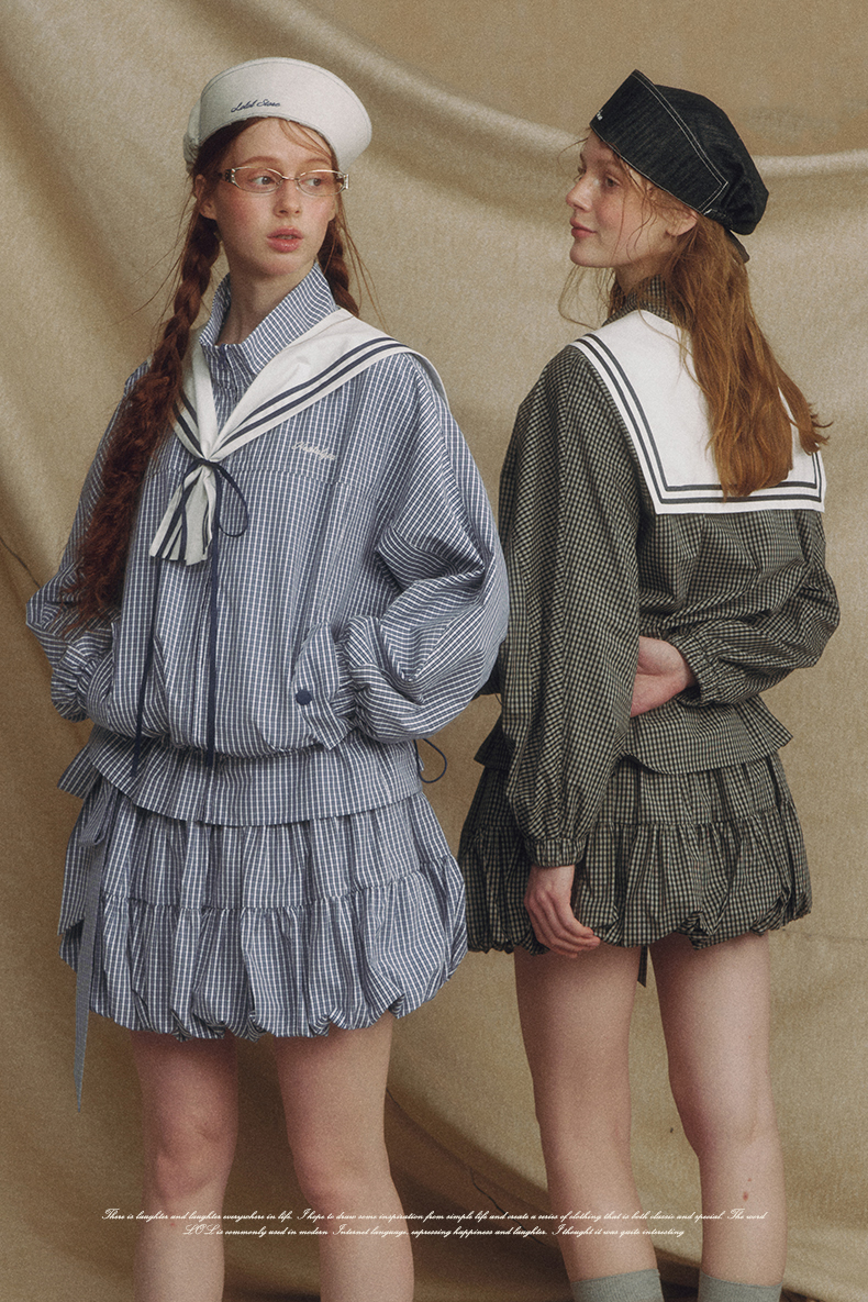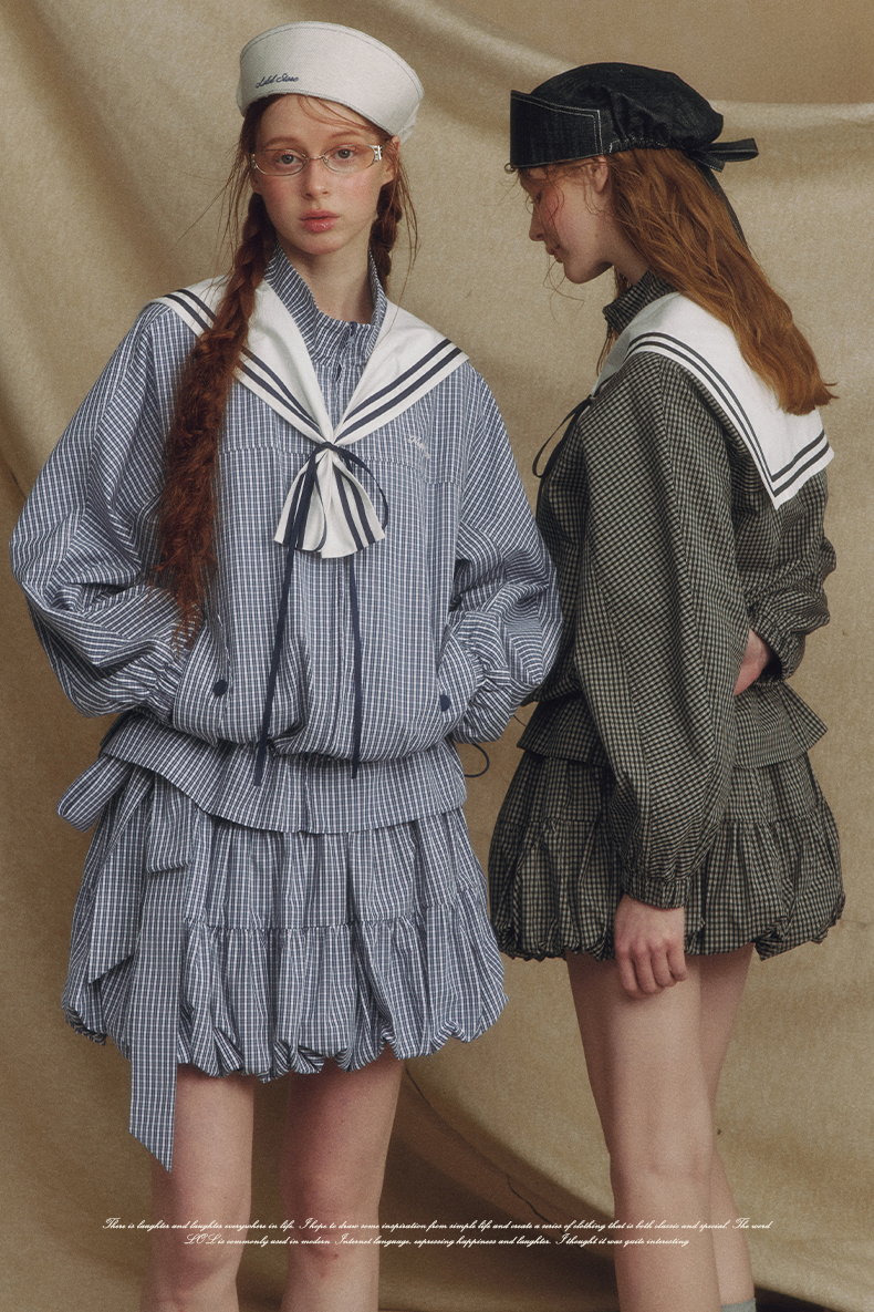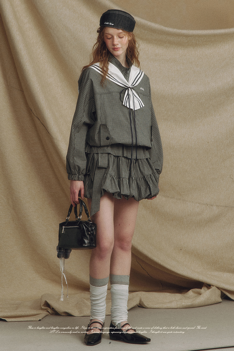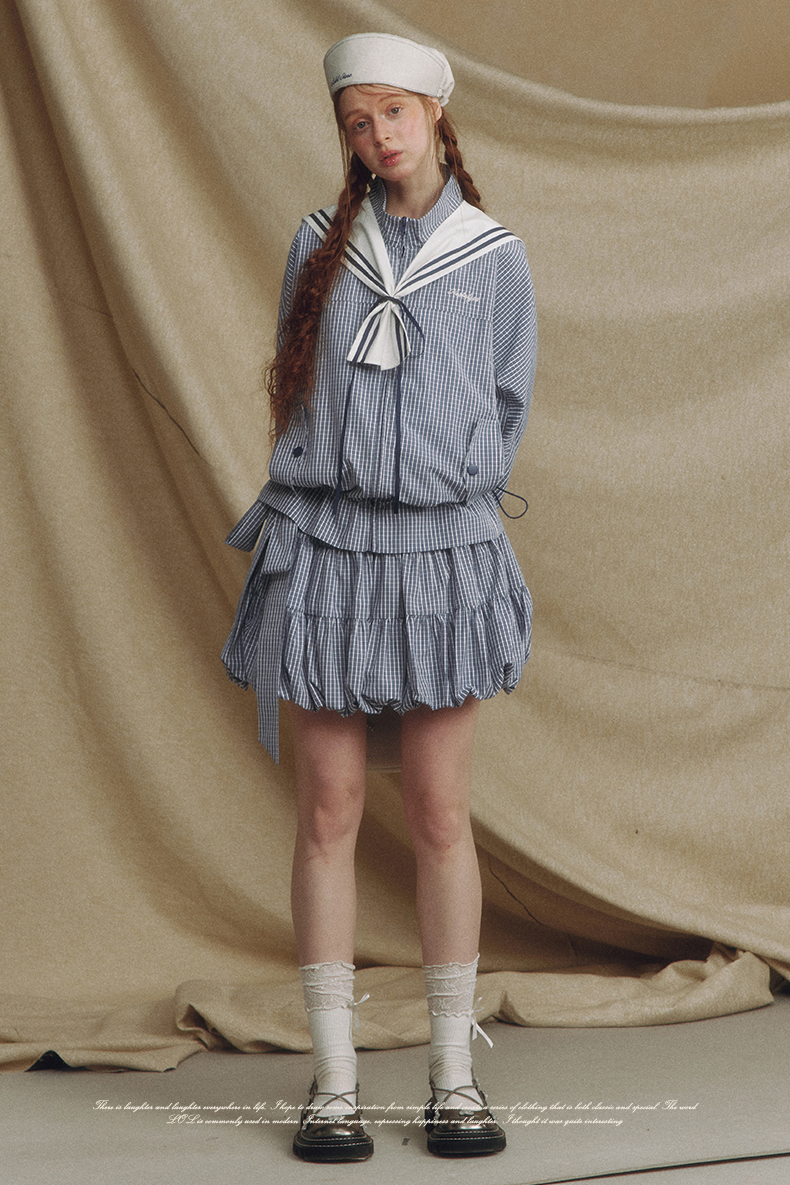 Sailor Checked Balloon Skirt