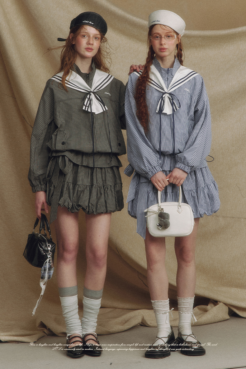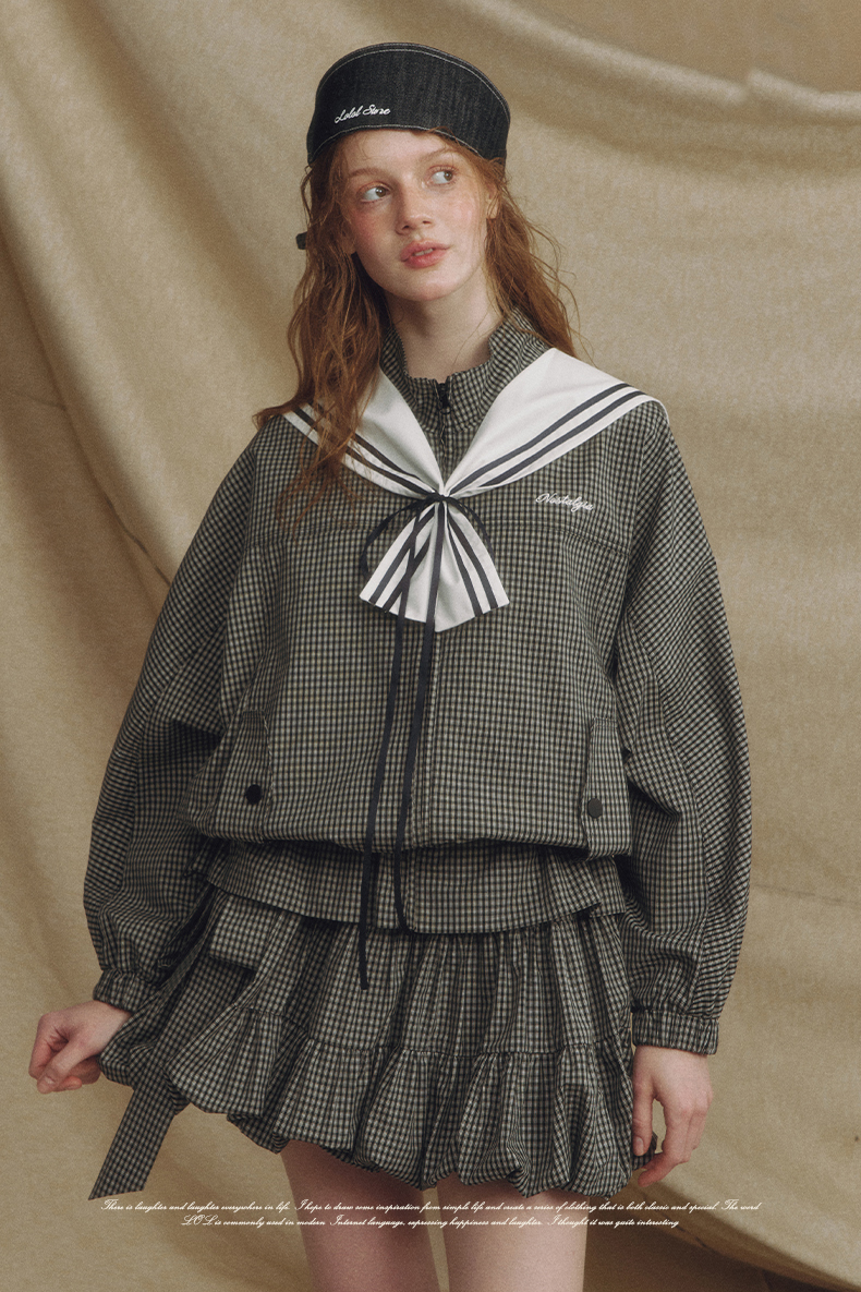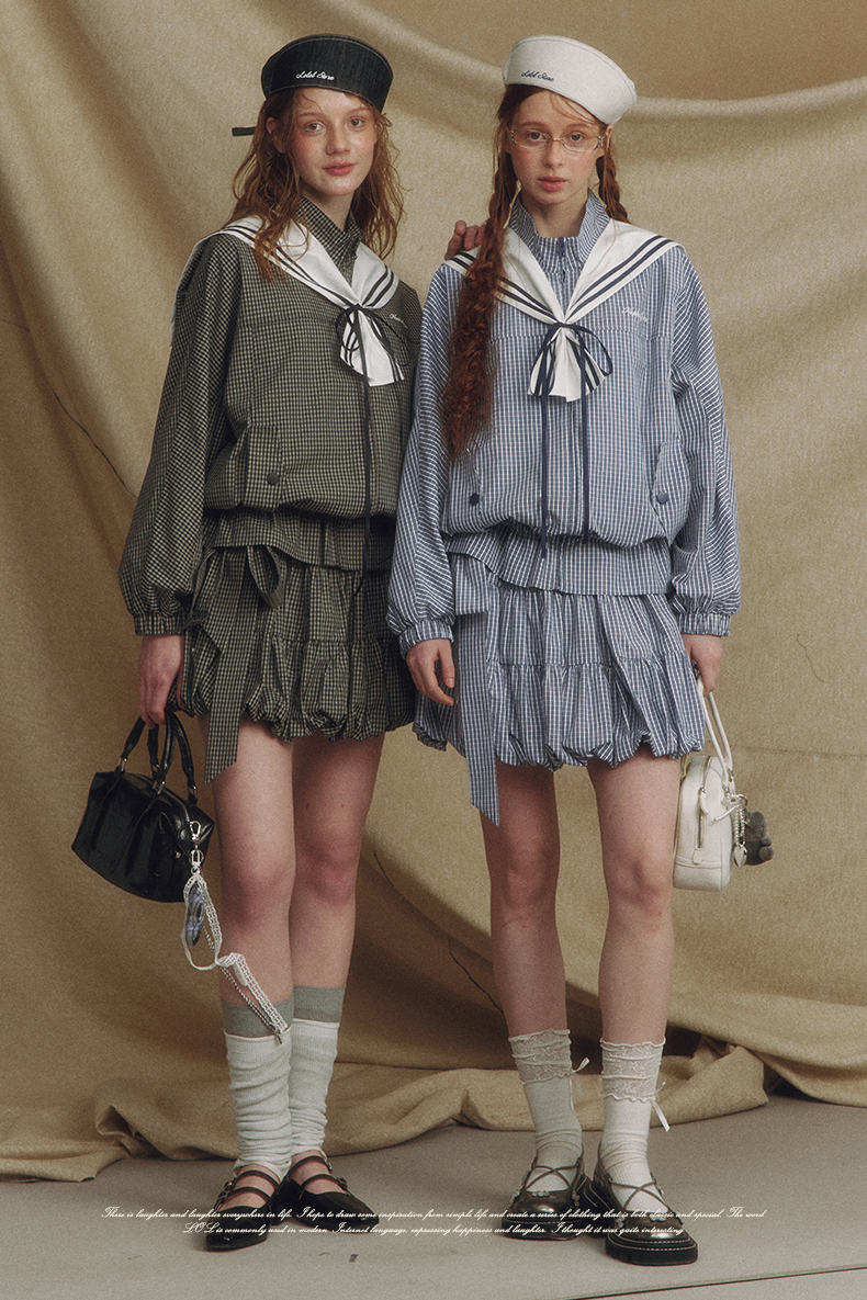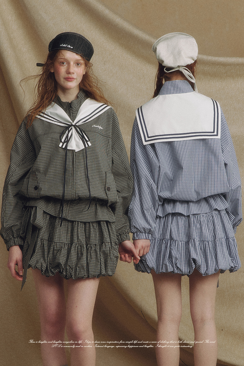Sailor Checked Balloon Skirt